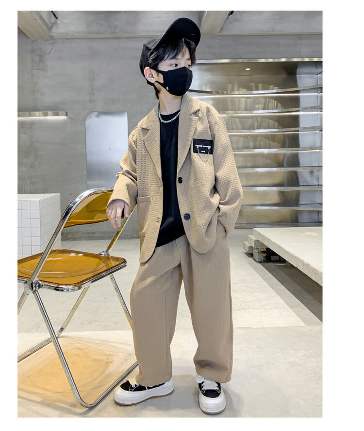 091 신상 아동복 남아 중대형 어린이 가을 캐주얼 편안한 양복 세트 투피스