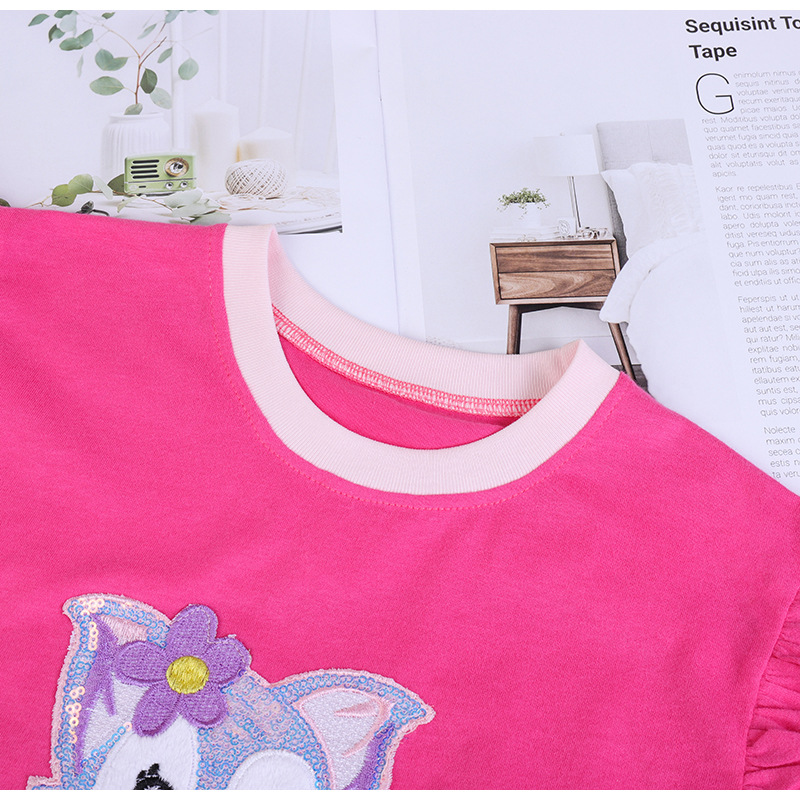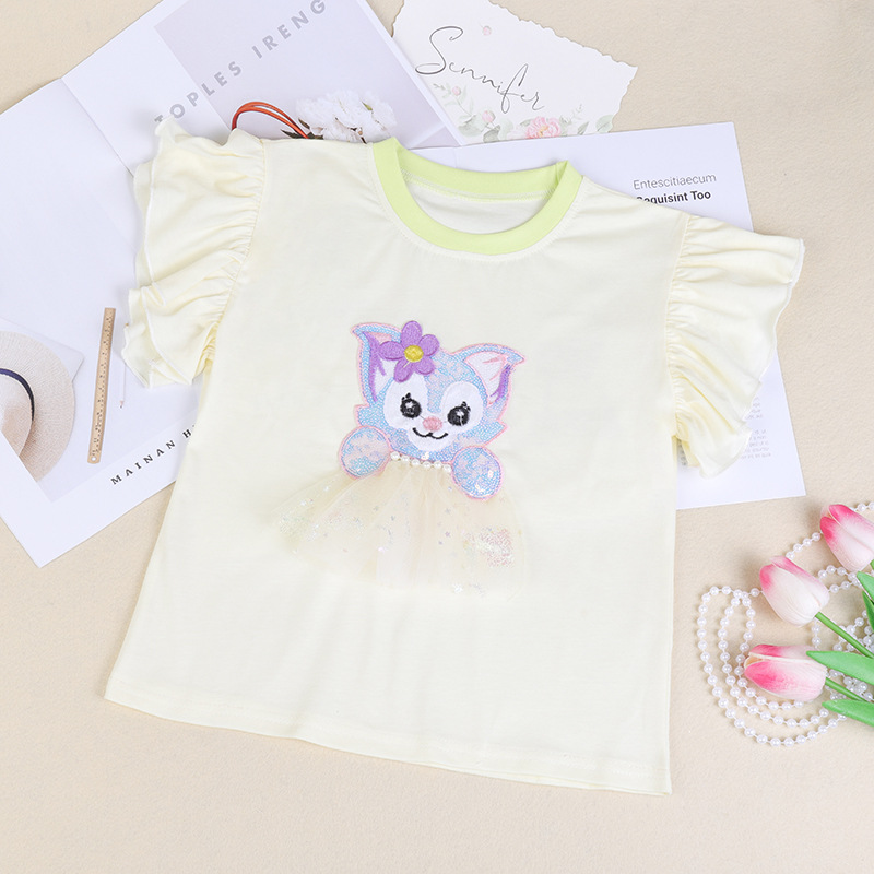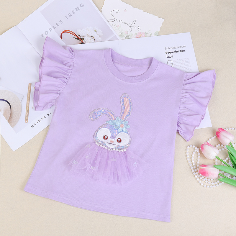 여름 여아 로터스 반팔 크루넥 티셔츠 여아 탑 캐주얼 세련된 아동 베이스 셔츠 패션 모든 매치스토어 가기