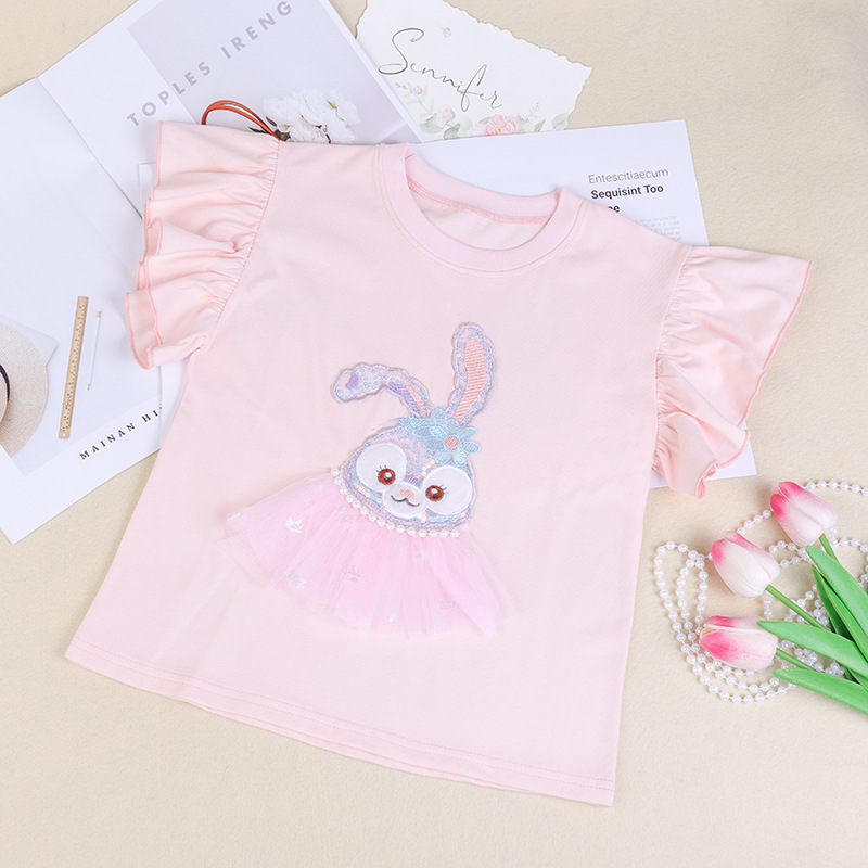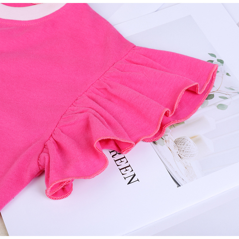 여름 여아 로터스 반팔 크루넥 티셔츠 여아 탑 캐주얼 세련된 아동 베이스 셔츠 패션 모든 매치