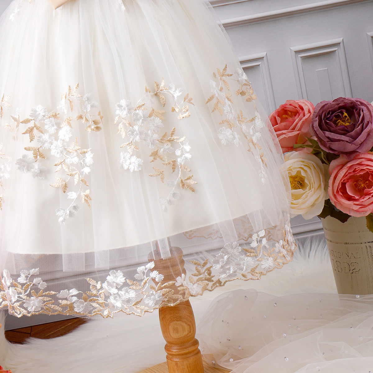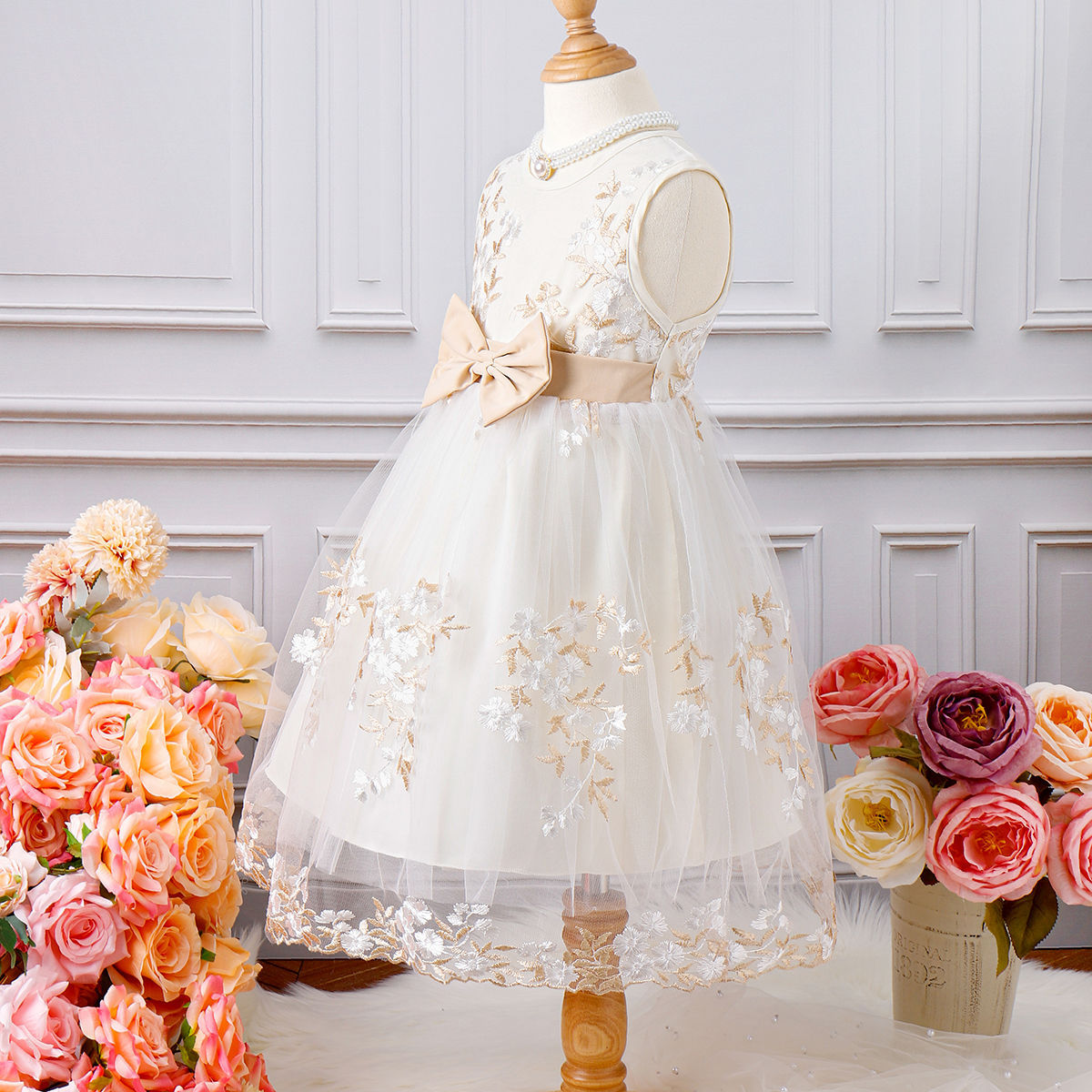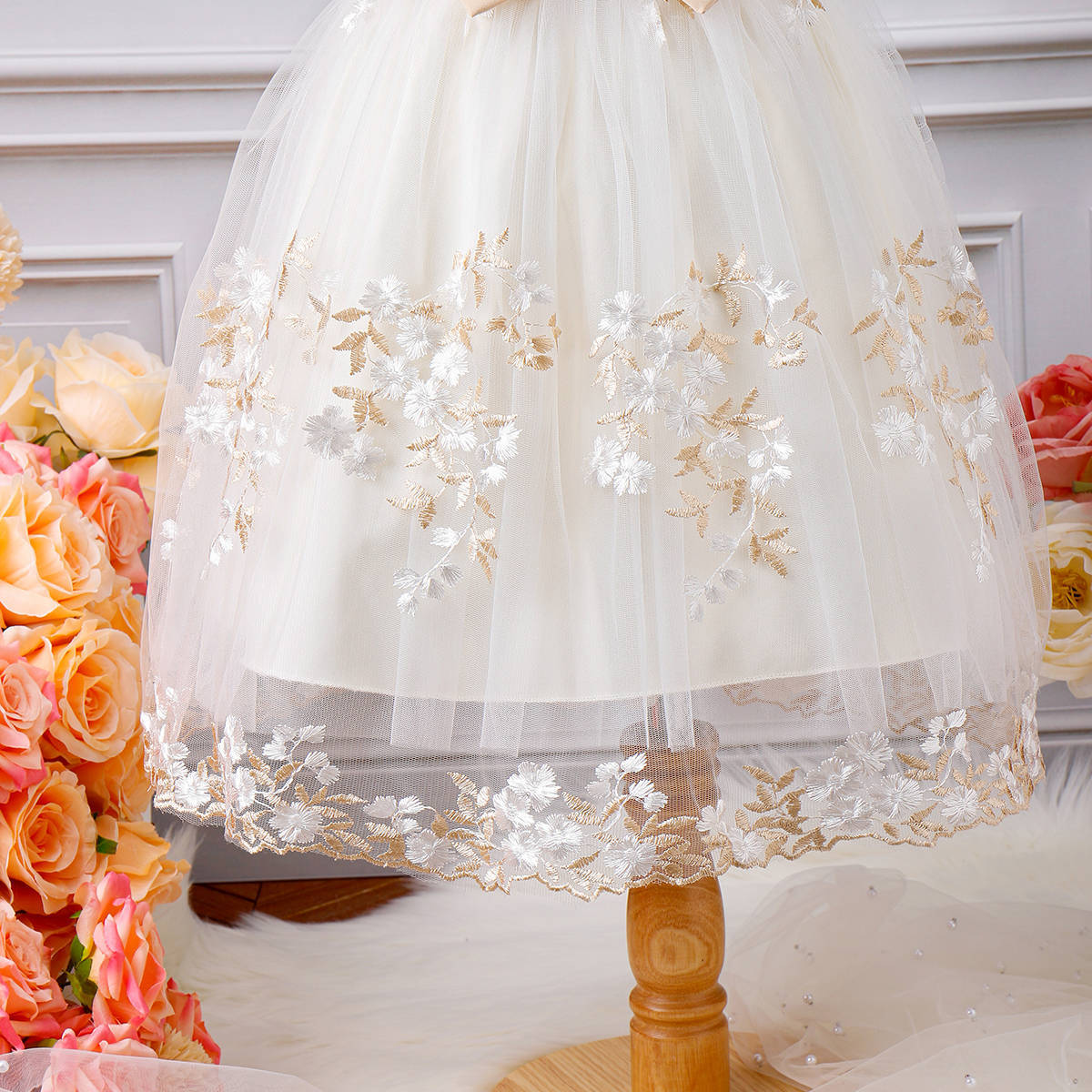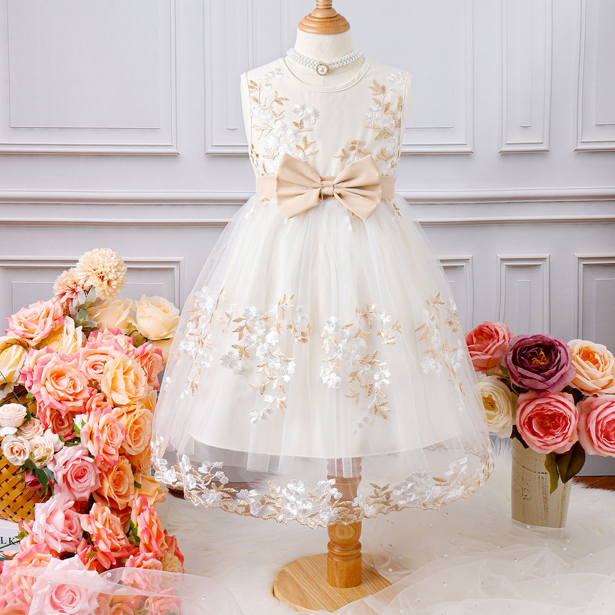 Baopin 어린이 착용 유럽과 미국 법원 스타일 저녁 원피스 봄과 여름 활 꽃 자수 메쉬 소녀 공주 원피스