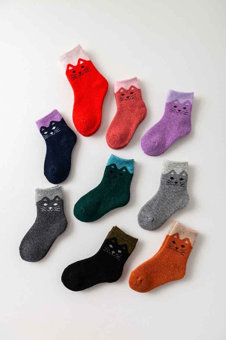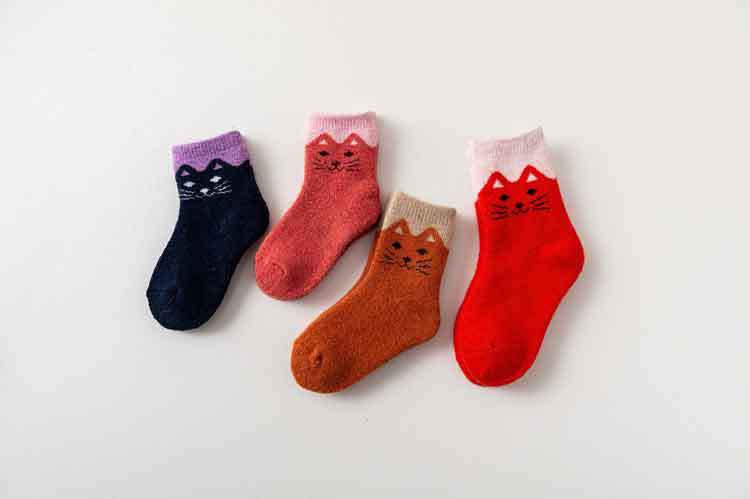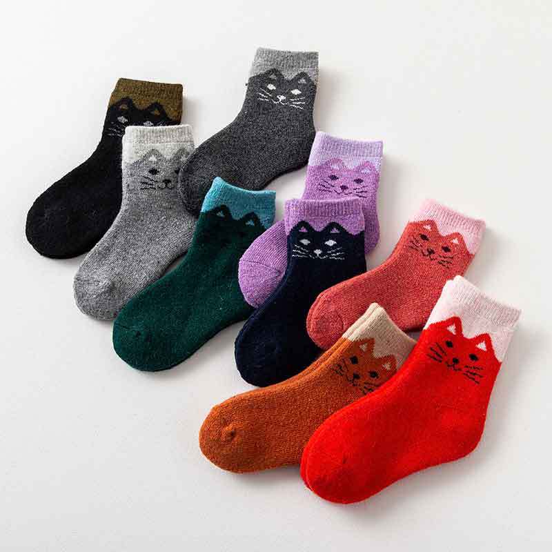 국경 간 가을과 겨울 테리 어린이 양말 두꺼운 따뜻한 양말 고양이 어린이 양말