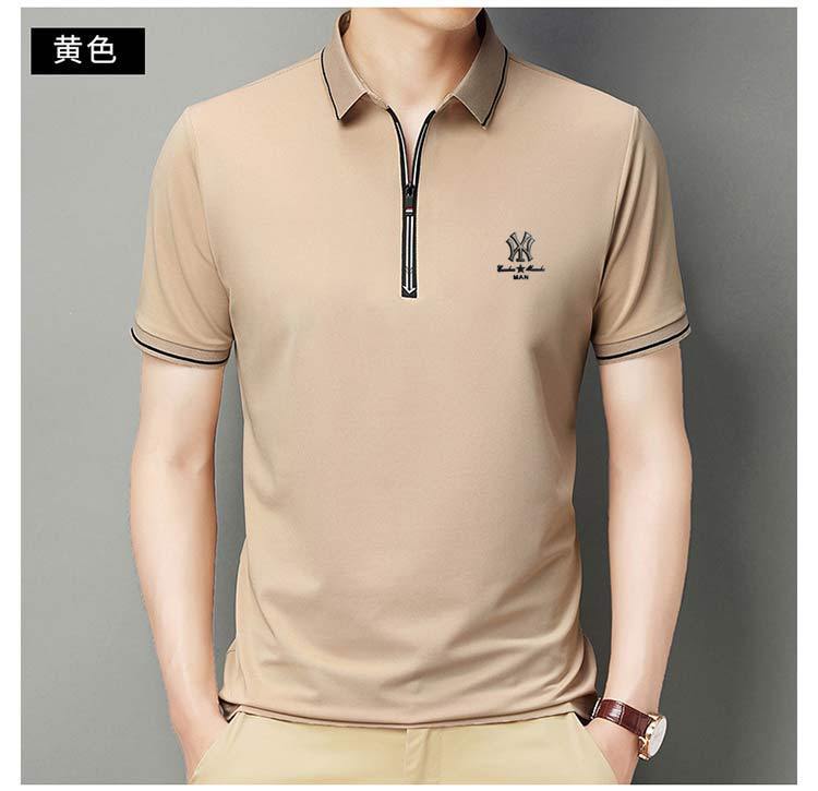 여름 새로운 라펠 지퍼 아이스 실크 반팔 남성용 중년 및 영 유행 캐주얼 단색 남성용 반팔 티셔츠스토어 가기