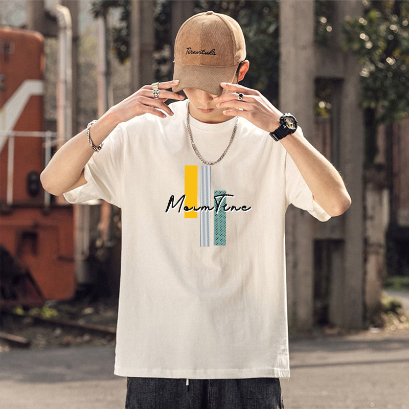 반팔 티셔츠 남성용 면 반팔 발 230g 무거운 느슨한 패션 브랜드 여름 라운드 넥 남성용 티셔츠