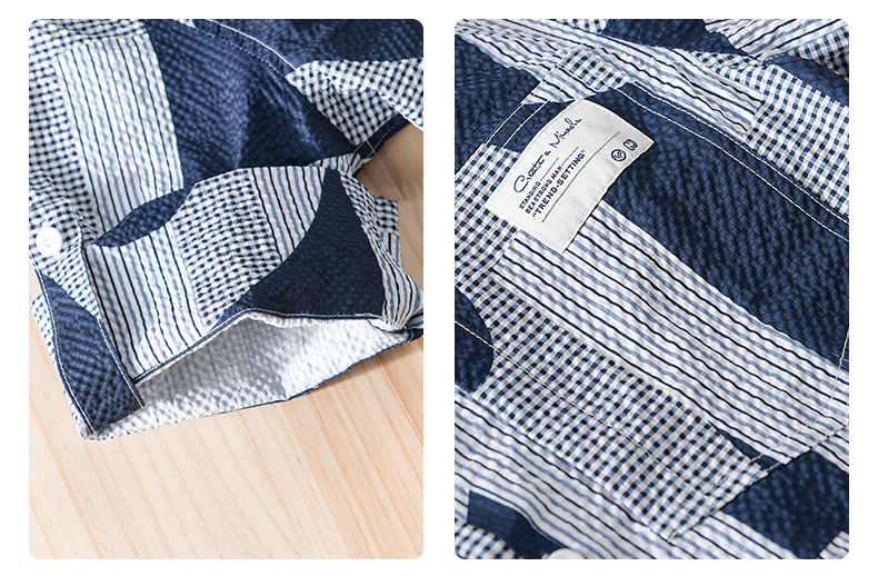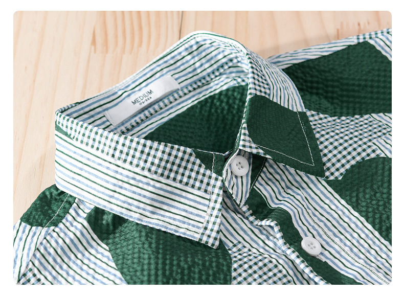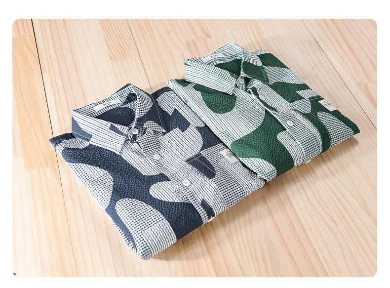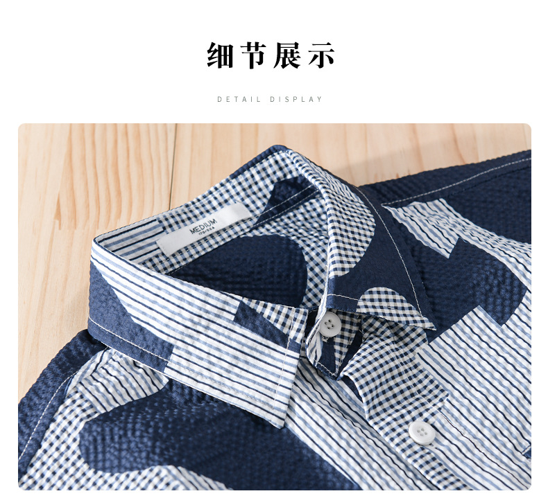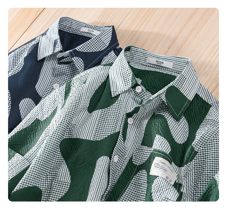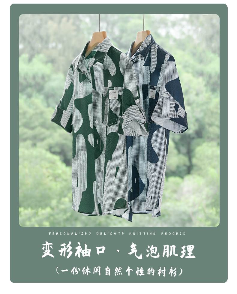 여름 남성용 컬러 매칭 프린트 반팔 셔츠 유행 버블 질감 편안한 모든 매치 반팔 셔츠 943스토어 가기