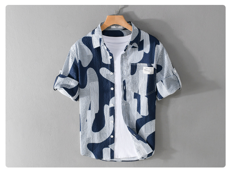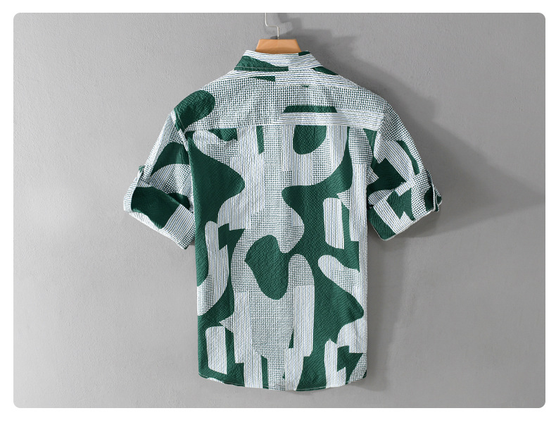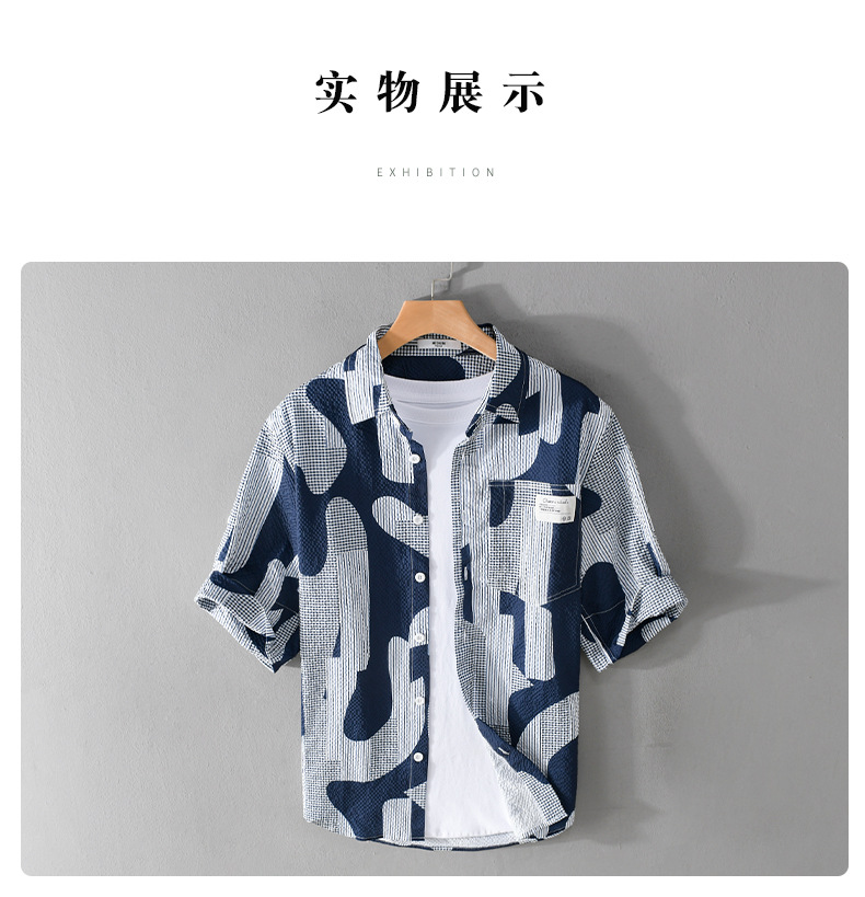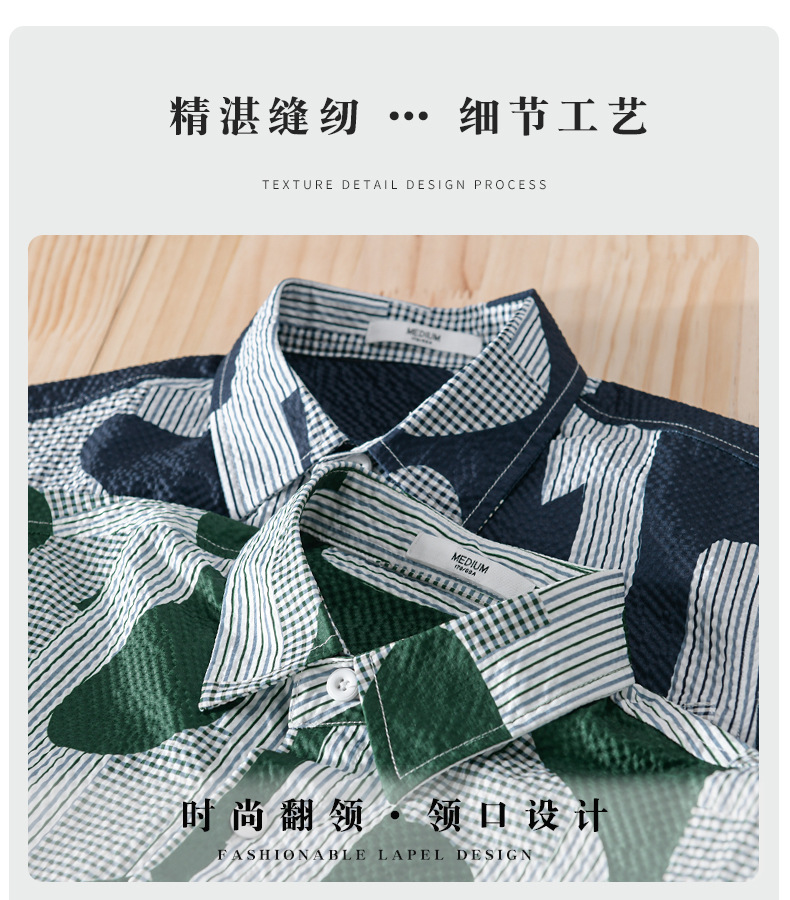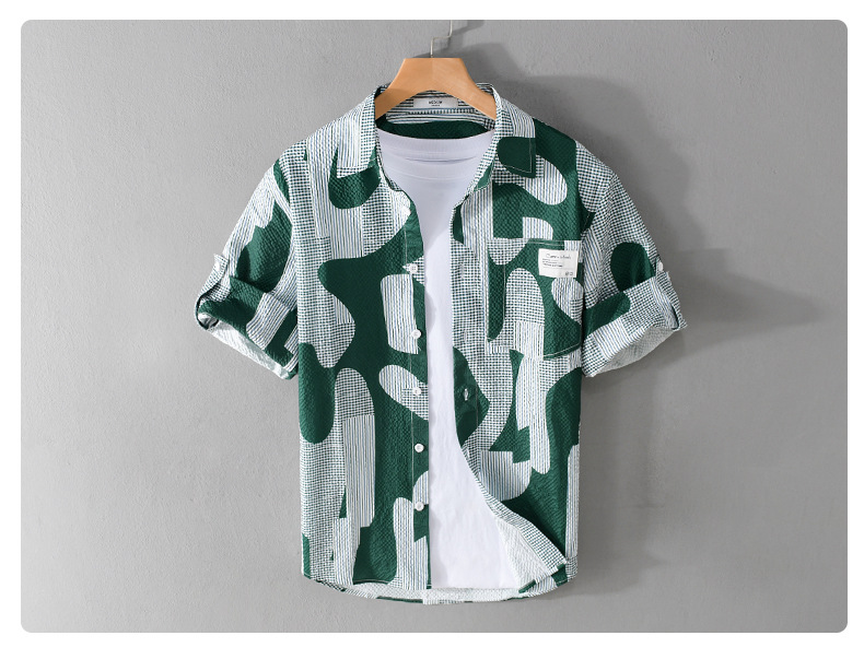 여름 남성용 컬러 매칭 프린트 반팔 셔츠 유행 버블 질감 편안한 모든 매치 반팔 셔츠 943