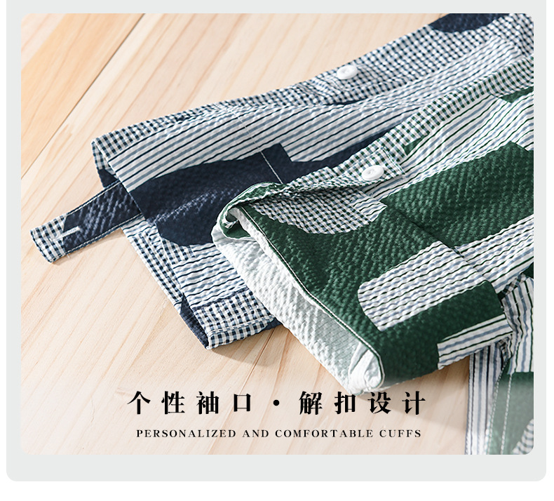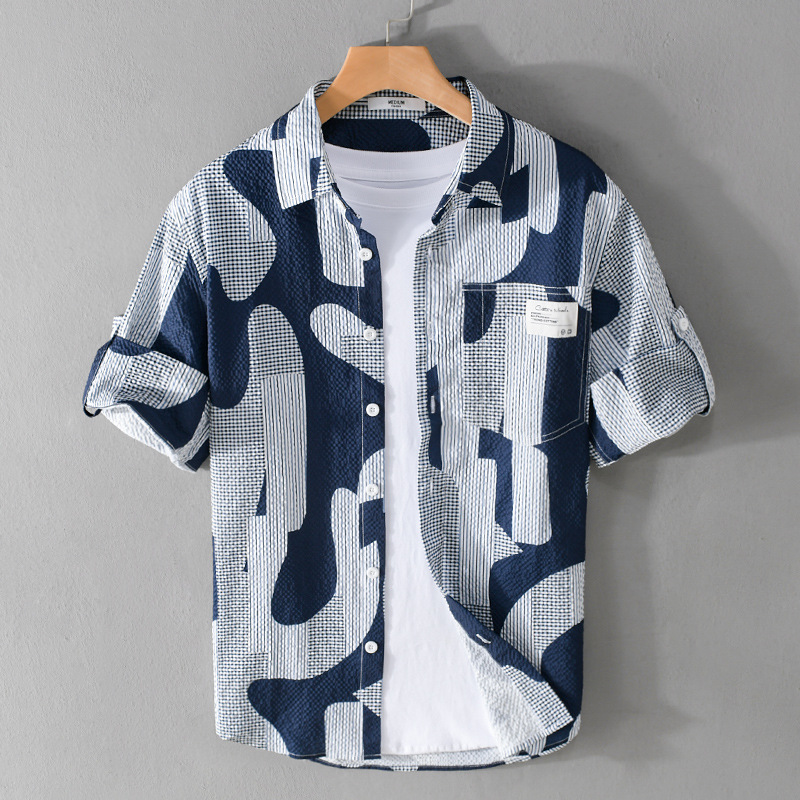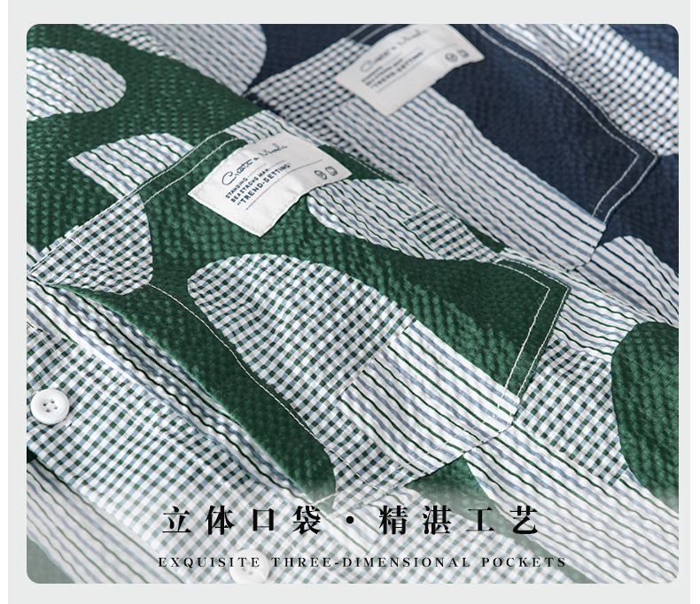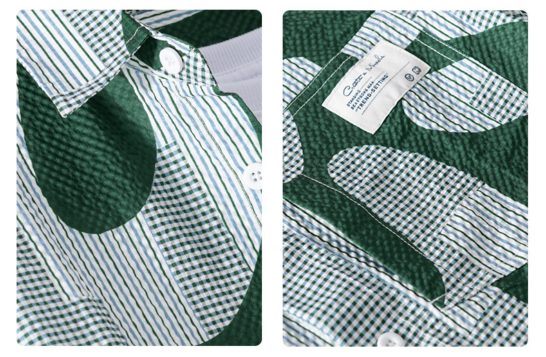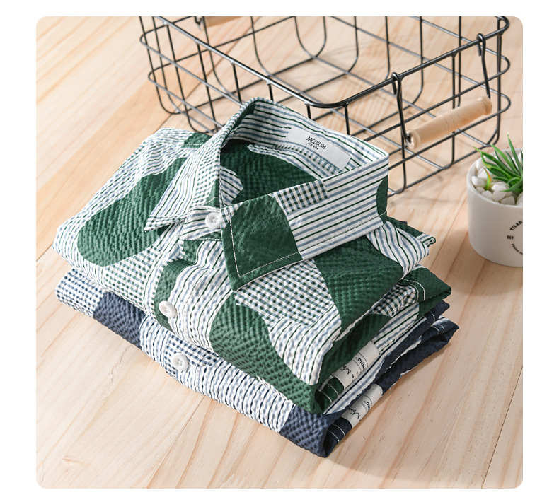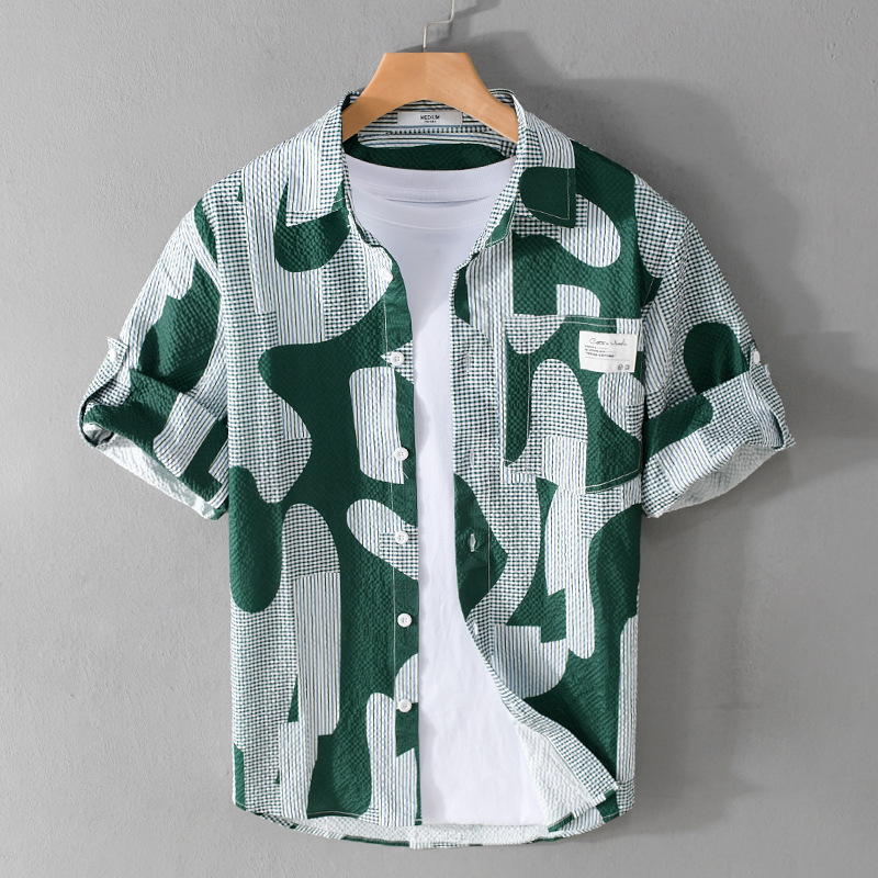 여름 남성용 컬러 매칭 프린트 반팔 셔츠 유행 버블 질감 편안한 모든 매치 반팔 셔츠 943
