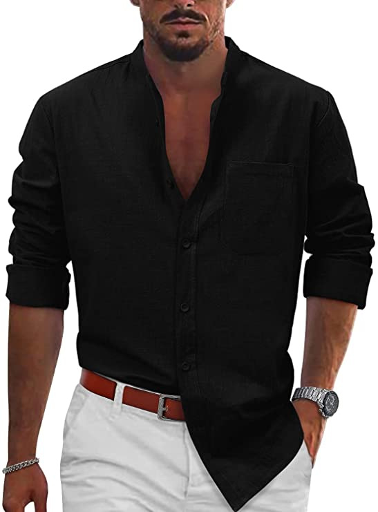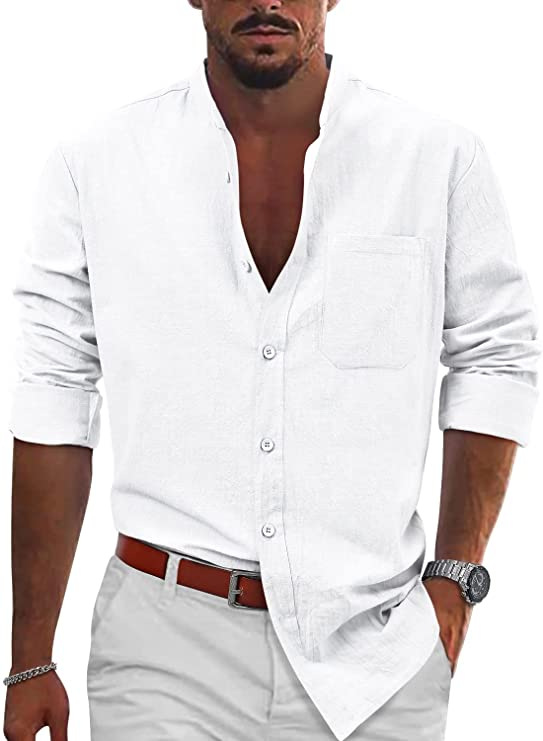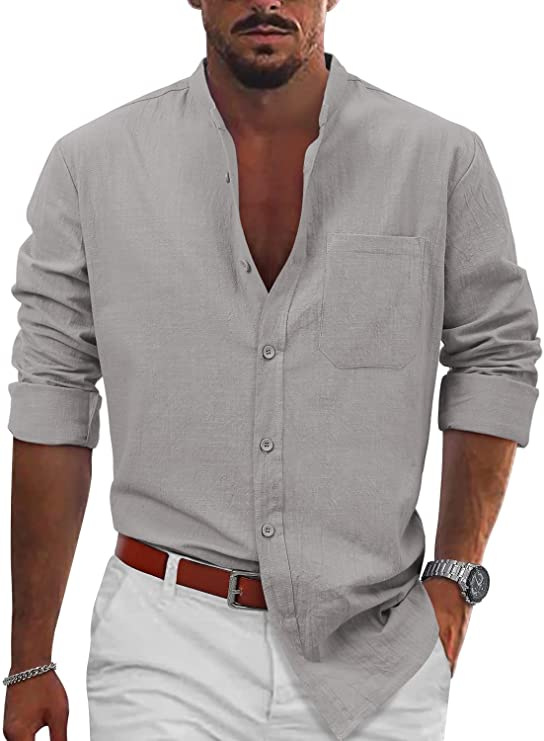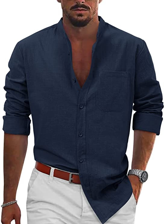 남자 2023 AliExpress 최신 폭발 캐주얼 버클 긴 소매 면 리넨 셔츠 비치 셔츠 캐주얼 셔츠스토어 가기