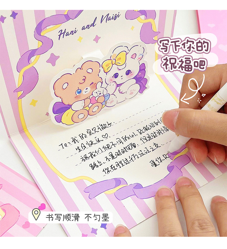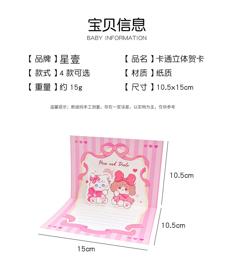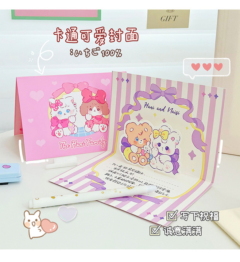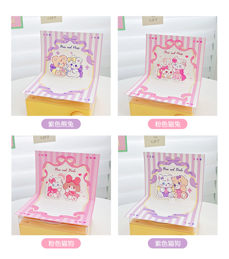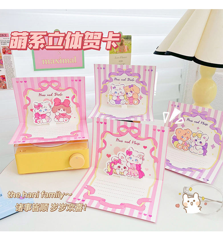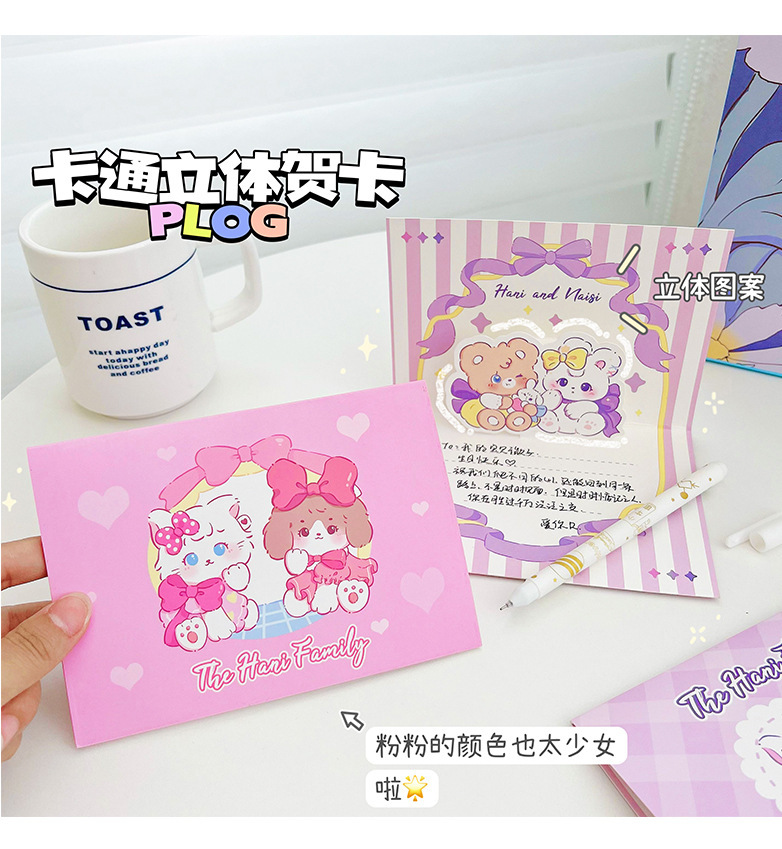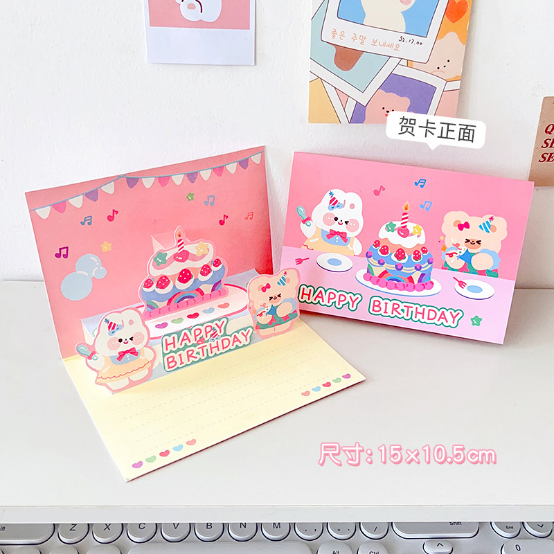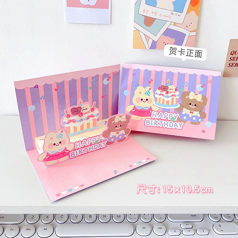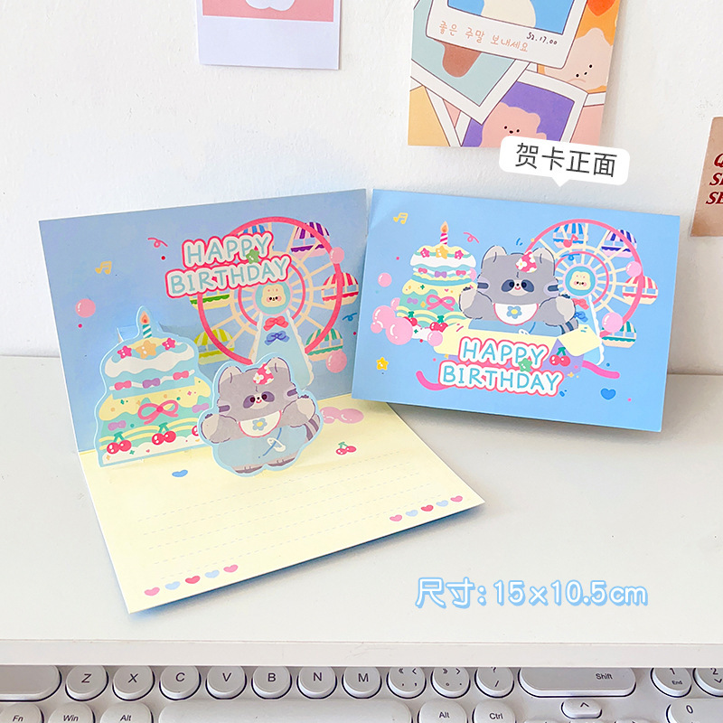 만화 스테레오 인사말 카드 생일 축복 카드 접는 외계인 귀여운 메시지 엽서 휴일 꽃다발 작은 카드스토어 가기