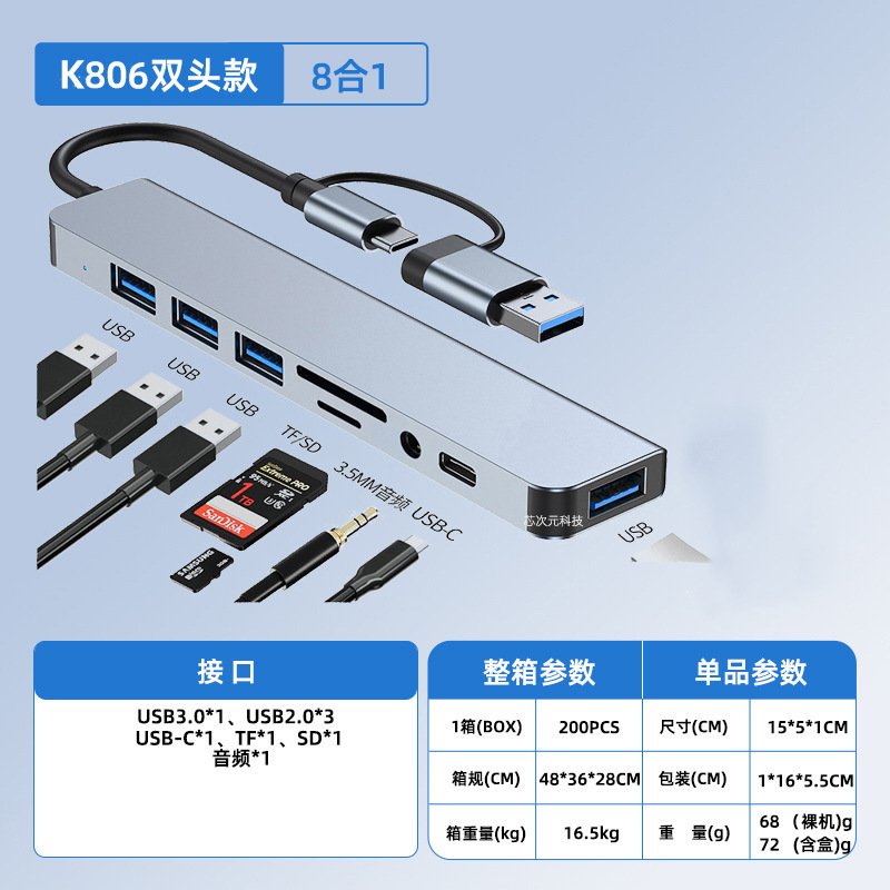 • SD/TF 2USB2.0 1USB3.0 에 C 더블 헤드