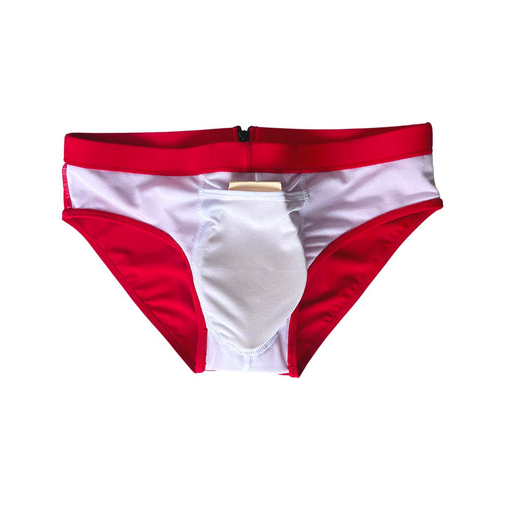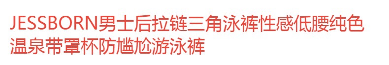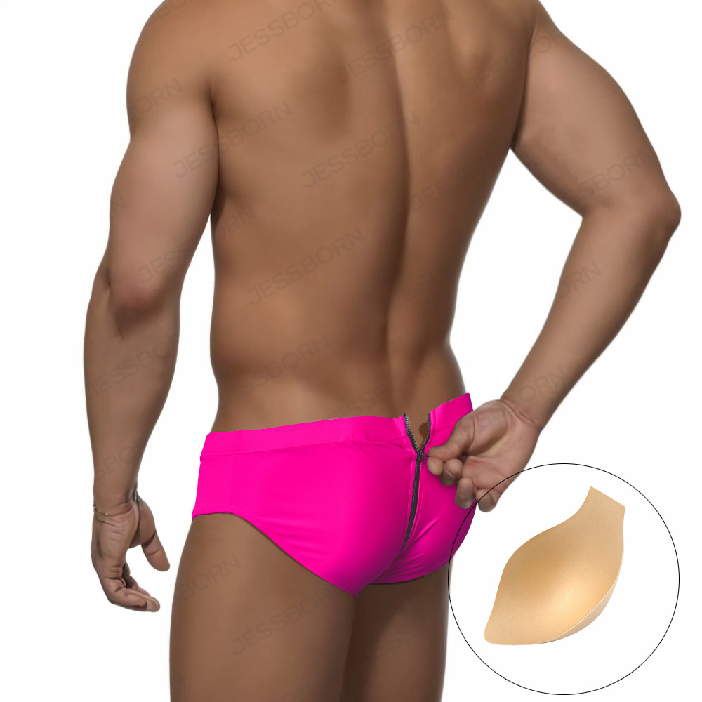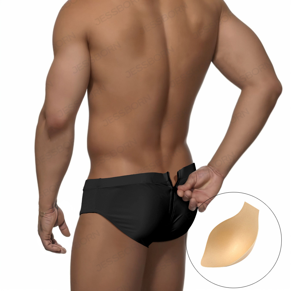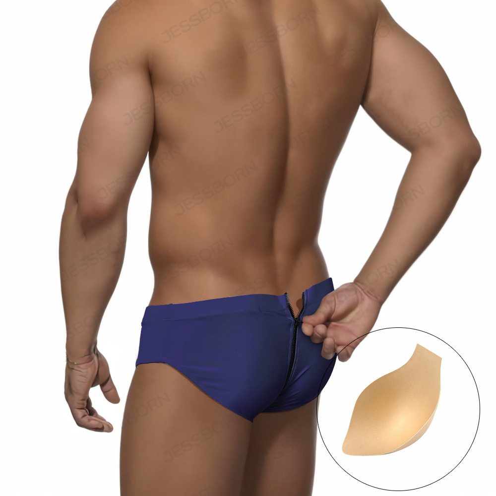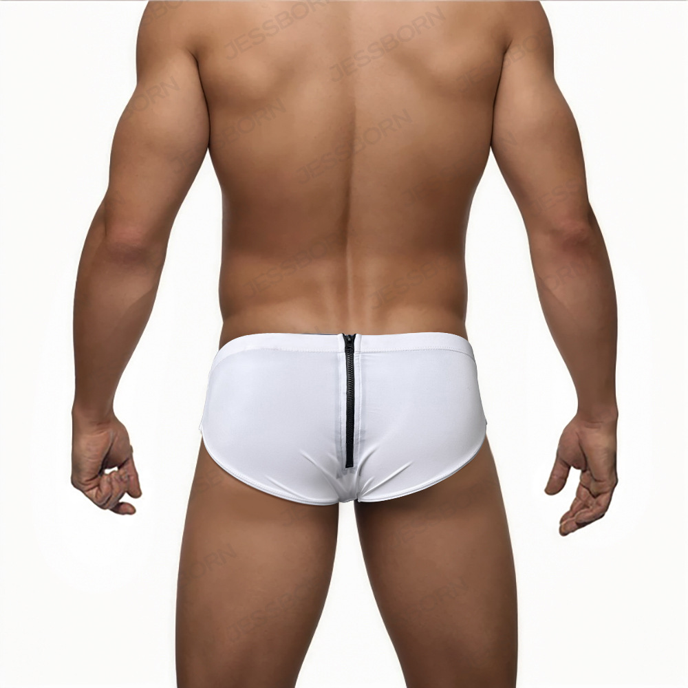 JESSBORN 남성용 후면 지퍼 삼각형 수영 트렁크 섹시한 낮은 허리 단색 온천 컵 당황 방지 수영 트렁크