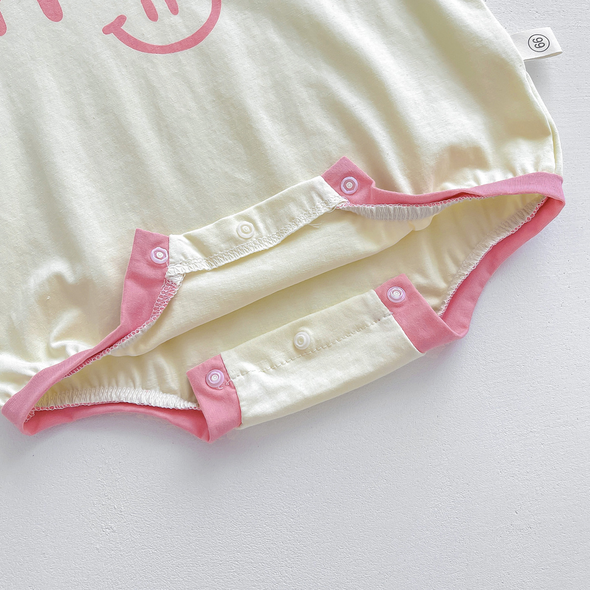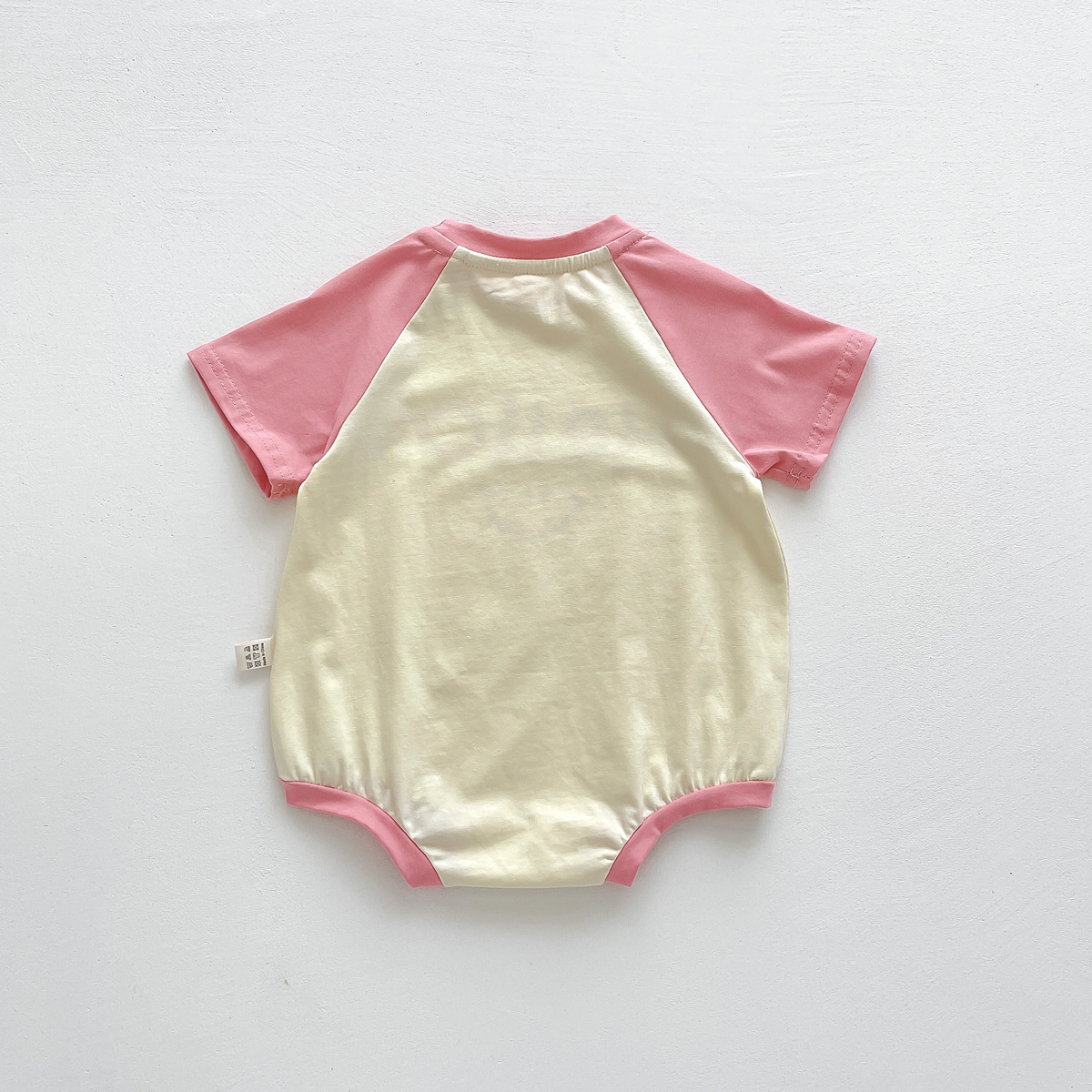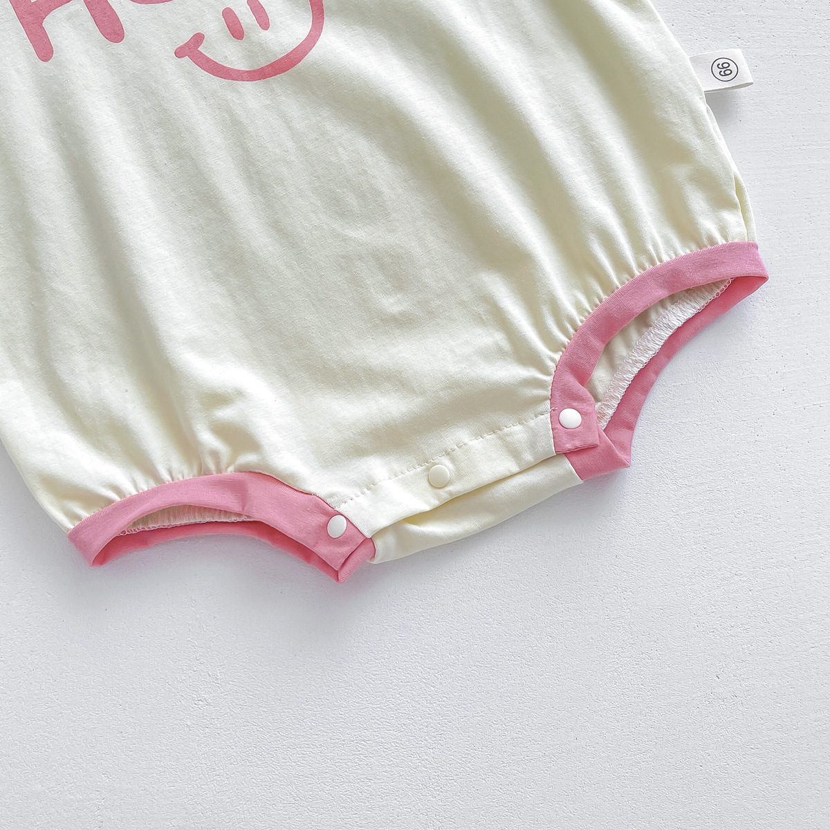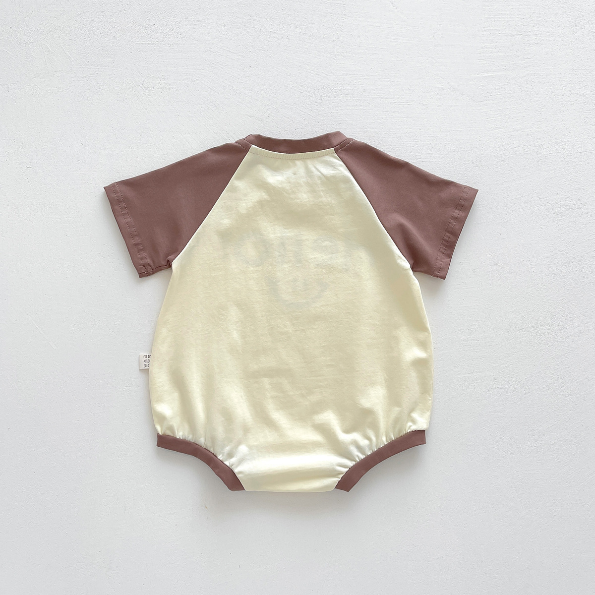 아기 옷 여름 착용 얇은 소년 소녀 아기 점프 수트 신생아 대비 색 반소매 보름달 백일 삼각형 모자