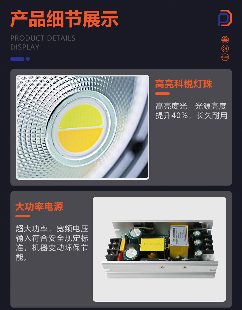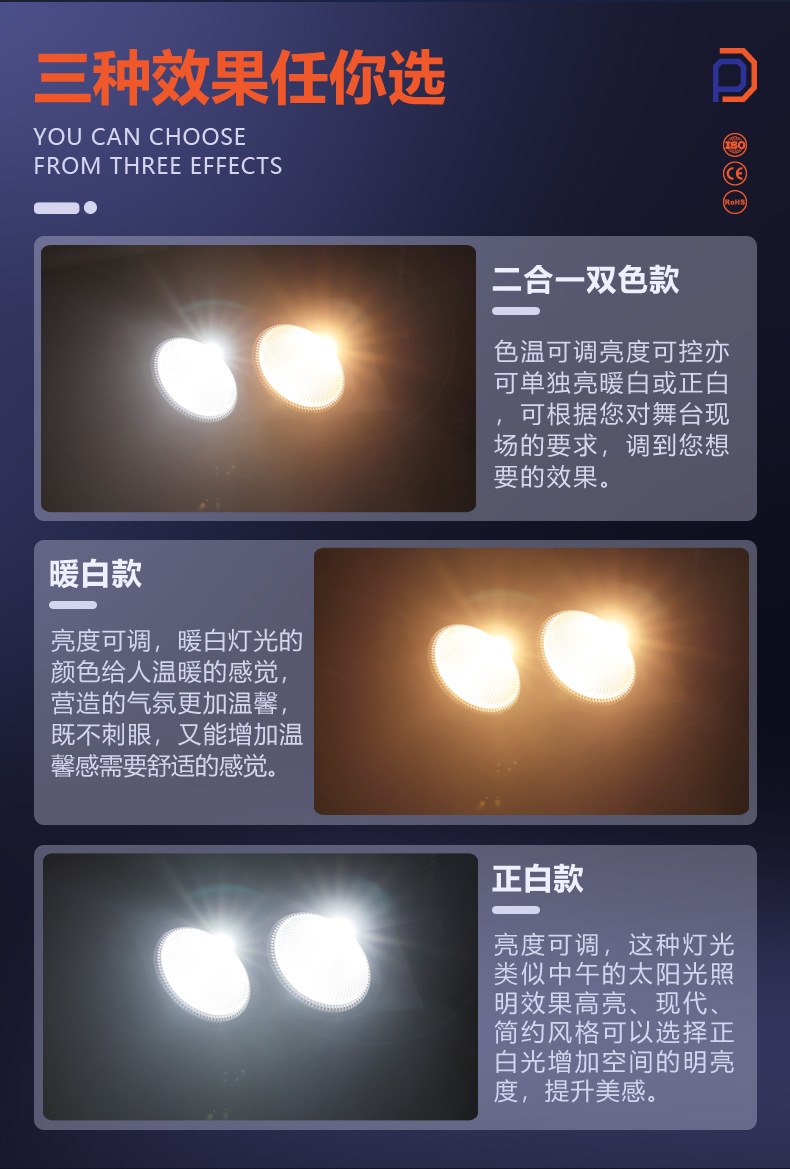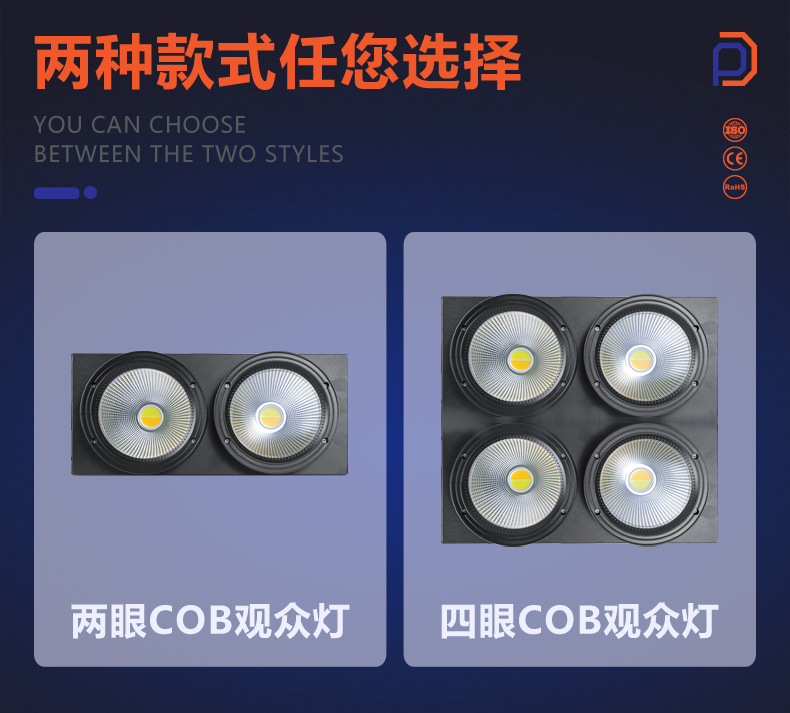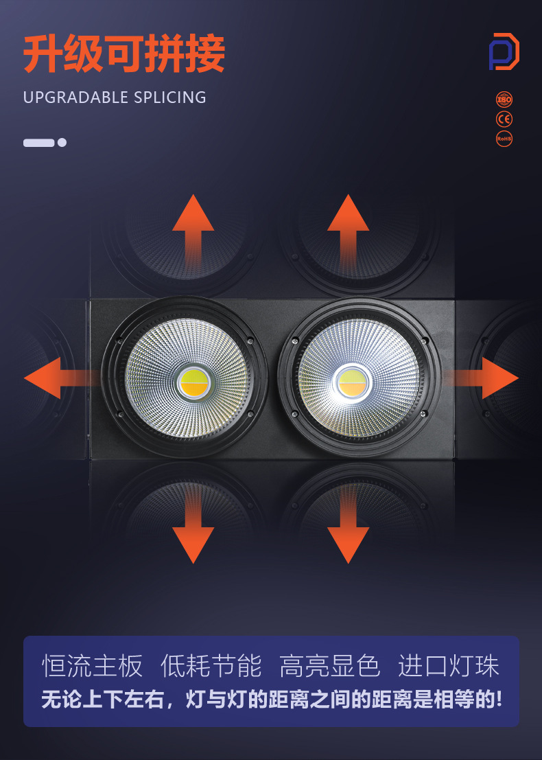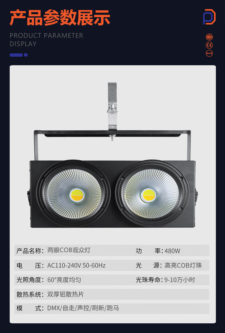 패튼 COB 투 아이 라이트 led 따뜻한 빛 화이트 라이트 관객 조명 클리어 바 플래시 필 라이트 무대 조명