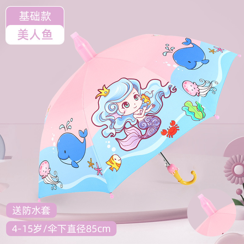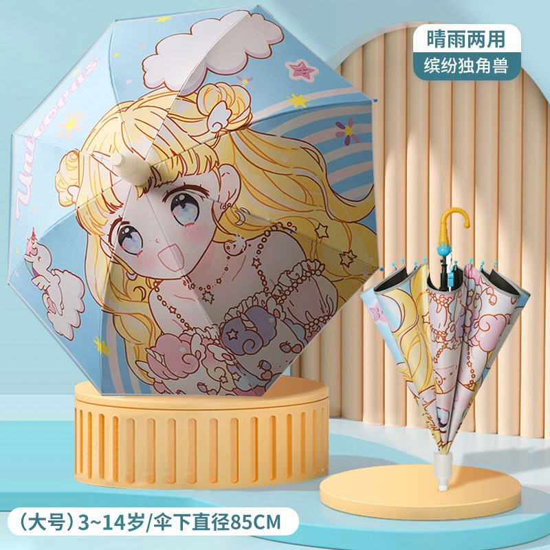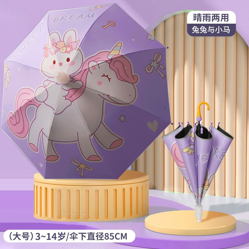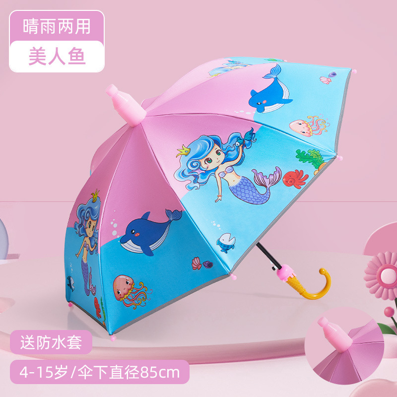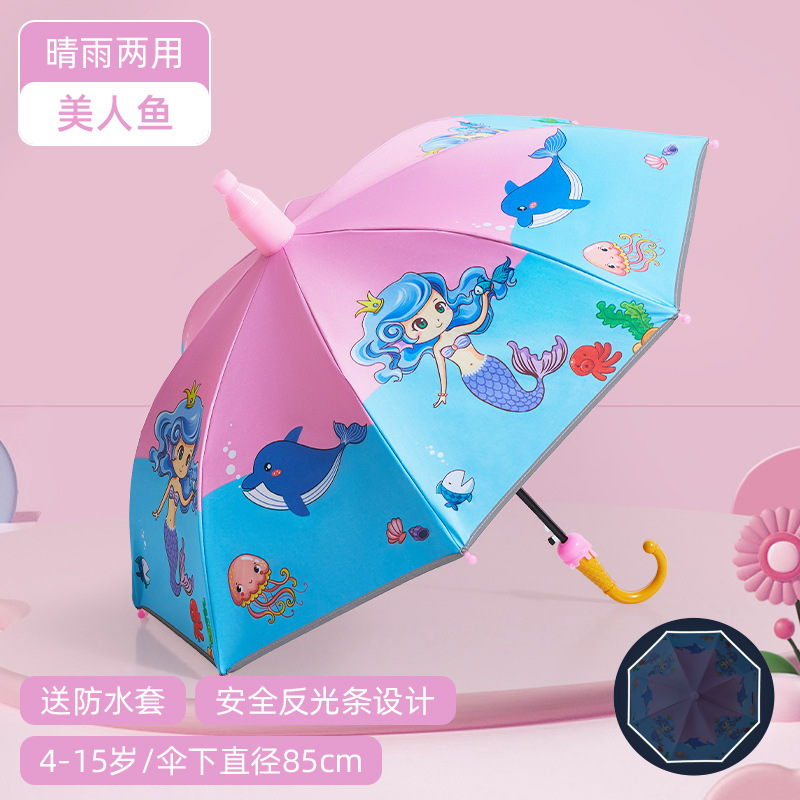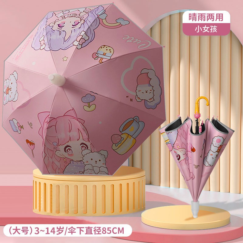 어린이 우산 인쇄 로고 도매 유치원 여성 학생 만화 검은 접착제 맑고 비 이중 사용 우산 방수 커버 광고 우산