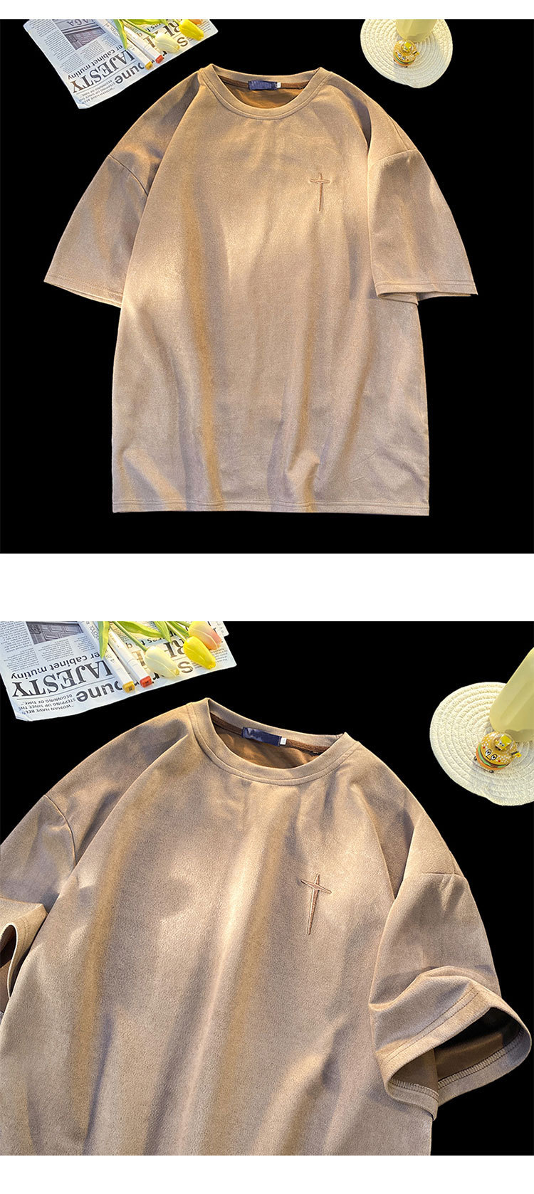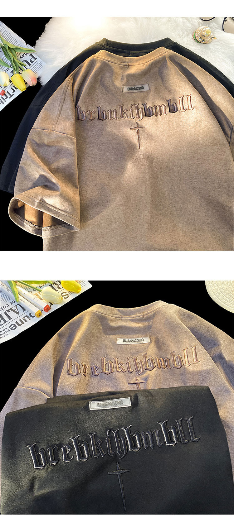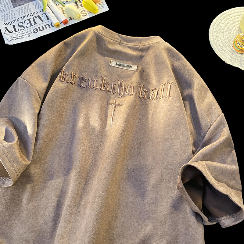 스웨이드 반팔 티셔츠 남성용 여름 새로운 패션 브랜드 아메리칸 스타일 십대를위한 복고풍 무거운 느슨한 반팔 티셔츠