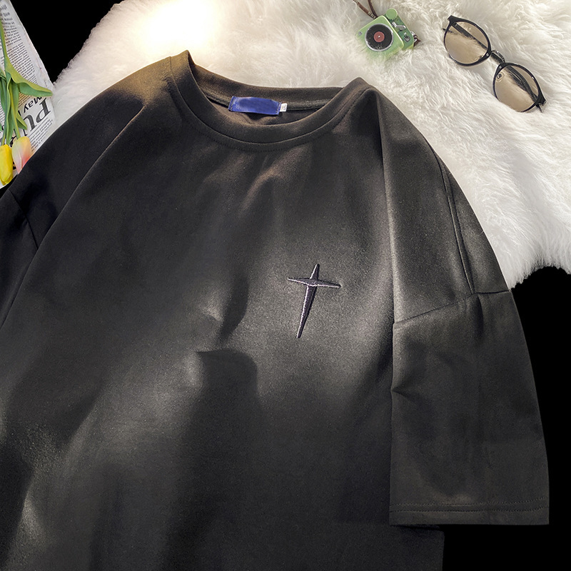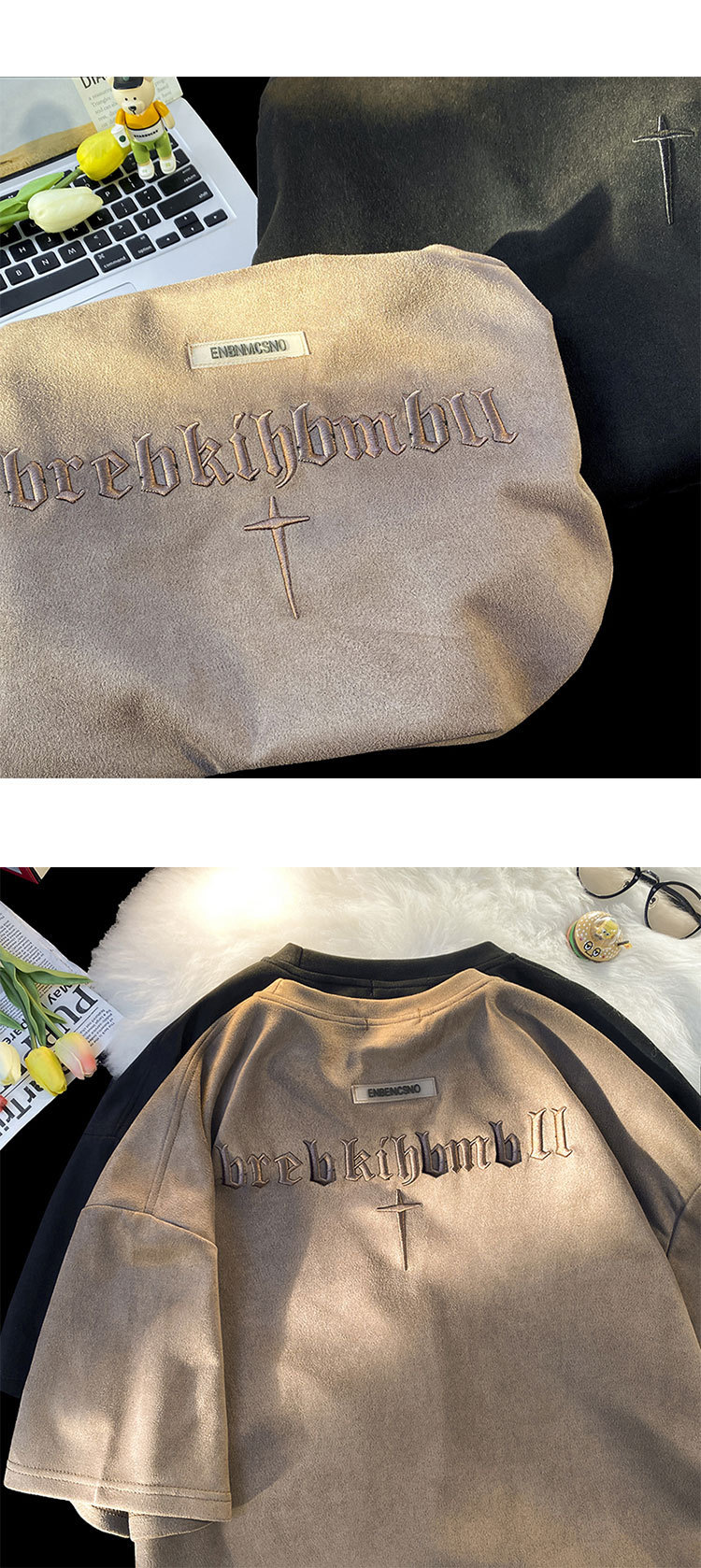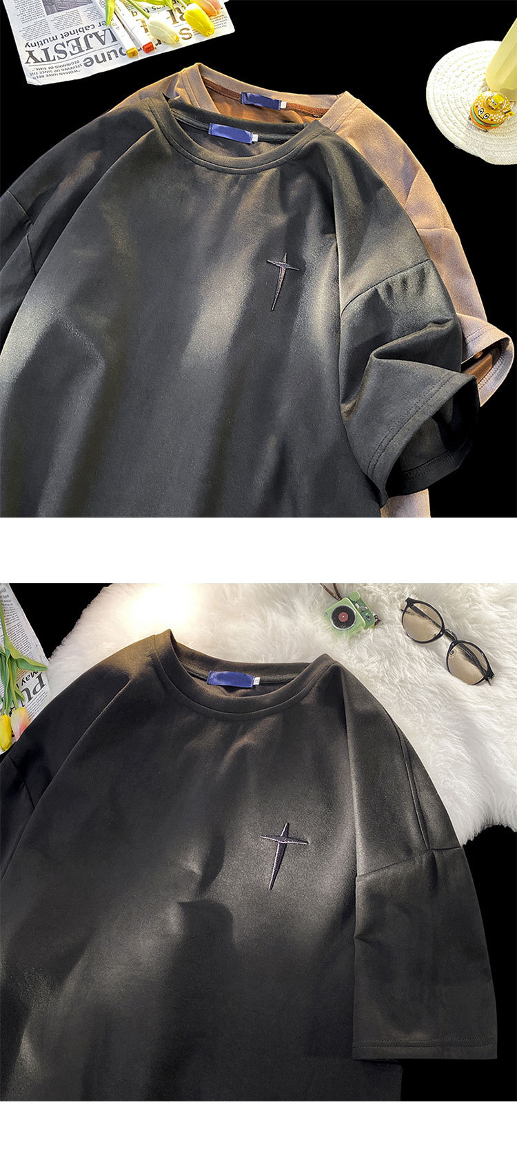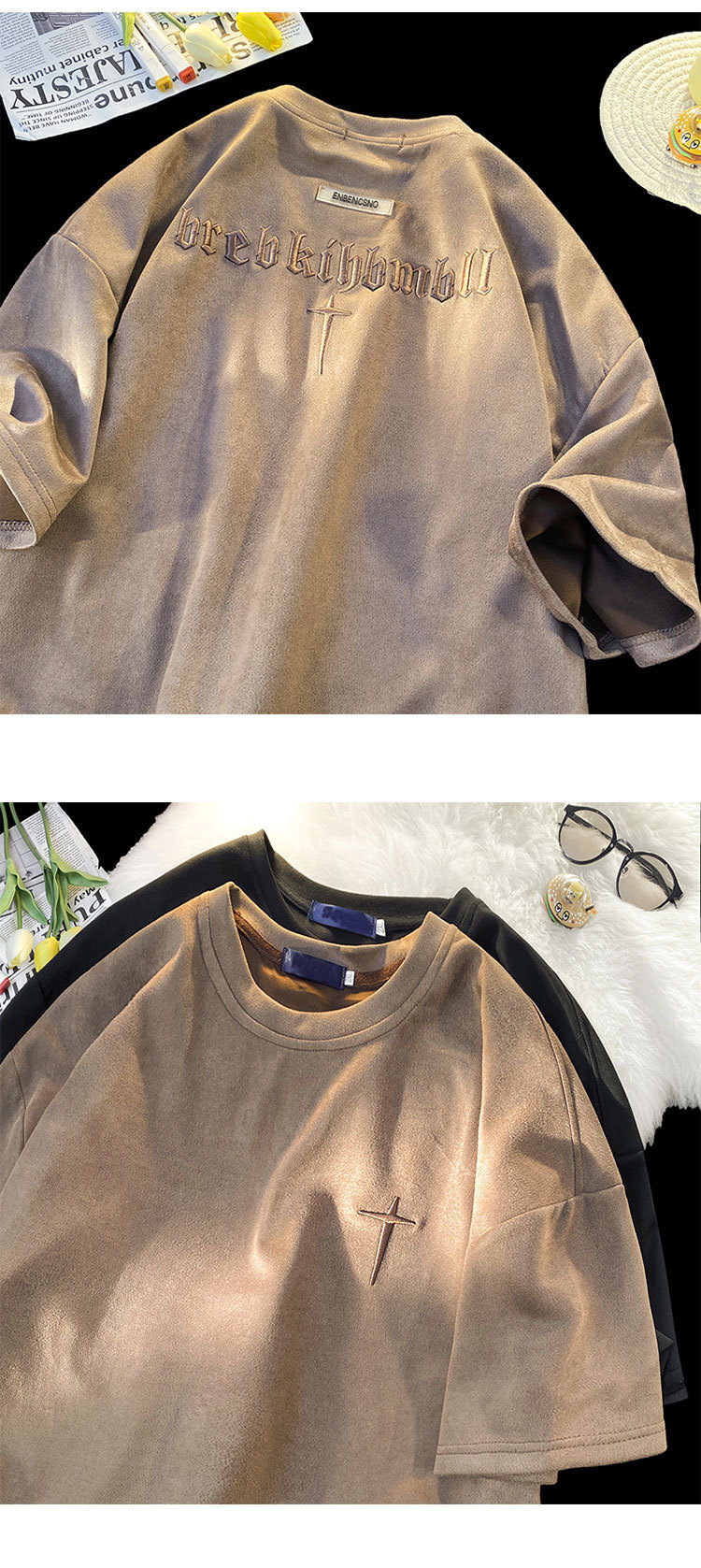 스웨이드 반팔 티셔츠 남성용 여름 새로운 패션 브랜드 아메리칸 스타일 십대를위한 복고풍 무거운 느슨한 반팔 티셔츠