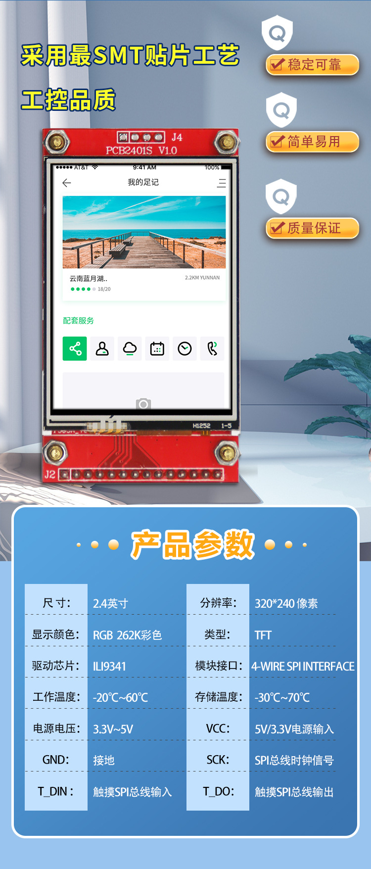 2.4 인치 SPI 모듈 320*240 드라이브 IC9341 저항 터치 스크린 LCD 화면 14 핀 SPI 인터페이스스토어 가기