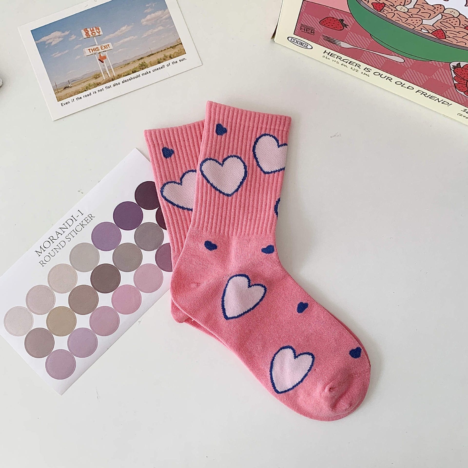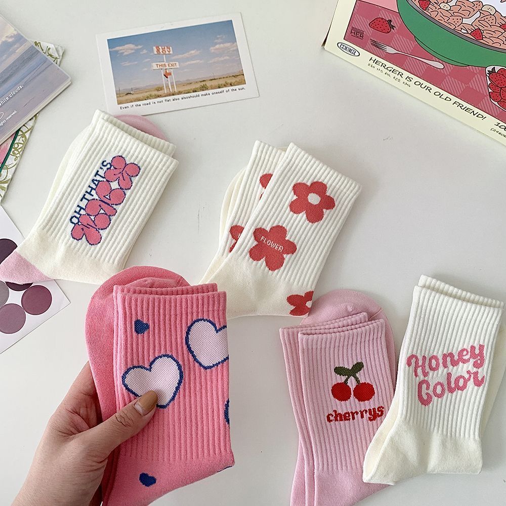 핑크 Zhuji 양말 여자의 여름 인스 타 그램 스타일 유행 땀 흡수 창춘 가을 귀여운 사랑 꽃 편지 유행 양말스토어 가기