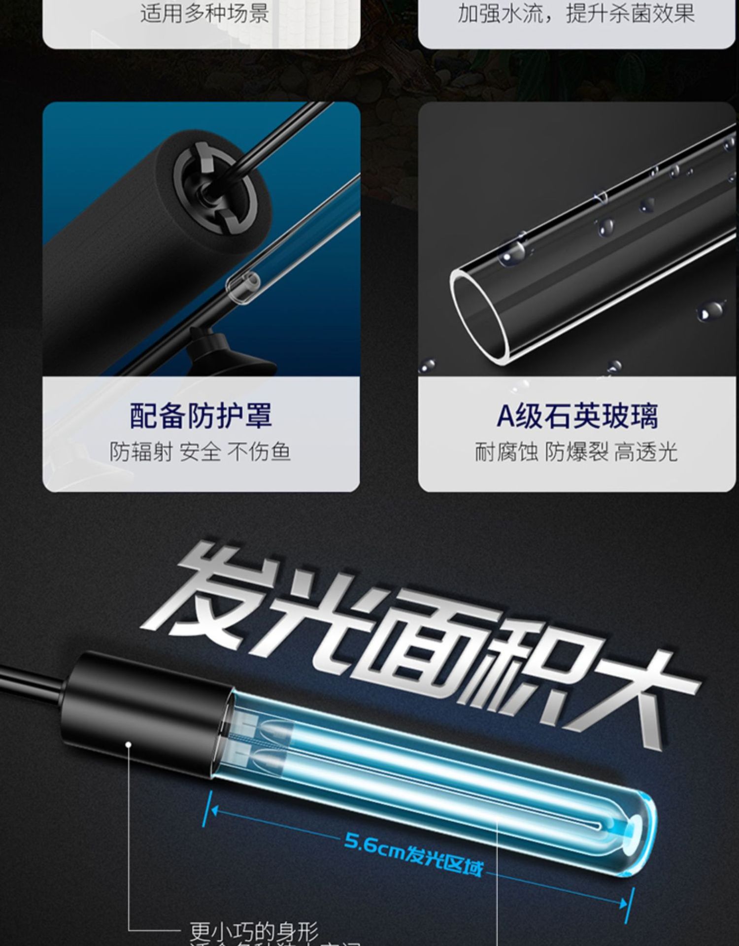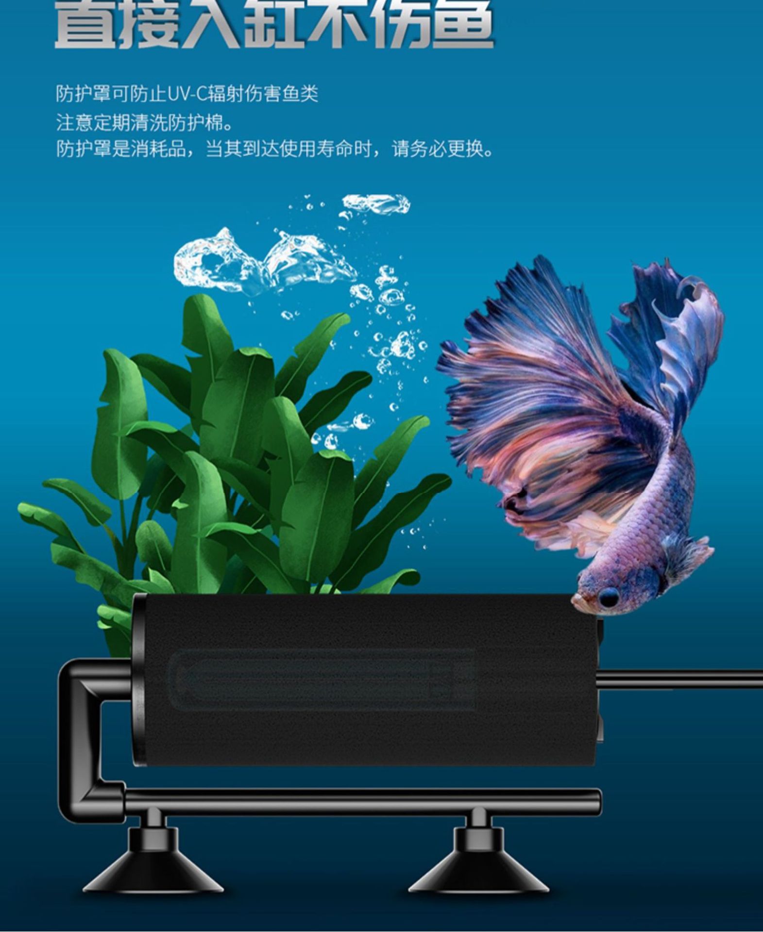 Qianhu 미니 어항 UV 살균 램프 자외선 살균 물 정화 녹색 물 제거 작은 어항 거북이 소독 및 탈취