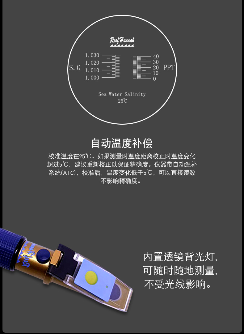 해수 어항용 암초 한나 해수 광학 피크노미터 염분 측정기 광학 염분 측정기