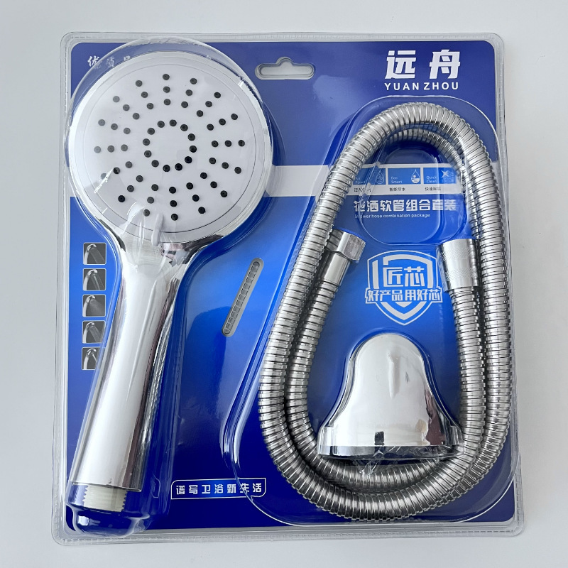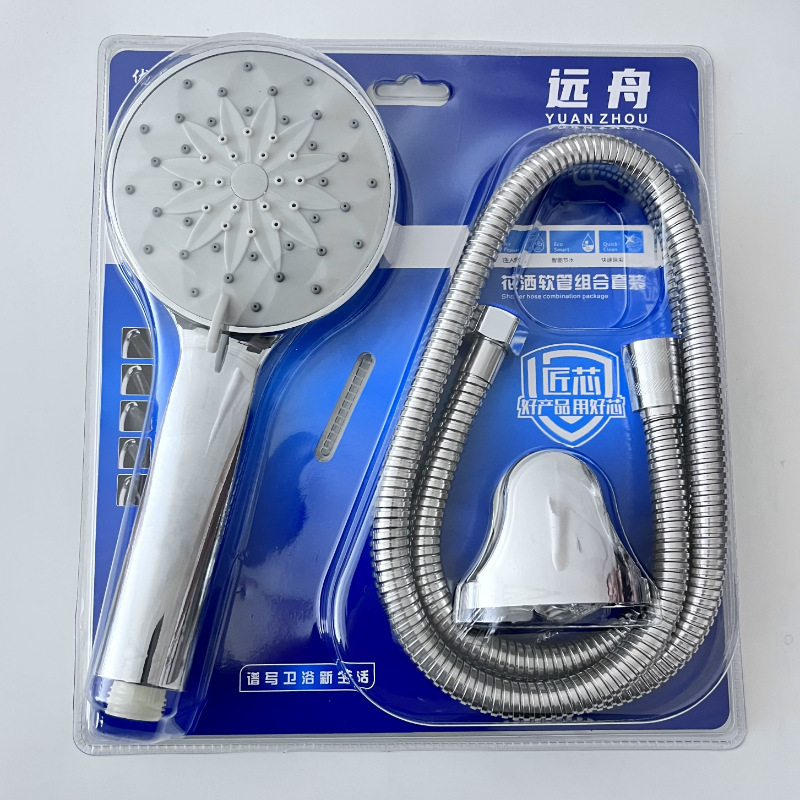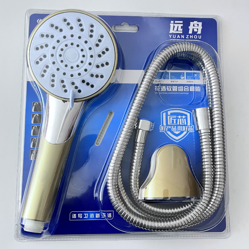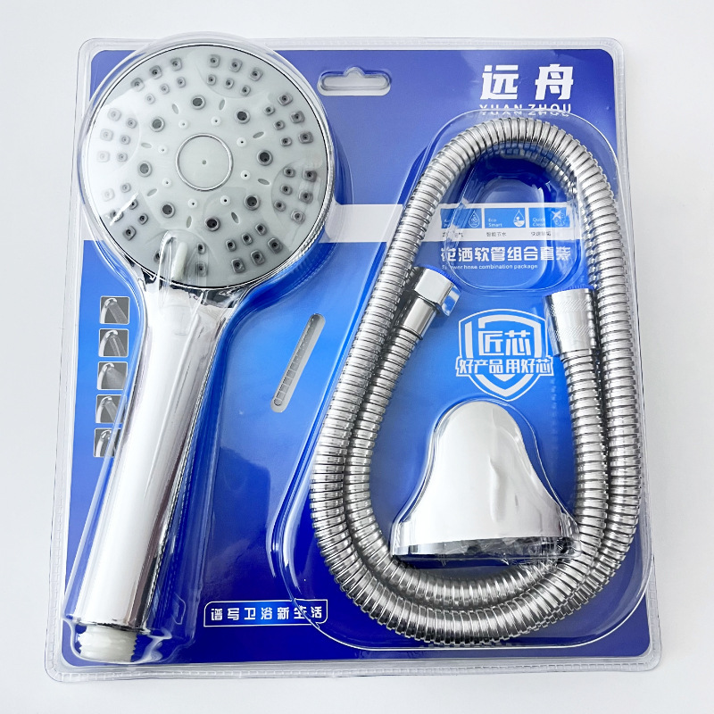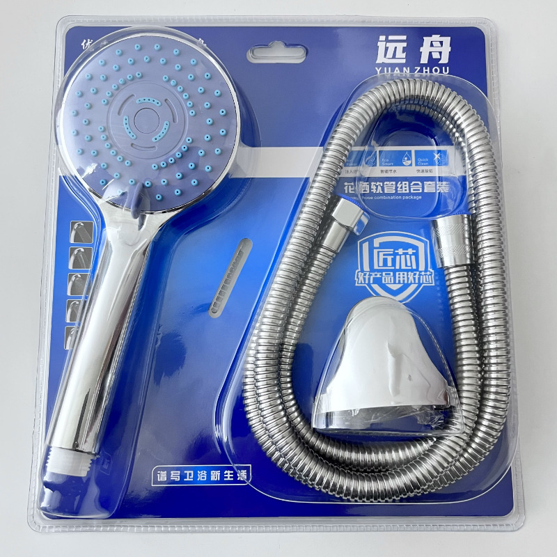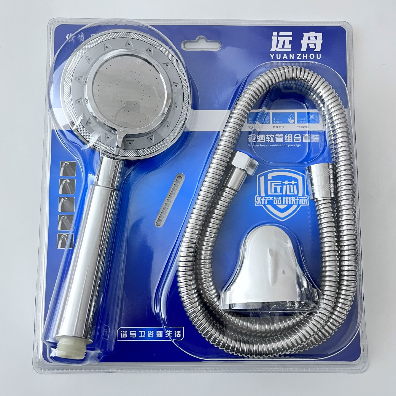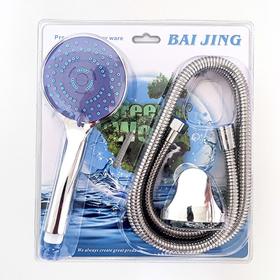 • 批发英文花洒套装淋浴吸塑增压喷头家用花洒三件套软管套装淋浴头4.8折扣价:4.8