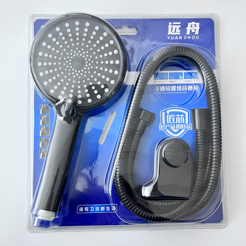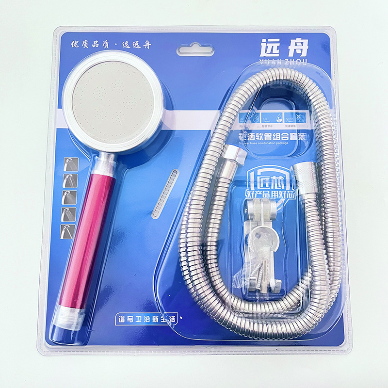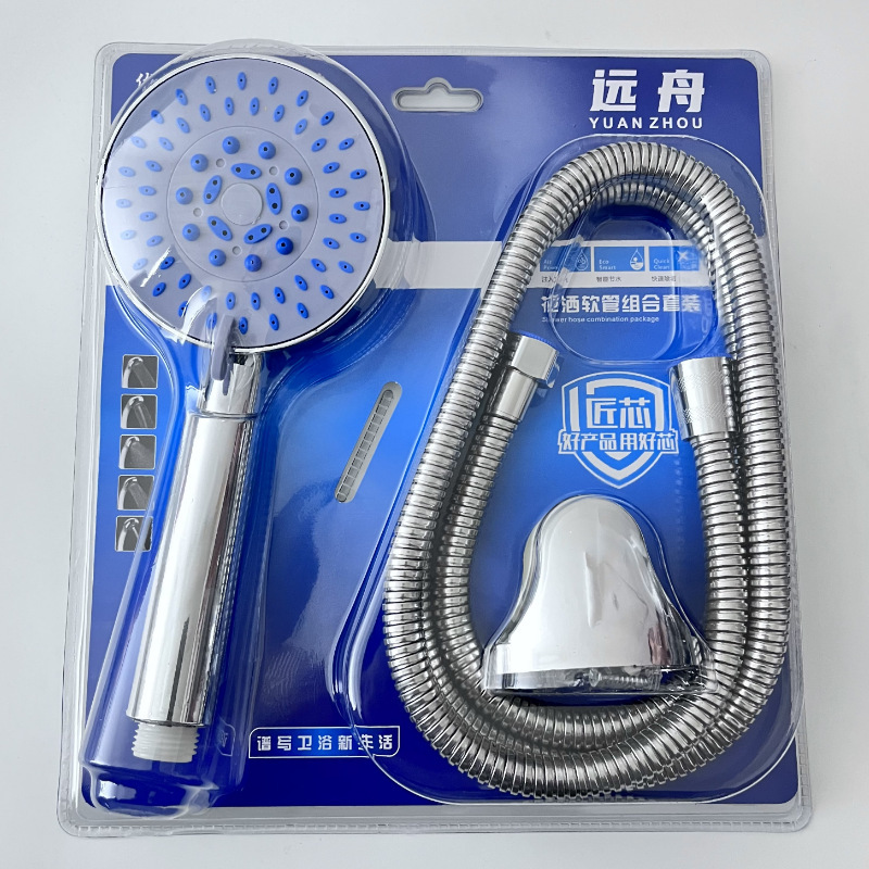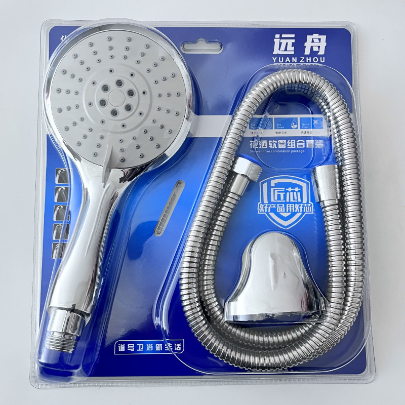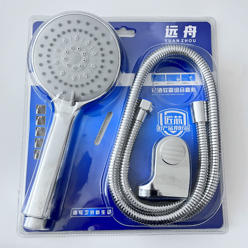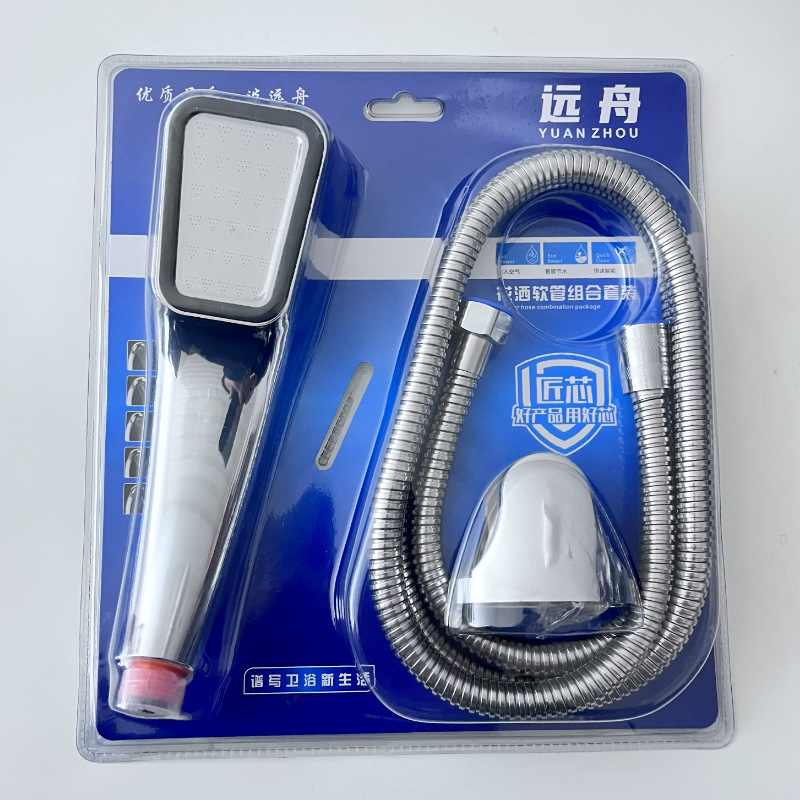 • 批发英文花洒套装淋浴吸塑增压喷头家用花洒三件套软管套装淋浴头4.8折扣价:4.8
