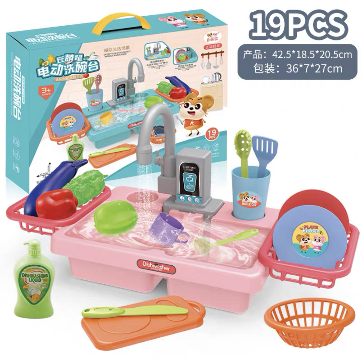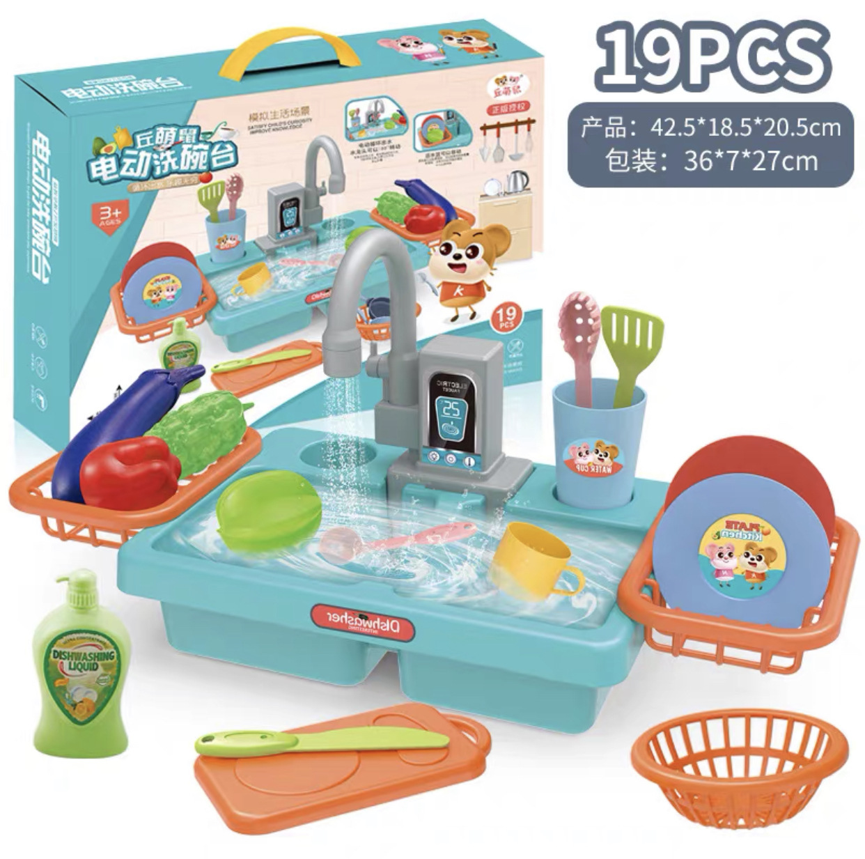 어린이 식기 세척기 놀이 홈 세트 시뮬레이션 주방 야채 세면대 전기 순환 물 방전 세척 테이블 여자의 장난감