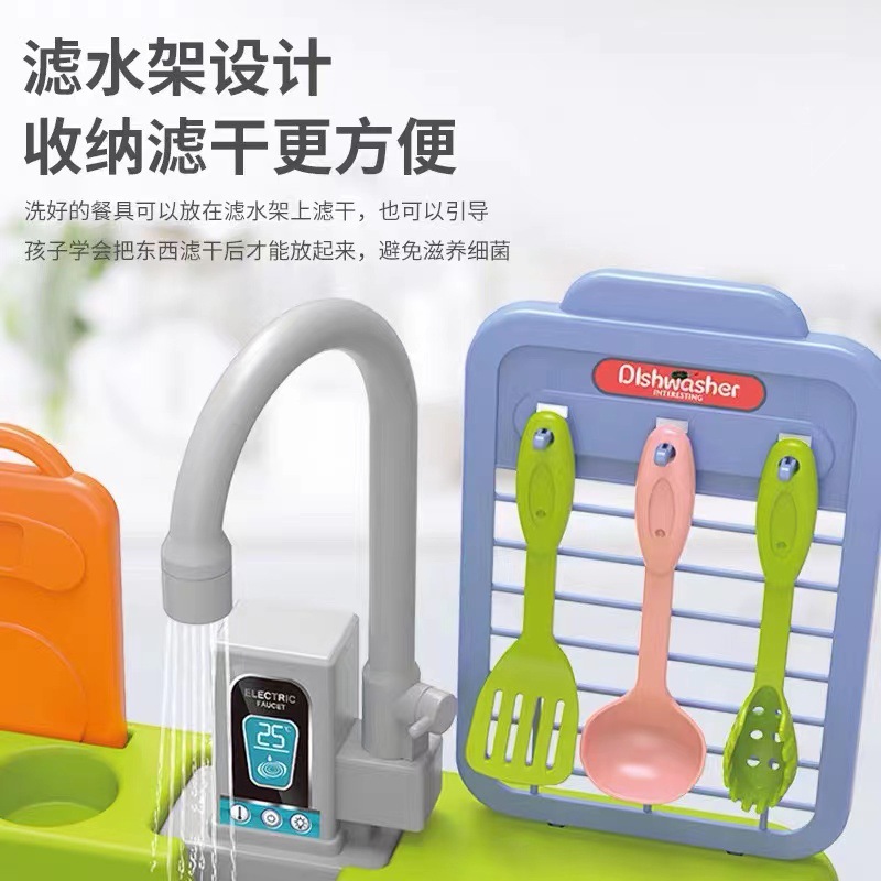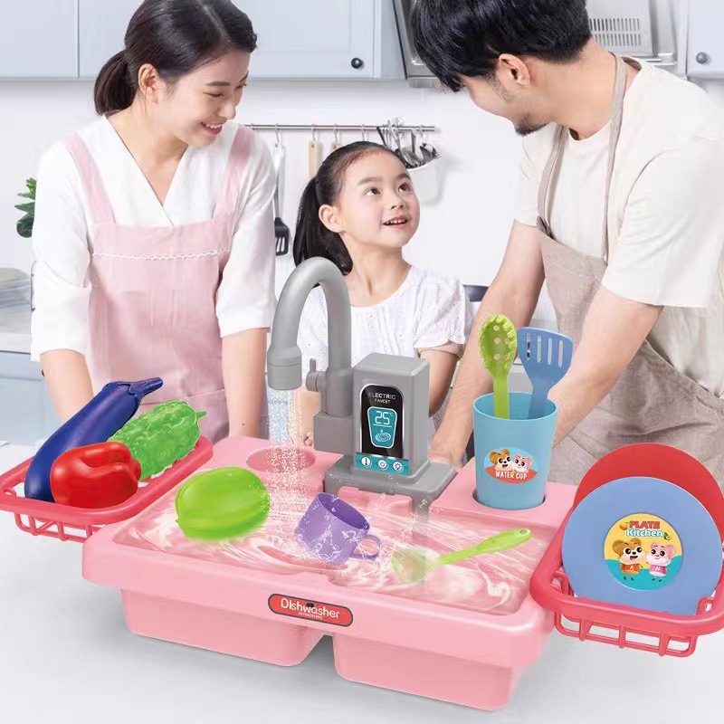 어린이 식기 세척기 놀이 홈 세트 시뮬레이션 주방 야채 세면대 전기 순환 물 방전 세척 테이블 여자의 장난감스토어 가기