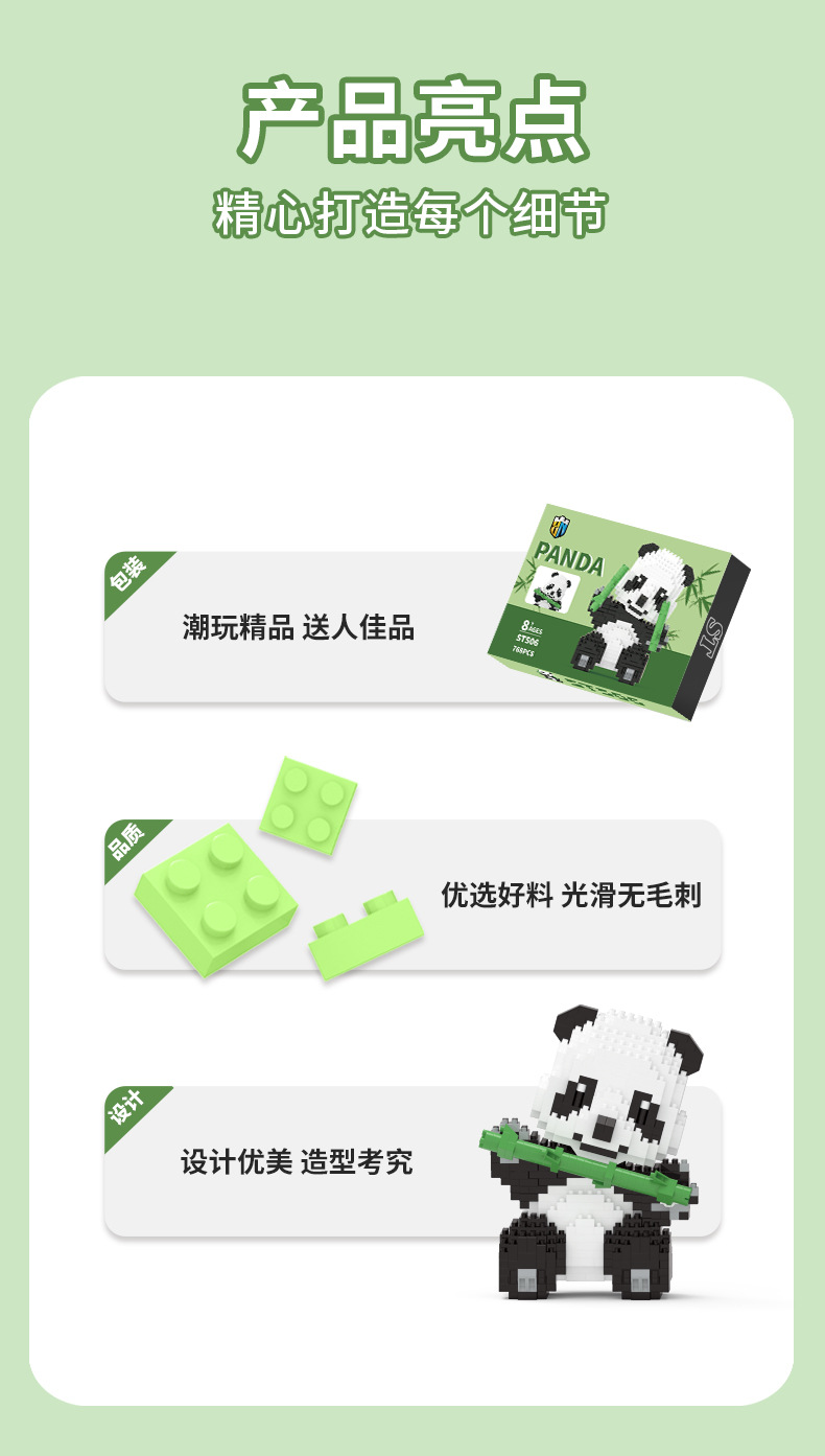 【货号名称】:竹竹熊猫微颗粒积木摆件