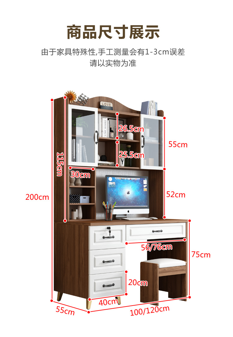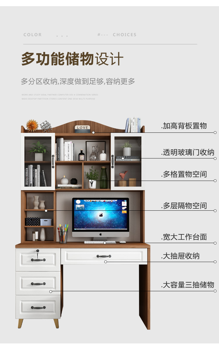책장과 간단한 책상 책장 통합 쓰기 책상 학생 공부 책상 홈 침실 컴퓨터 데스크탑 테이블스토어 가기
