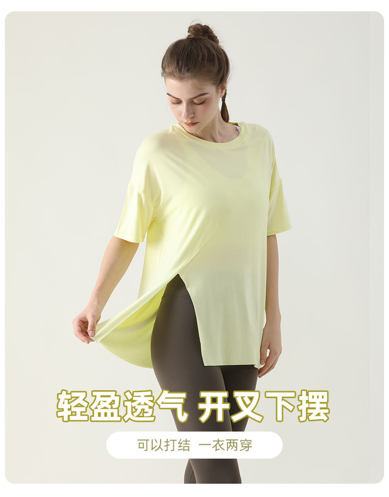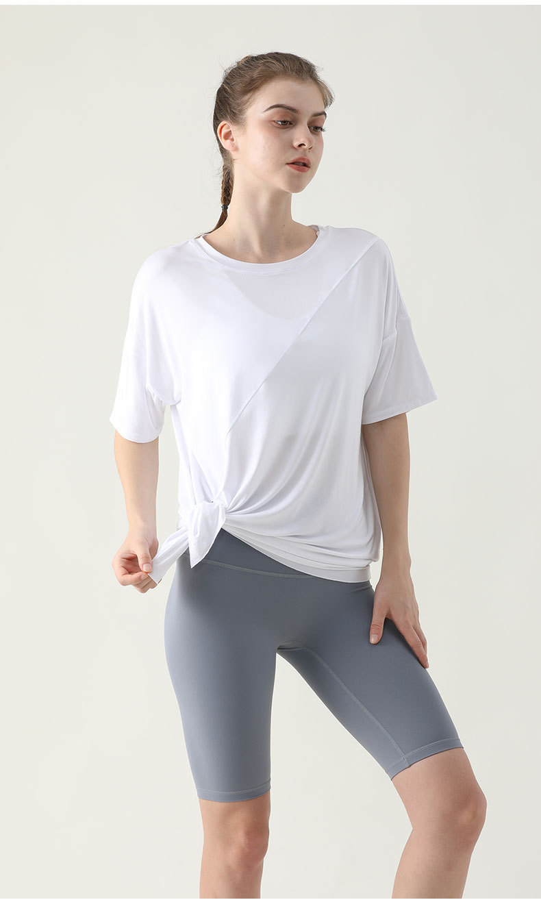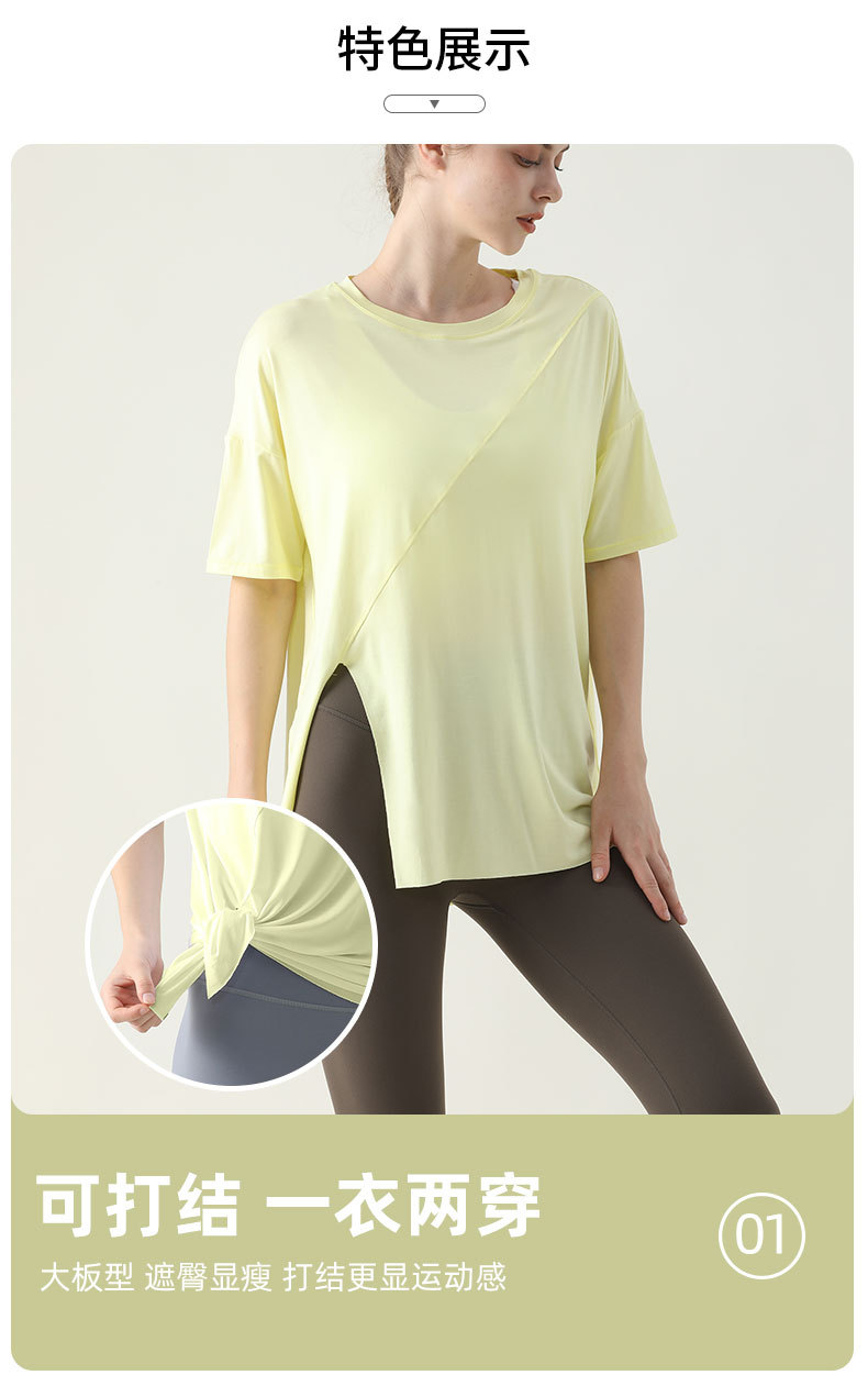 사이드 웨이스트 가디건 블라우스 여성용 느슨한 러닝 피트니스 속건 스포츠 티셔츠 여름 슬리밍 요가 의류 반팔 탑스토어 가기