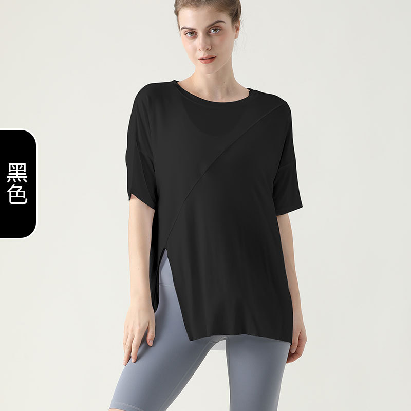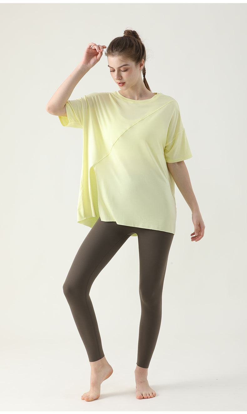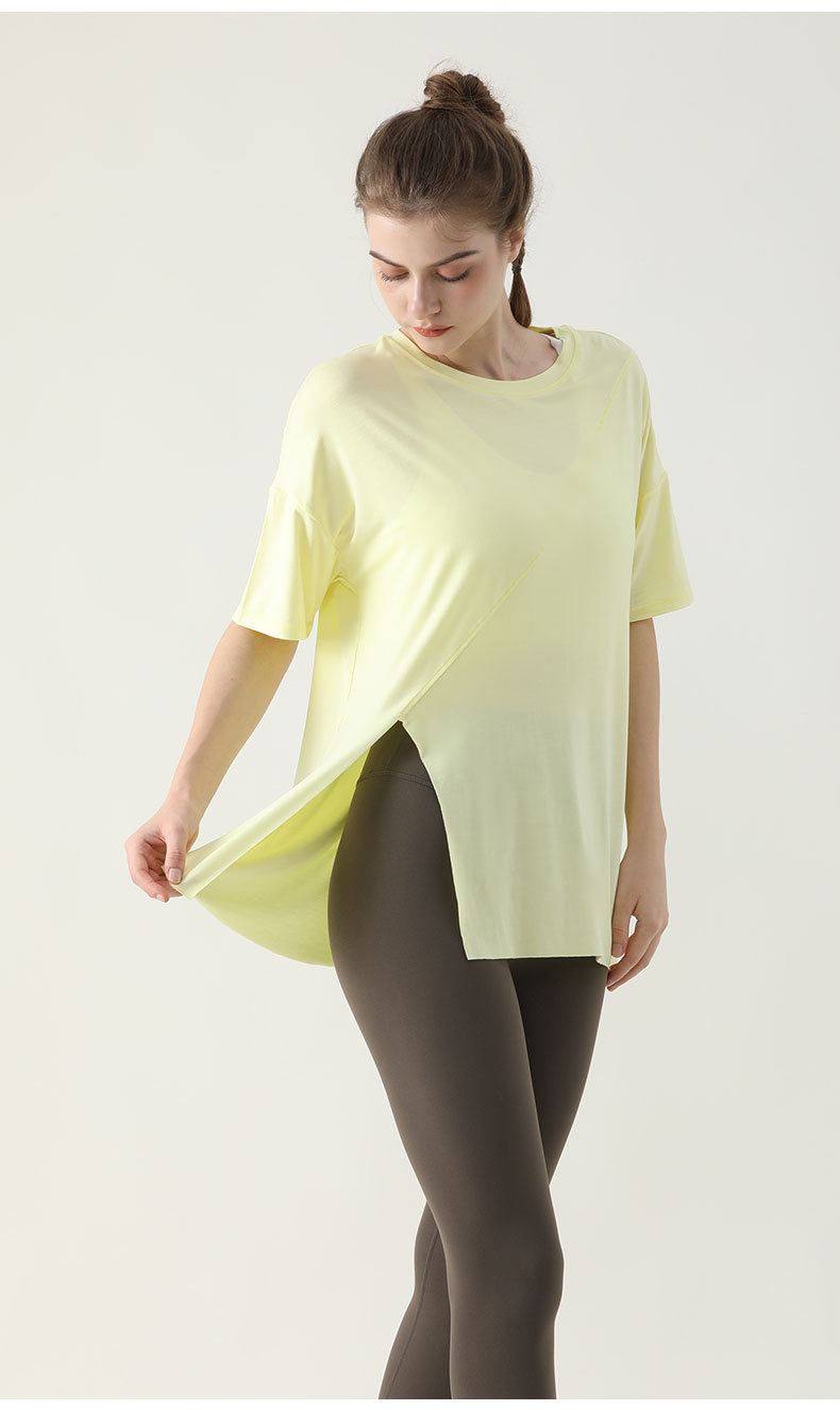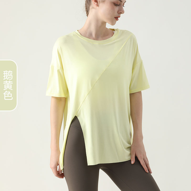 사이드 웨이스트 가디건 블라우스 여성용 느슨한 러닝 피트니스 속건 스포츠 티셔츠 여름 슬리밍 요가 의류 반팔 탑스토어 가기