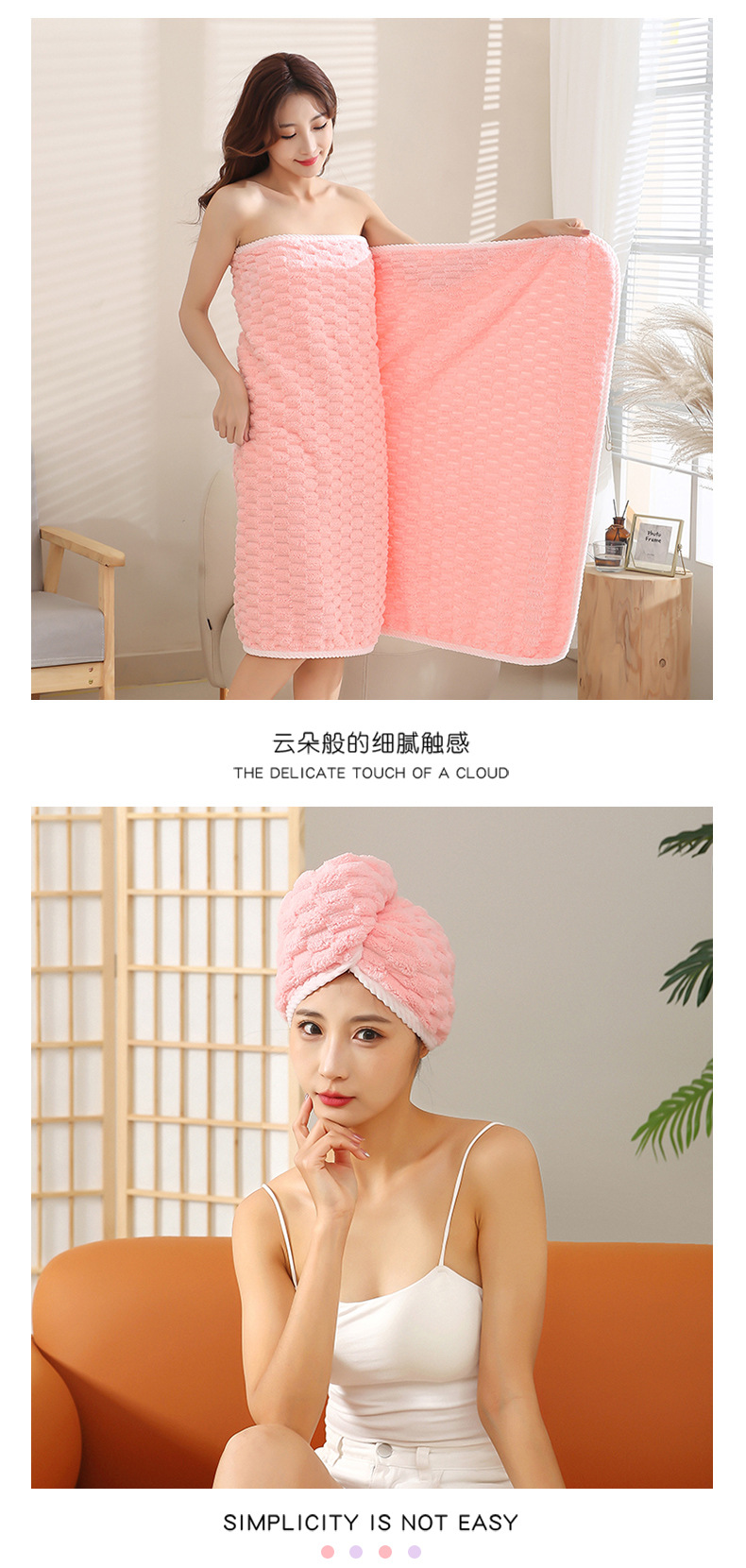 산호 양털 구름 격자 목욕타월 4 장 흡수 소프트 목욕 무지 타월 목욕타월 욕실 샤워 캡 도매