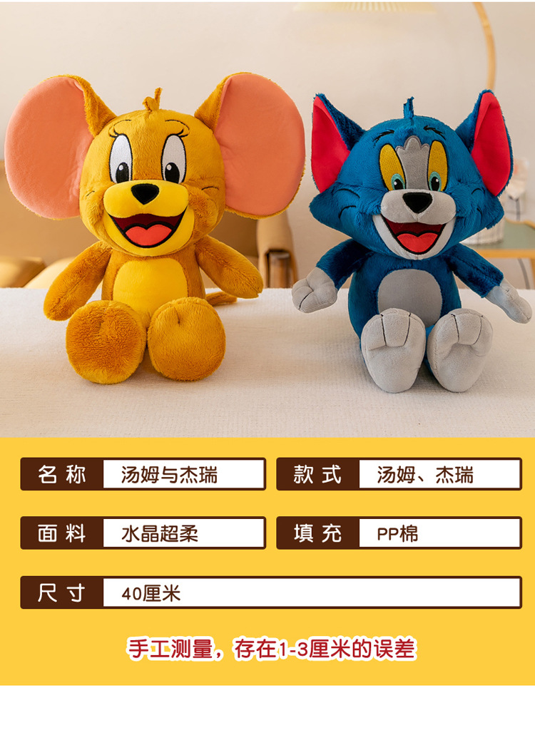 만화 봉제 인형 고양이와 마우스 아이들의 귀여운 잠자는 인형 생일 선물 침대 옆 장식품 베개
