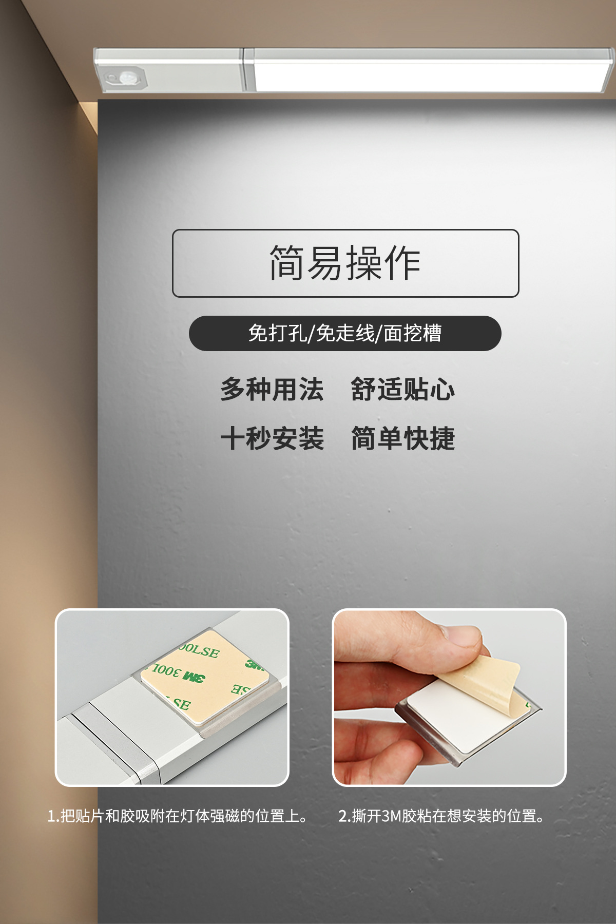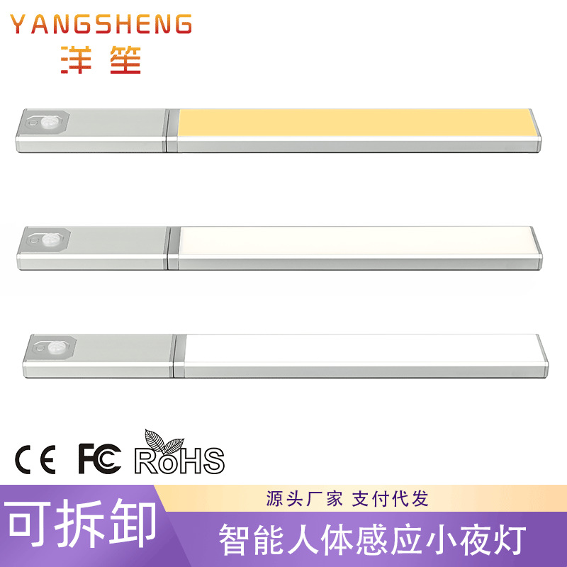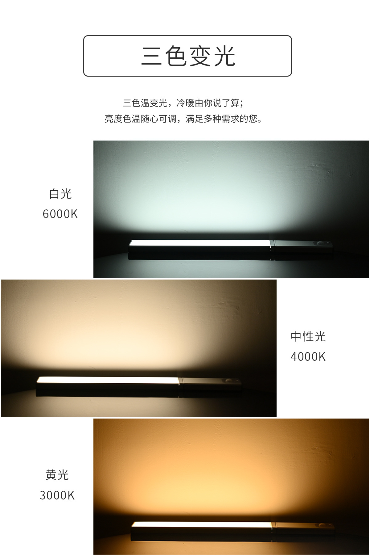 스마트 PIR 인체 유도 램프 착탈식 배터리 3 색 온도 스트립 캐비닛 초박형 충전 마그네틱 야간 조명