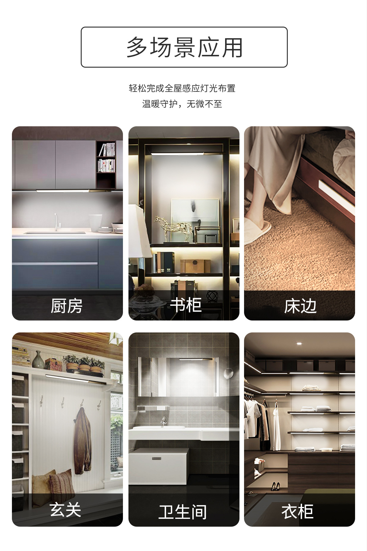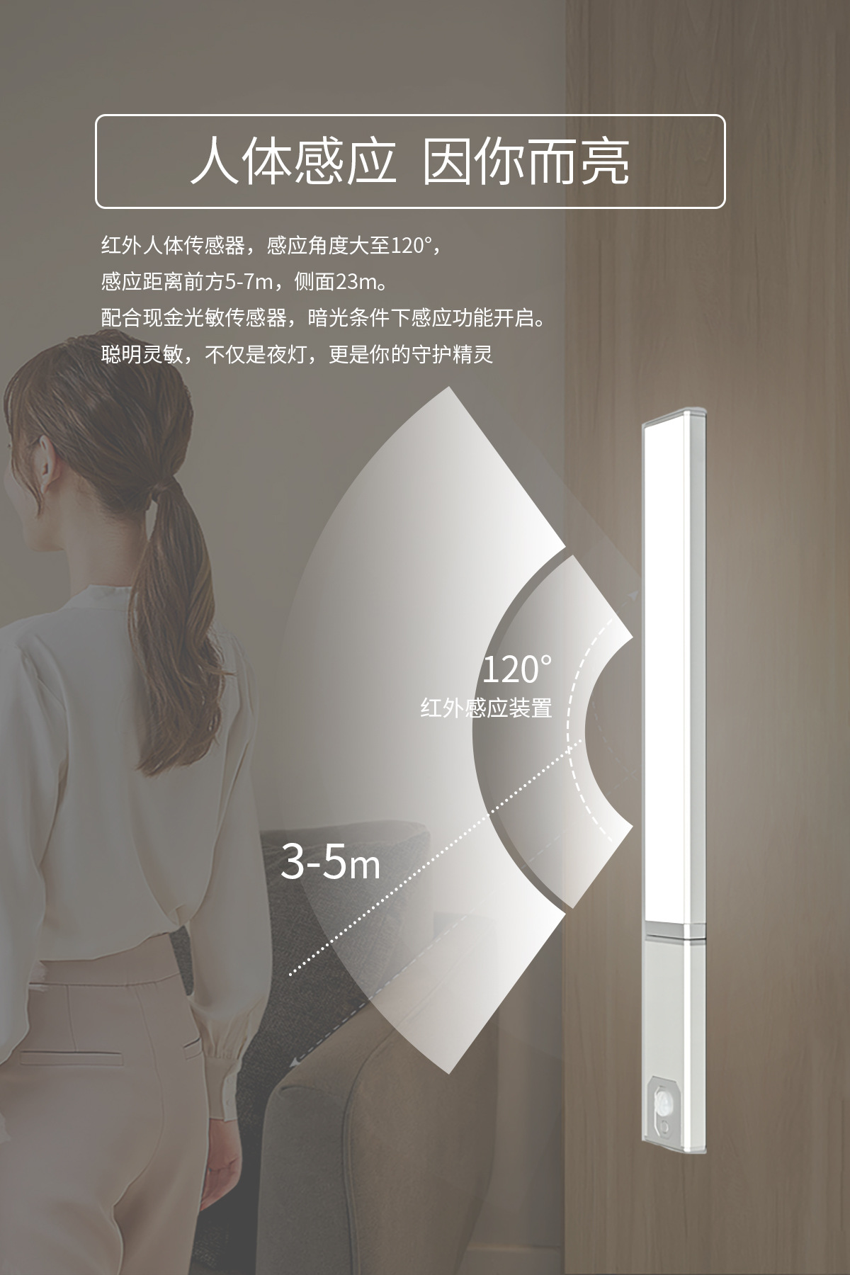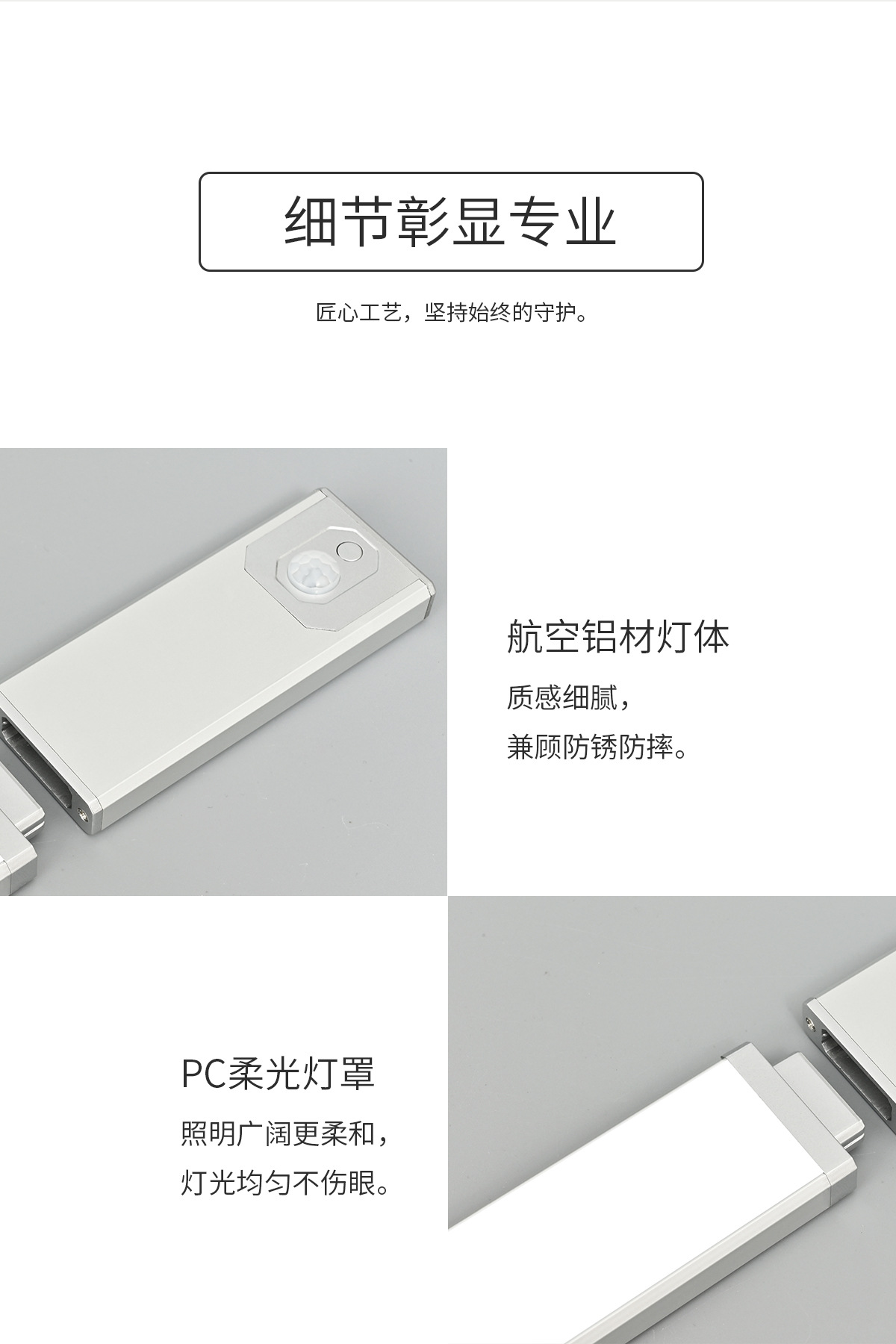 스마트 PIR 인체 유도 램프 착탈식 배터리 3 색 온도 스트립 캐비닛 초박형 충전 마그네틱 야간 조명