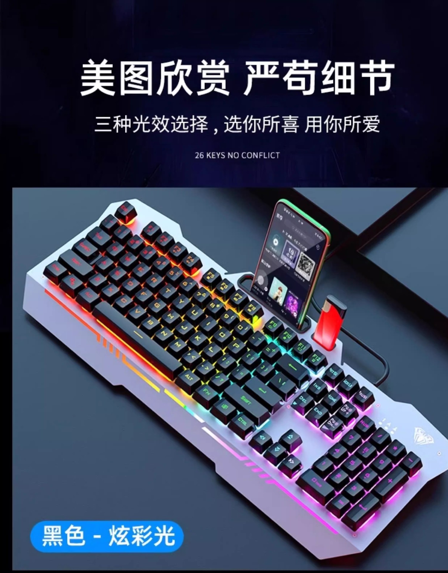 • F3010 블랙 싱글 키보드 다채로운 빛 + S50 마우스 + S605 헤드셋