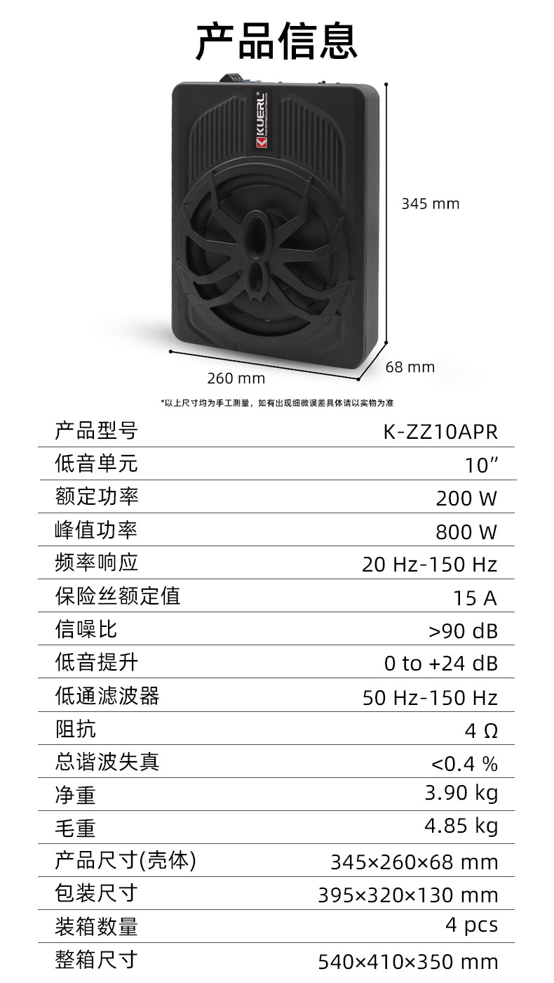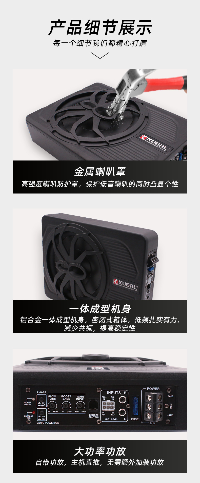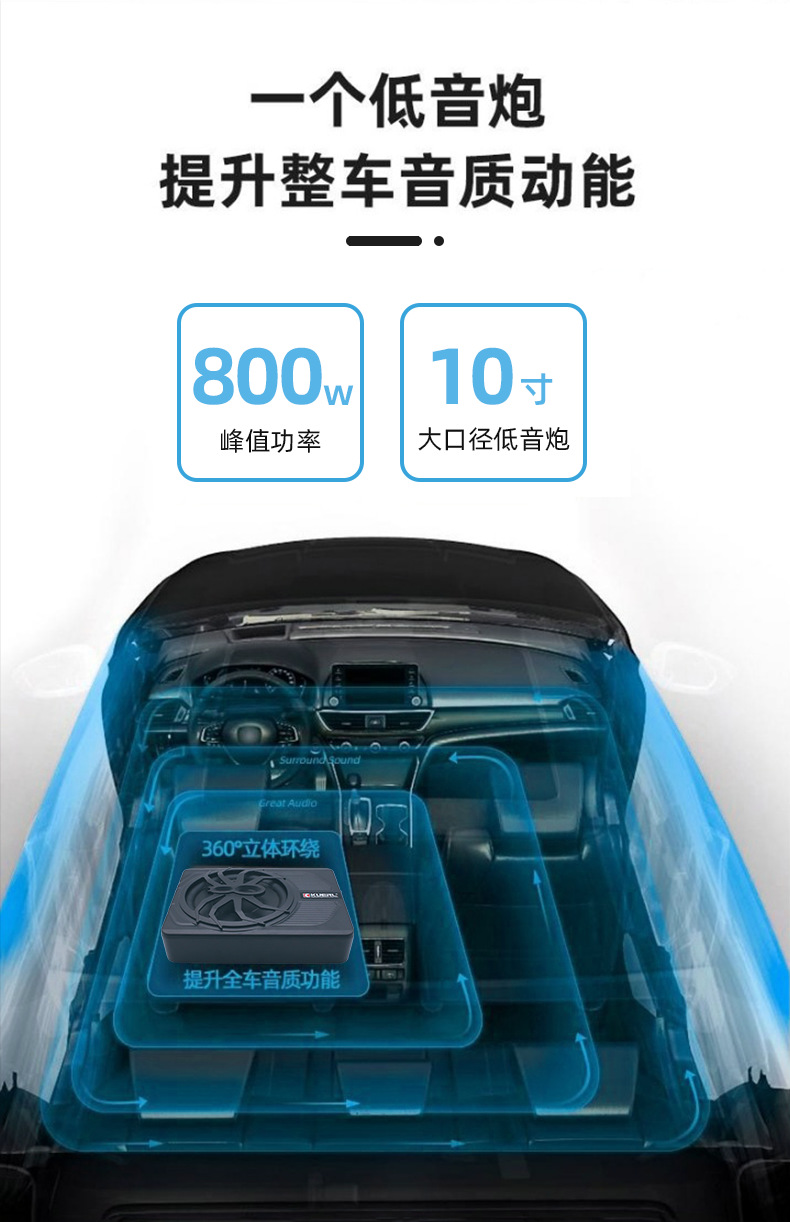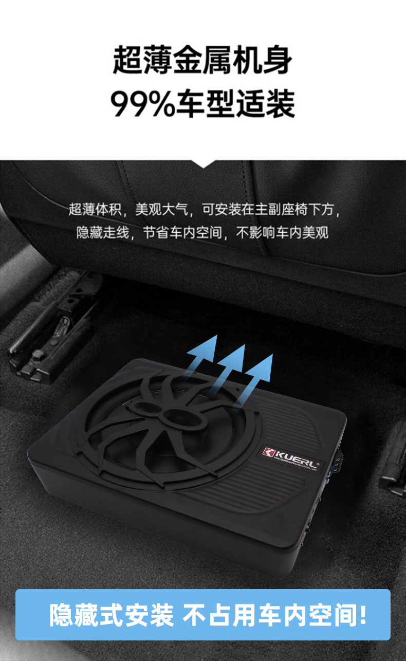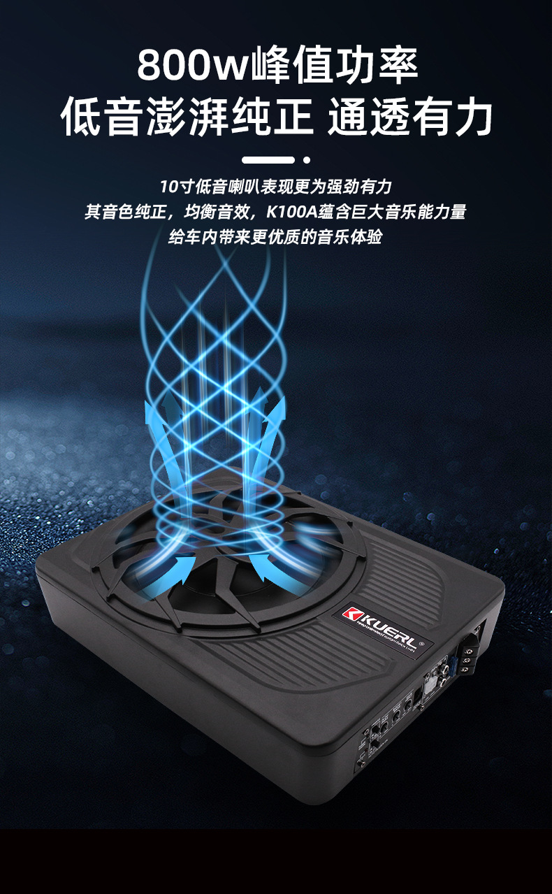 공장 도매 자동차 오디오 수정 10 인치 활성 고출력 순수 베이스 시트 자동차 초박형 서브 우퍼