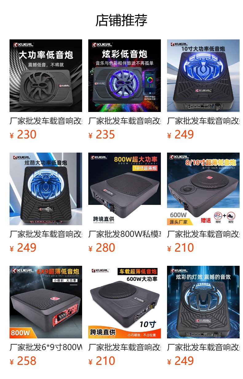 공장 도매 자동차 오디오 수정 10 인치 활성 고출력 순수 베이스 시트 자동차 초박형 서브 우퍼스토어 가기