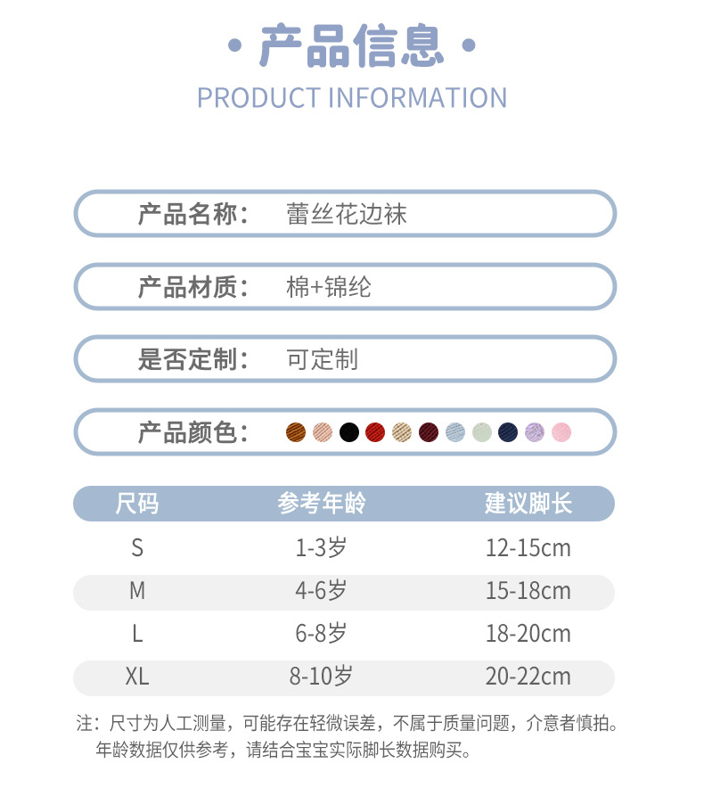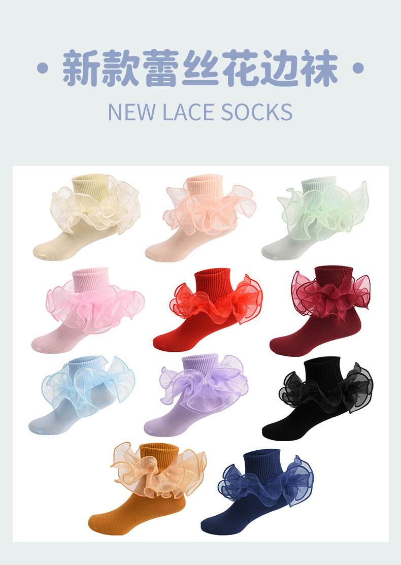 새로운 봄과 여름 어린이 얇은 면 양말 레이스 중간 길이 양말 소녀 단색 패션 공주 양말 통기성 재고