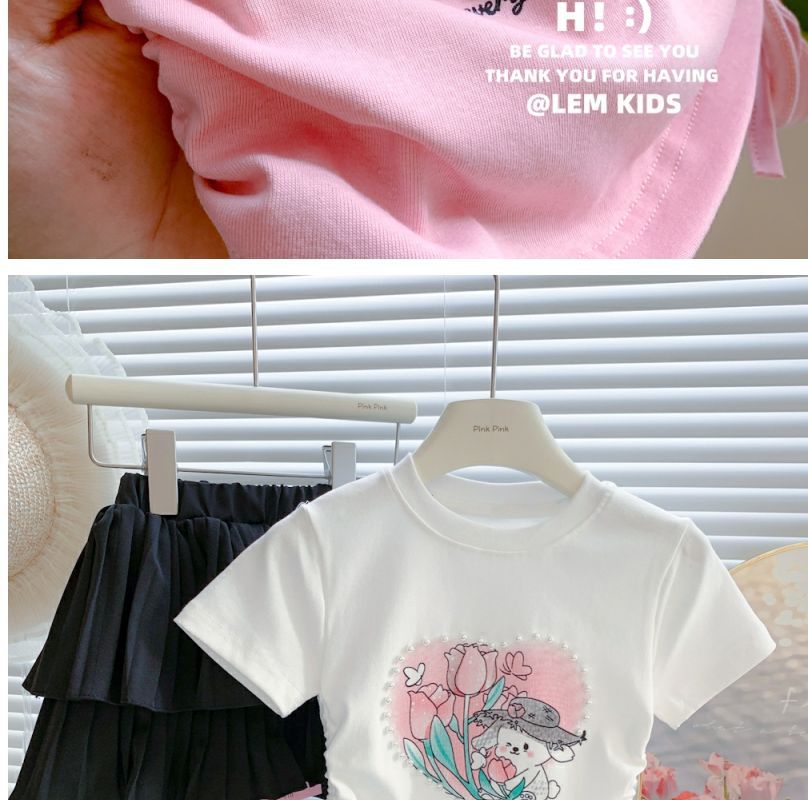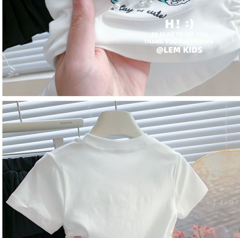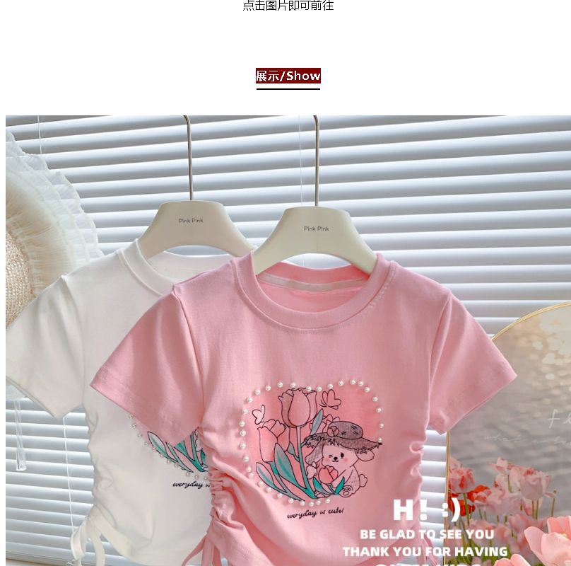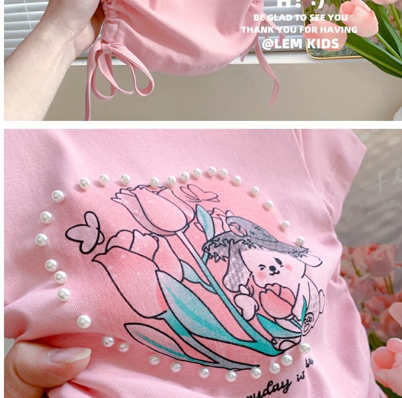 아기 소녀 drawstring 반팔 얼음 실크 탑 25 여름 새 여자 진주 사랑 달콤한 만화 반팔 티셔츠스토어 가기
