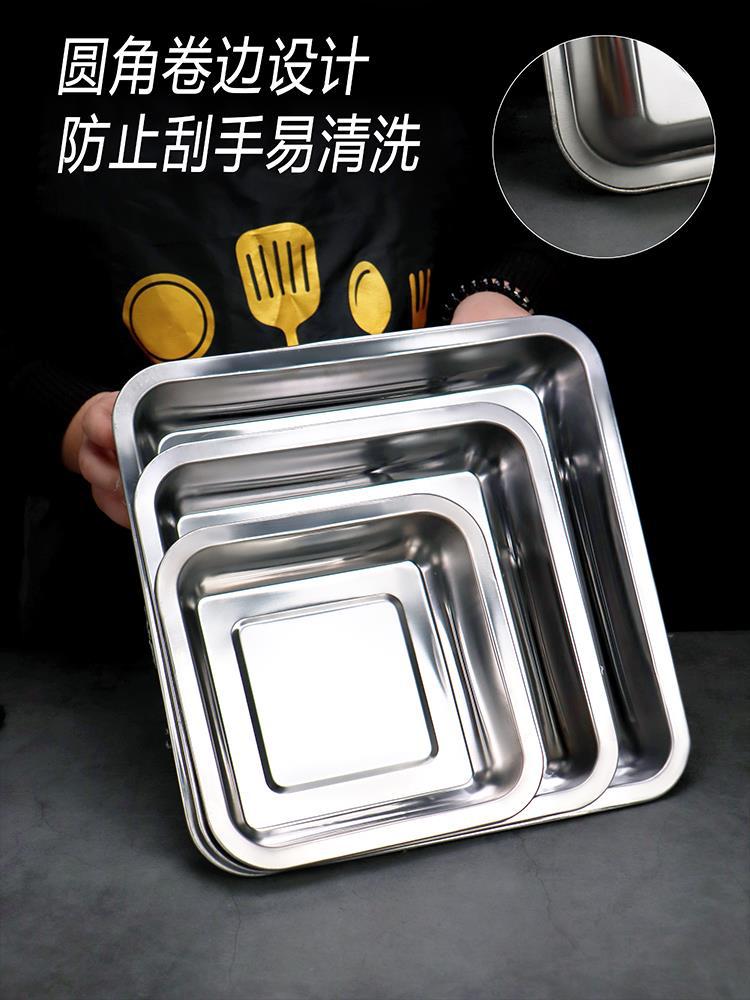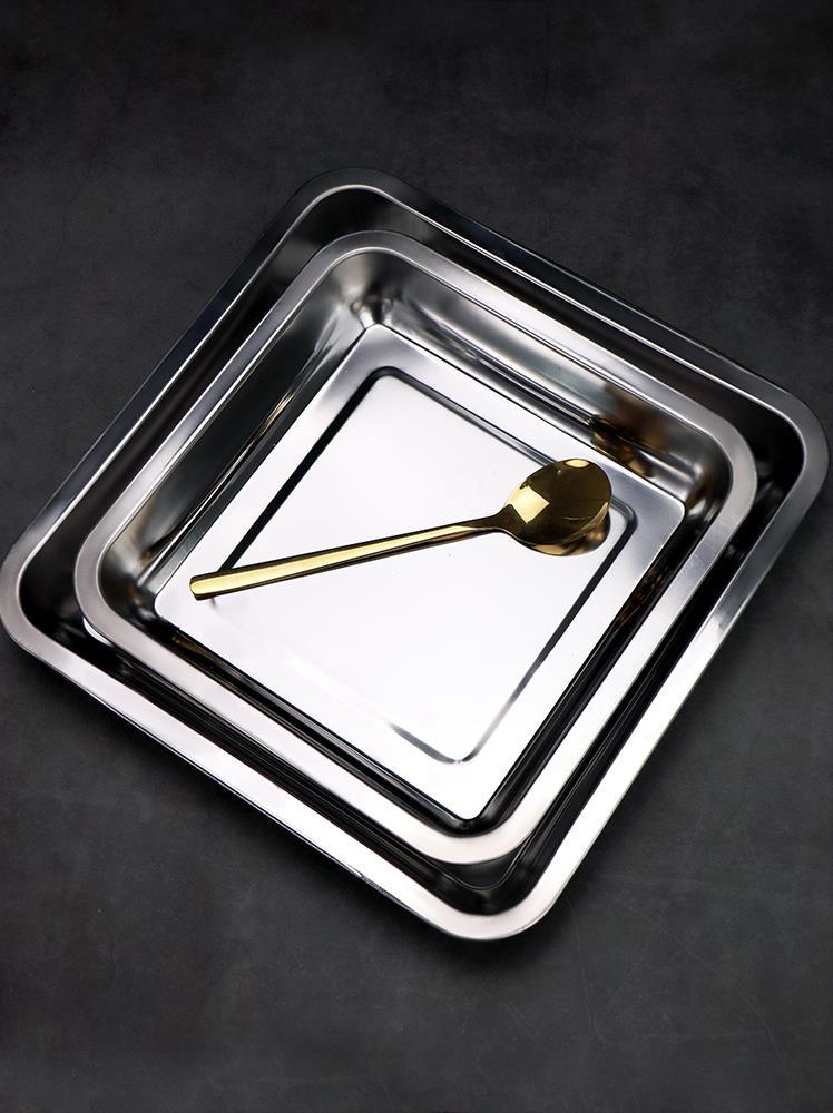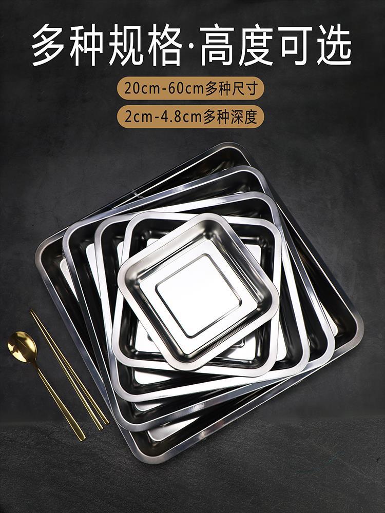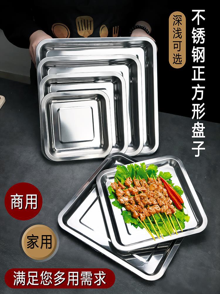 스테인레스 스틸 트레이 사각 접시 사각 접시 바베큐 접시 사각 접시 찐 밥 접시 음식 상업용 접시스토어 가기