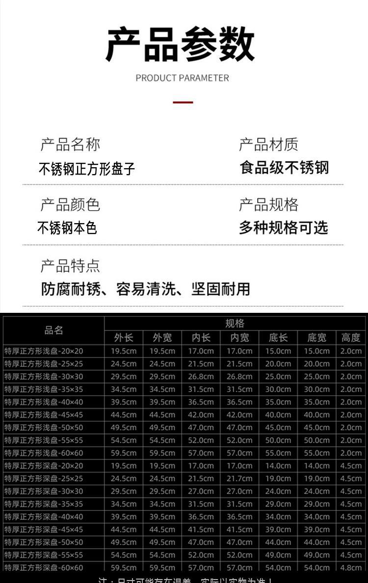 스테인레스 스틸 트레이 사각 접시 사각 접시 바베큐 접시 사각 접시 찐 밥 접시 음식 상업용 접시