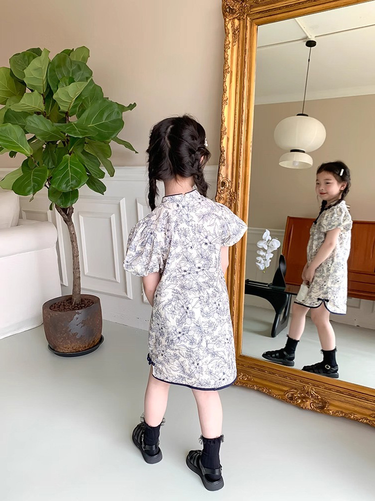 여자 원피스 여름 새로운 국가 스타일 잉크 페인팅 복고풍 플레이트 버클 치파오 스커트 어린이 머리카락의 세대스토어 가기
