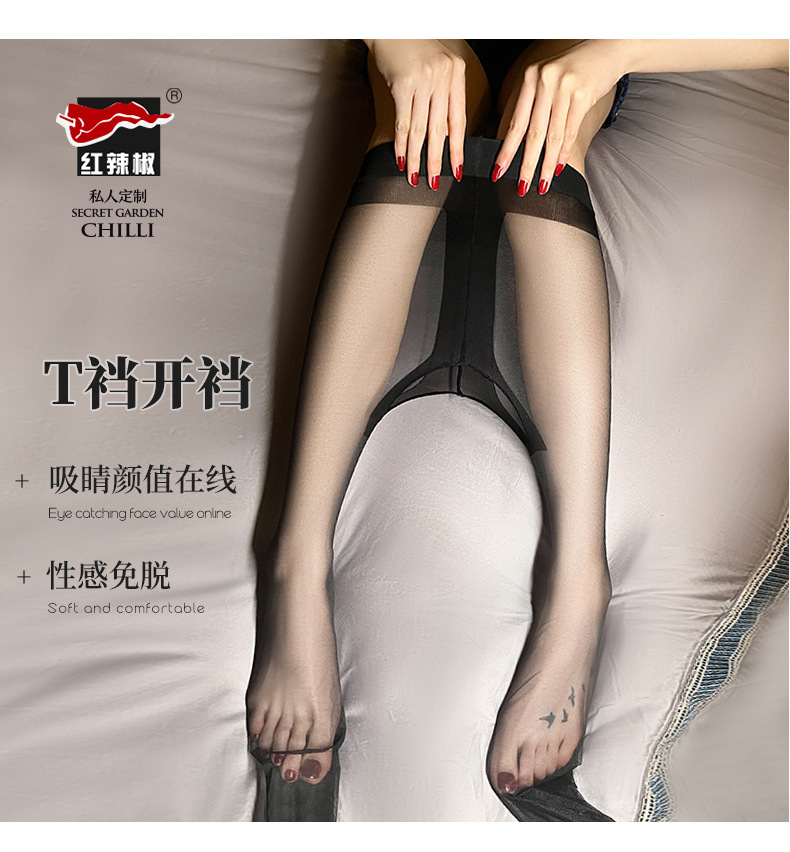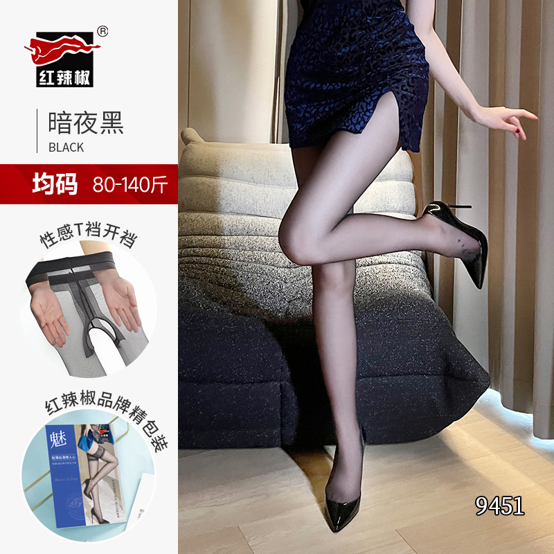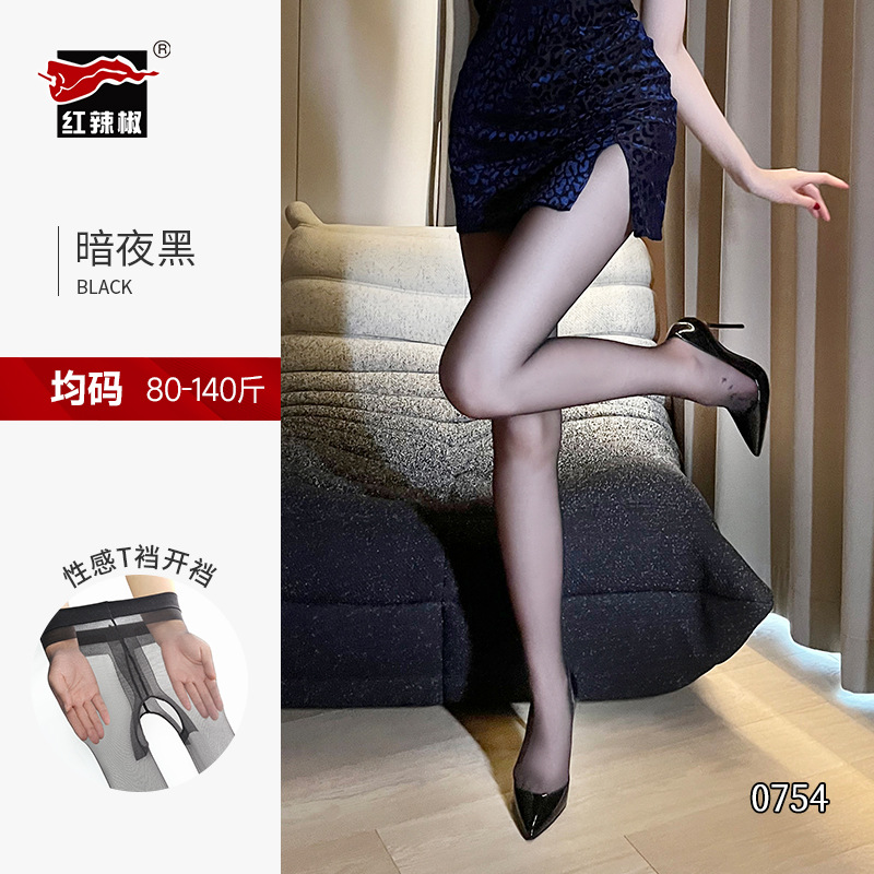 여성용 레드 페퍼 섹시 스타킹, 블랙 스타킹, 섹시한 유혹, 벗을 필요 없음, 오픈 가랑이 스타킹, 바깥쪽에 삽입 가능, 무거운 맛의 스타킹