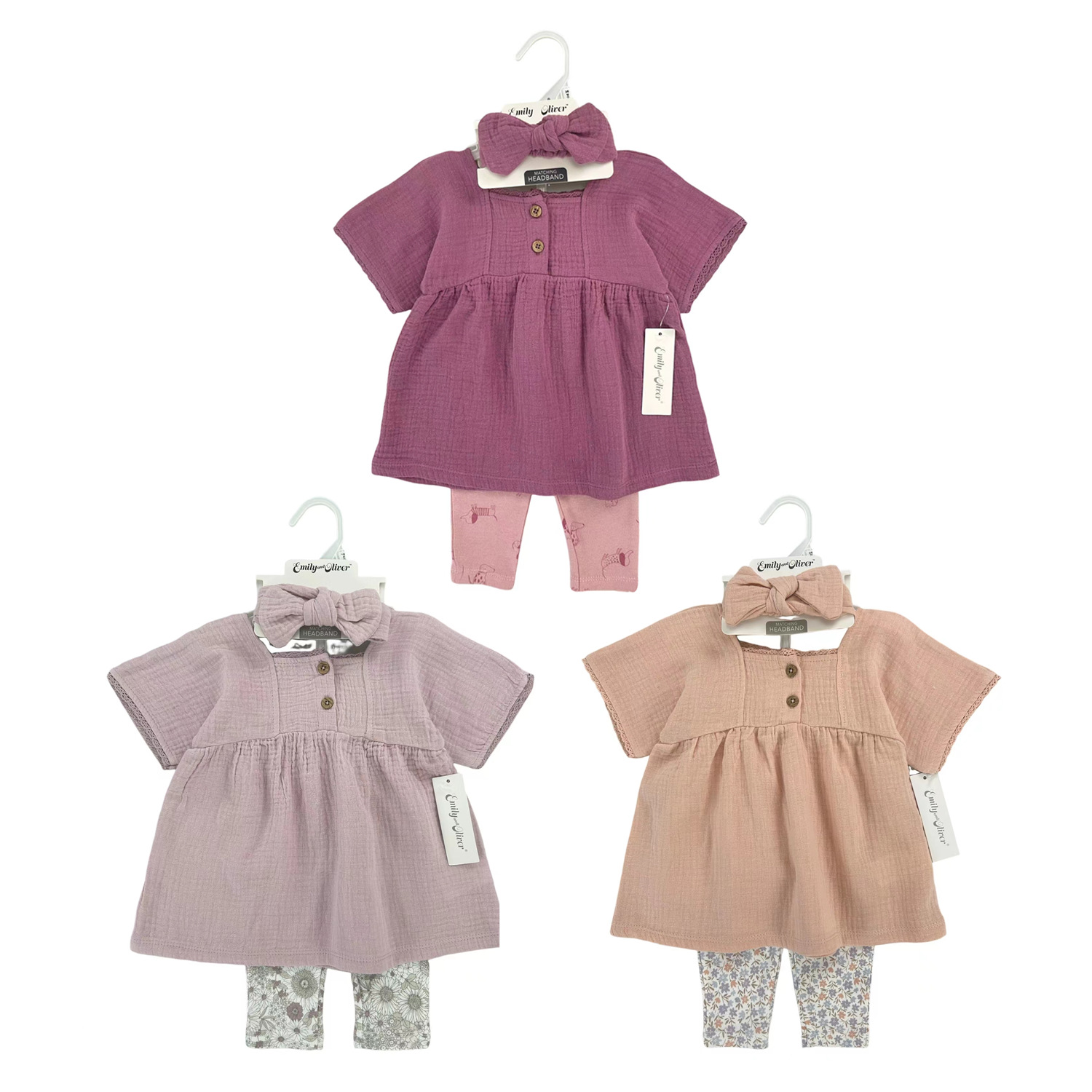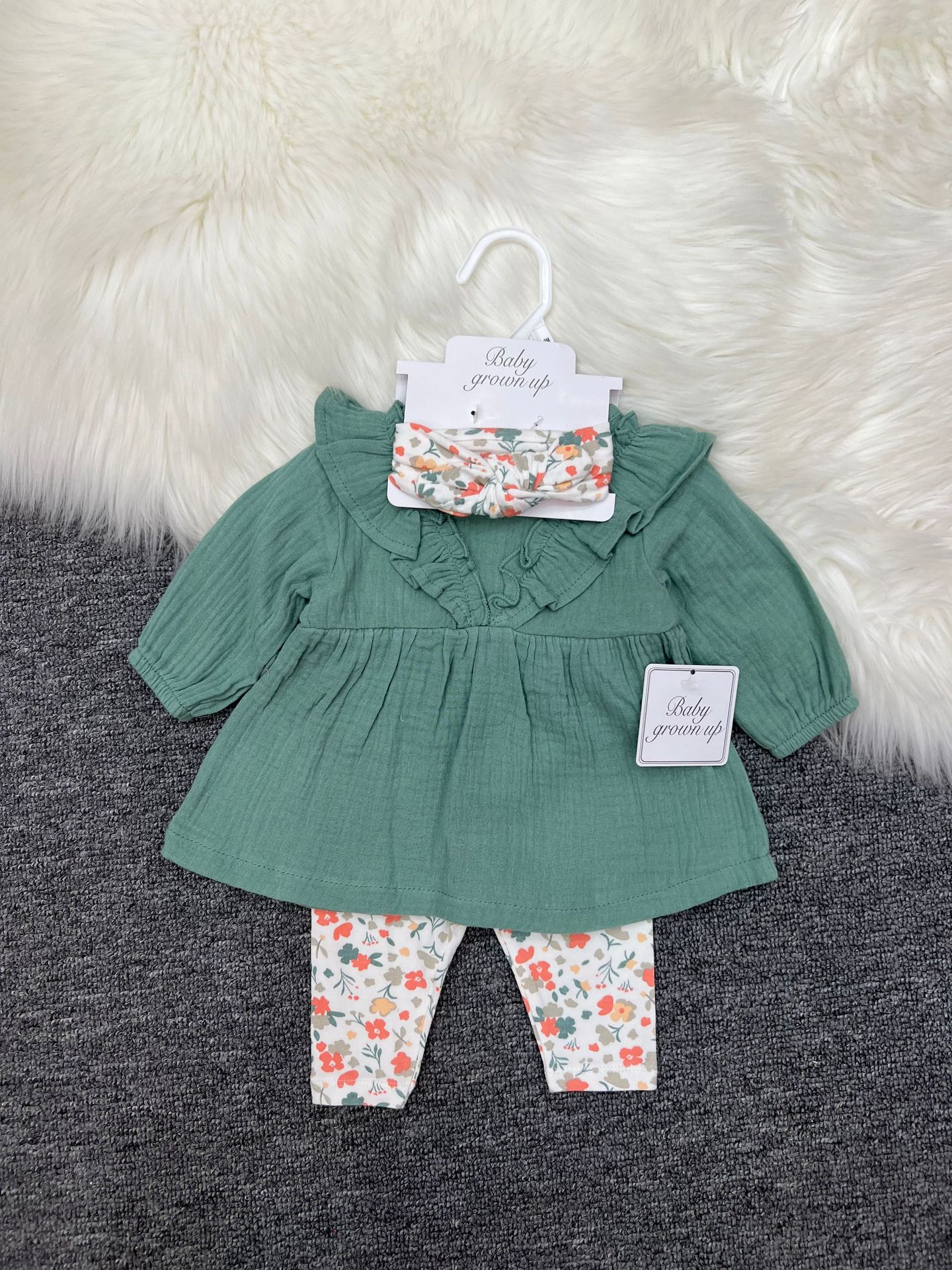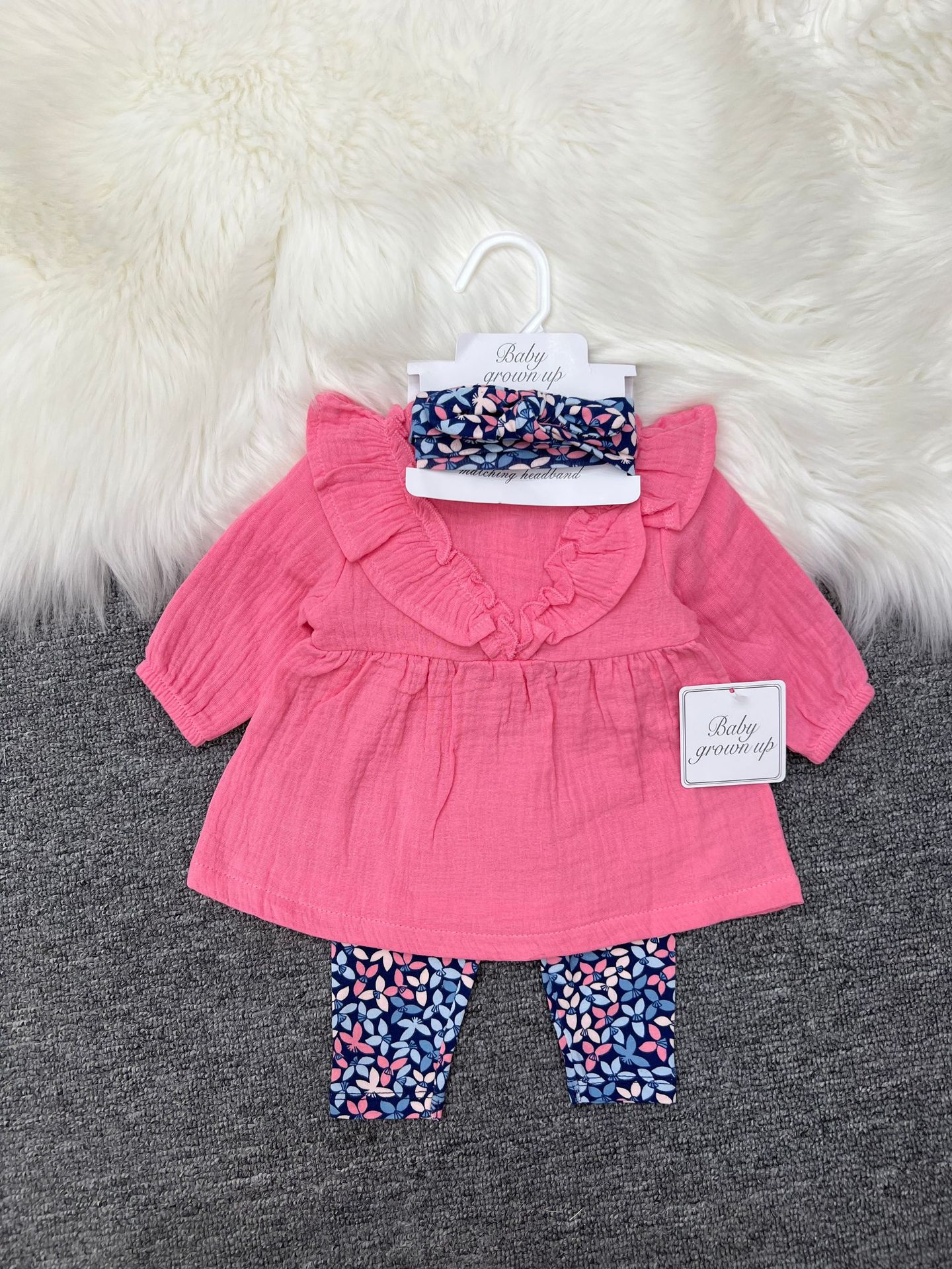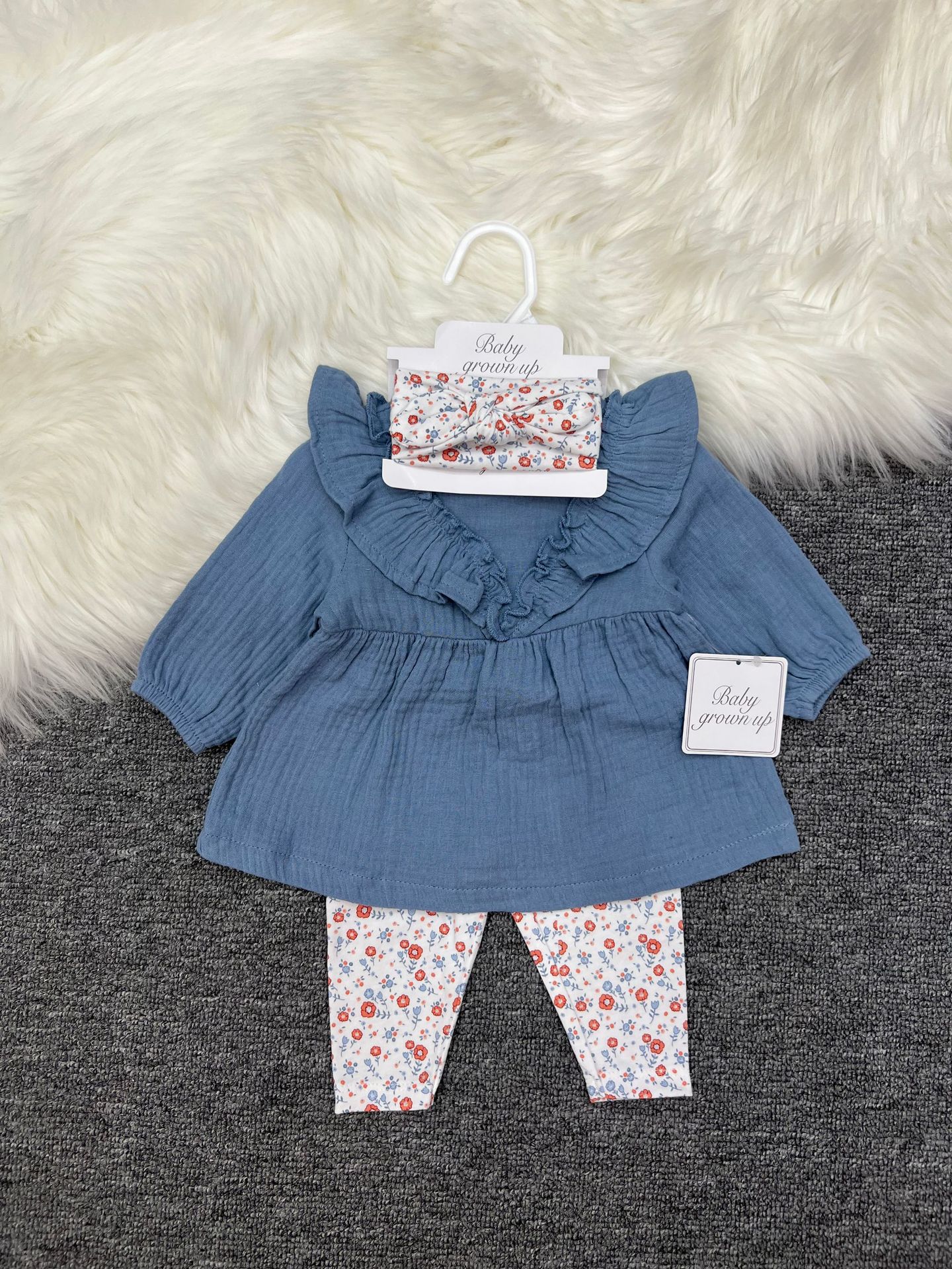 유럽풍 여아 꽃무늬 원피스 상의, 긴 바지, 헤어밴드 3종 세트, 라운드넥 긴팔 옷, 인형 스타일 풀오버