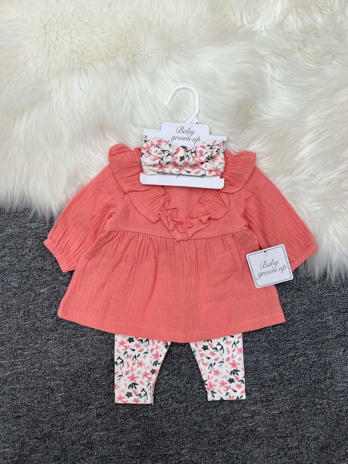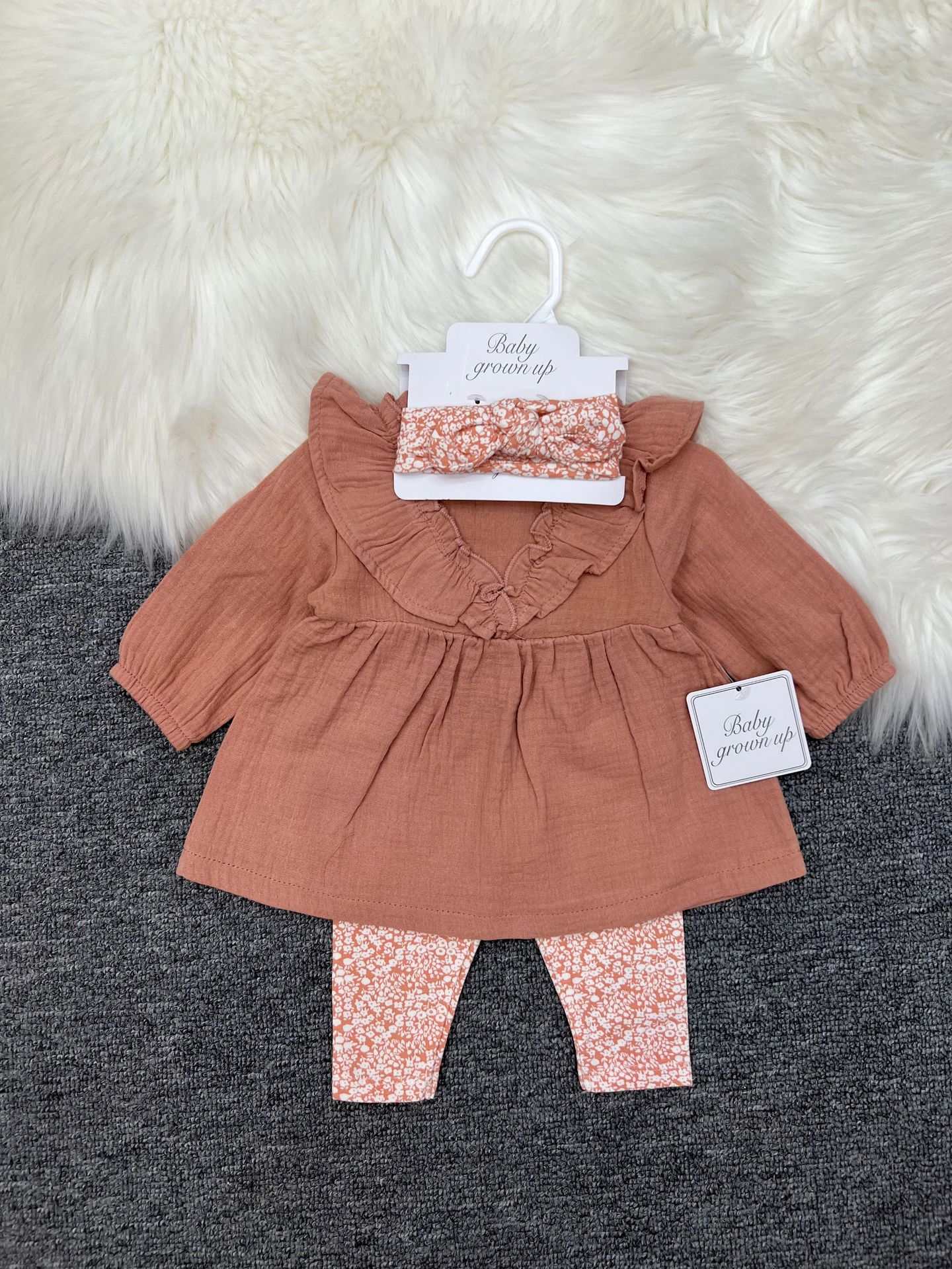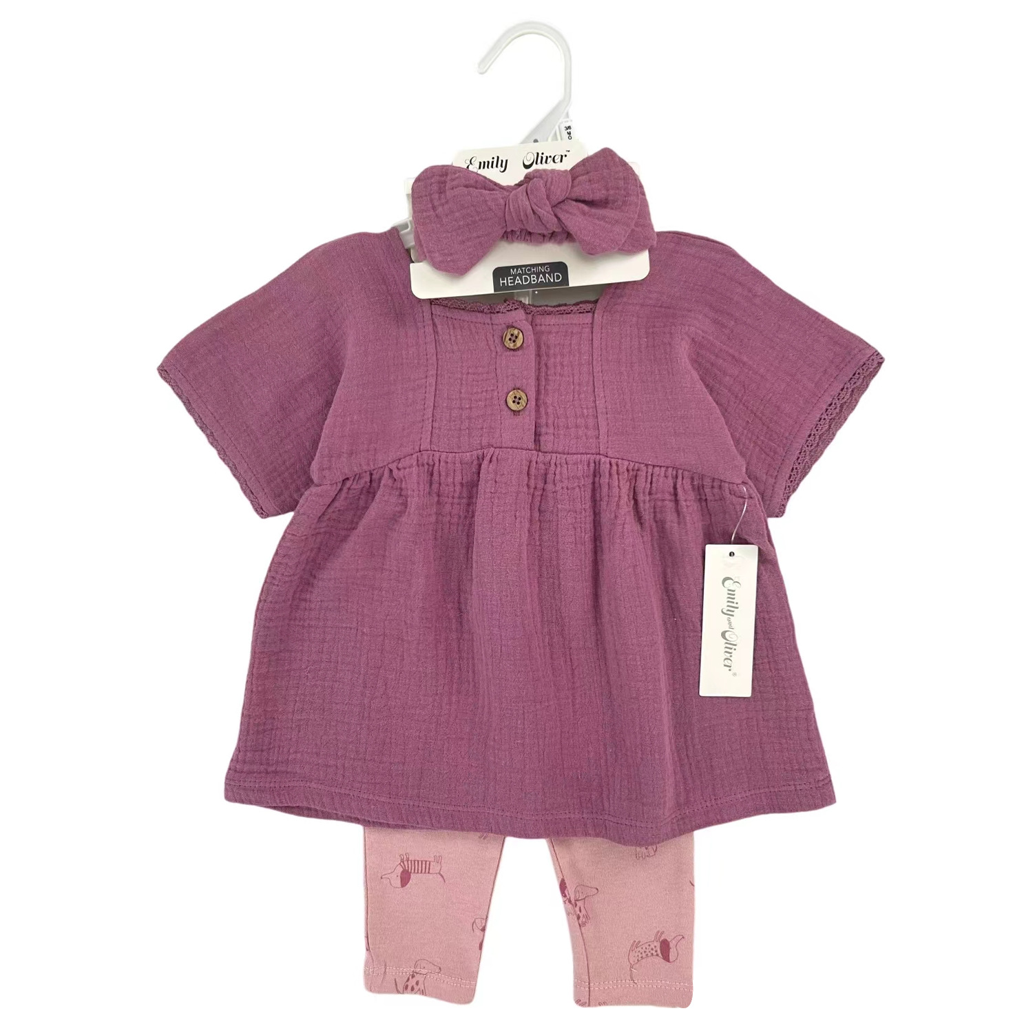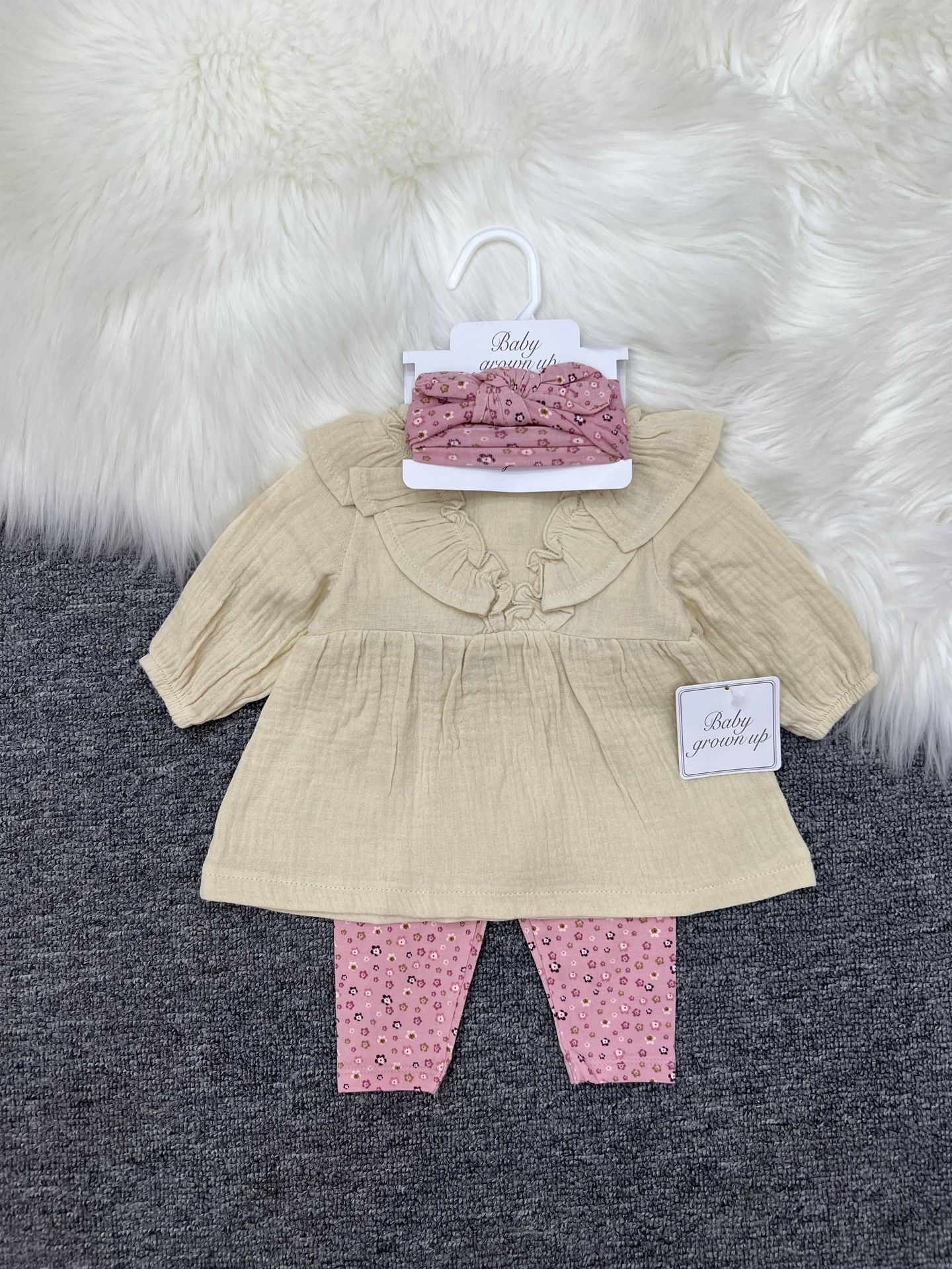 유럽풍 여아 꽃무늬 원피스 상의, 긴 바지, 헤어밴드 3종 세트, 라운드넥 긴팔 옷, 인형 스타일 풀오버