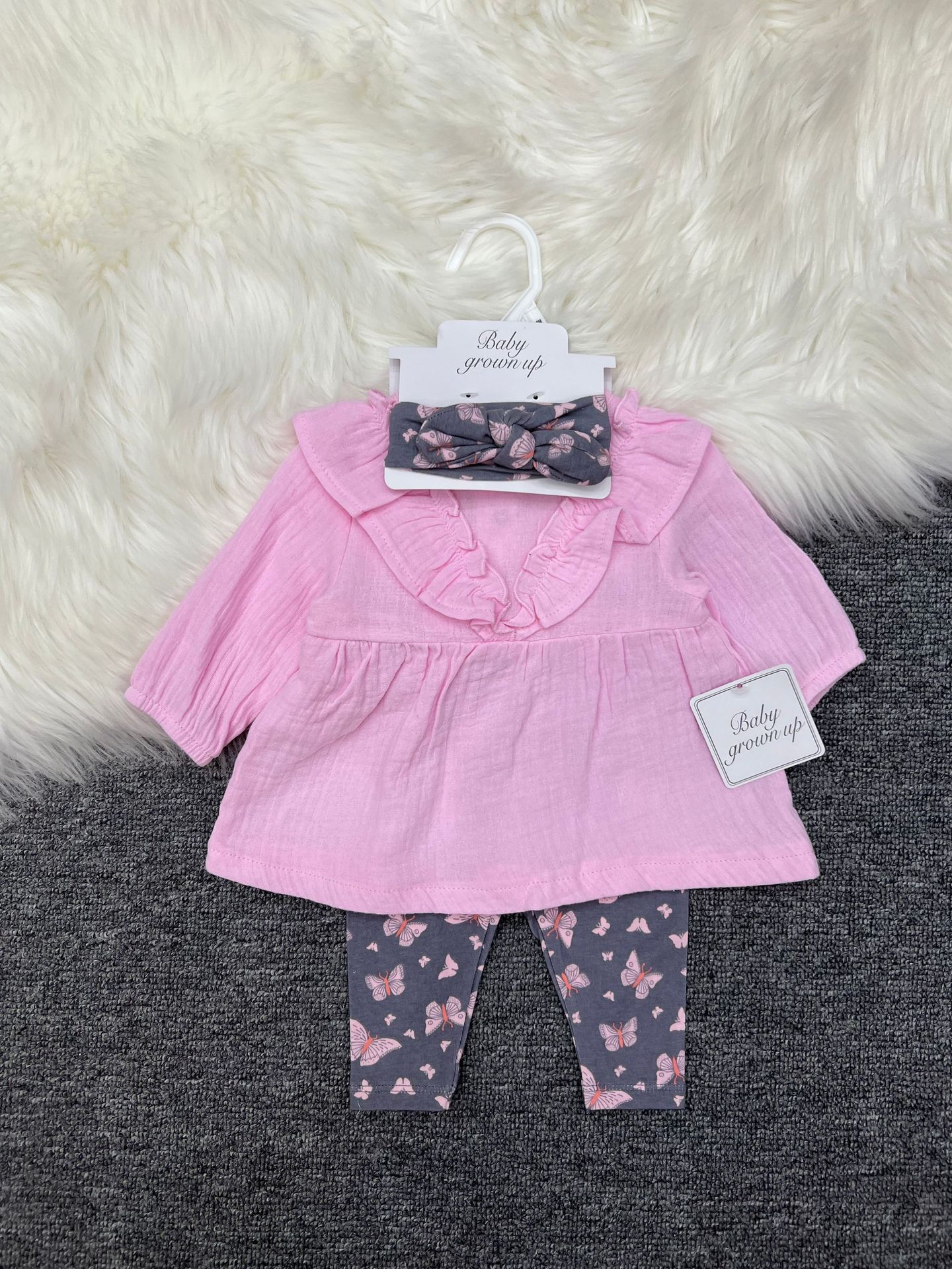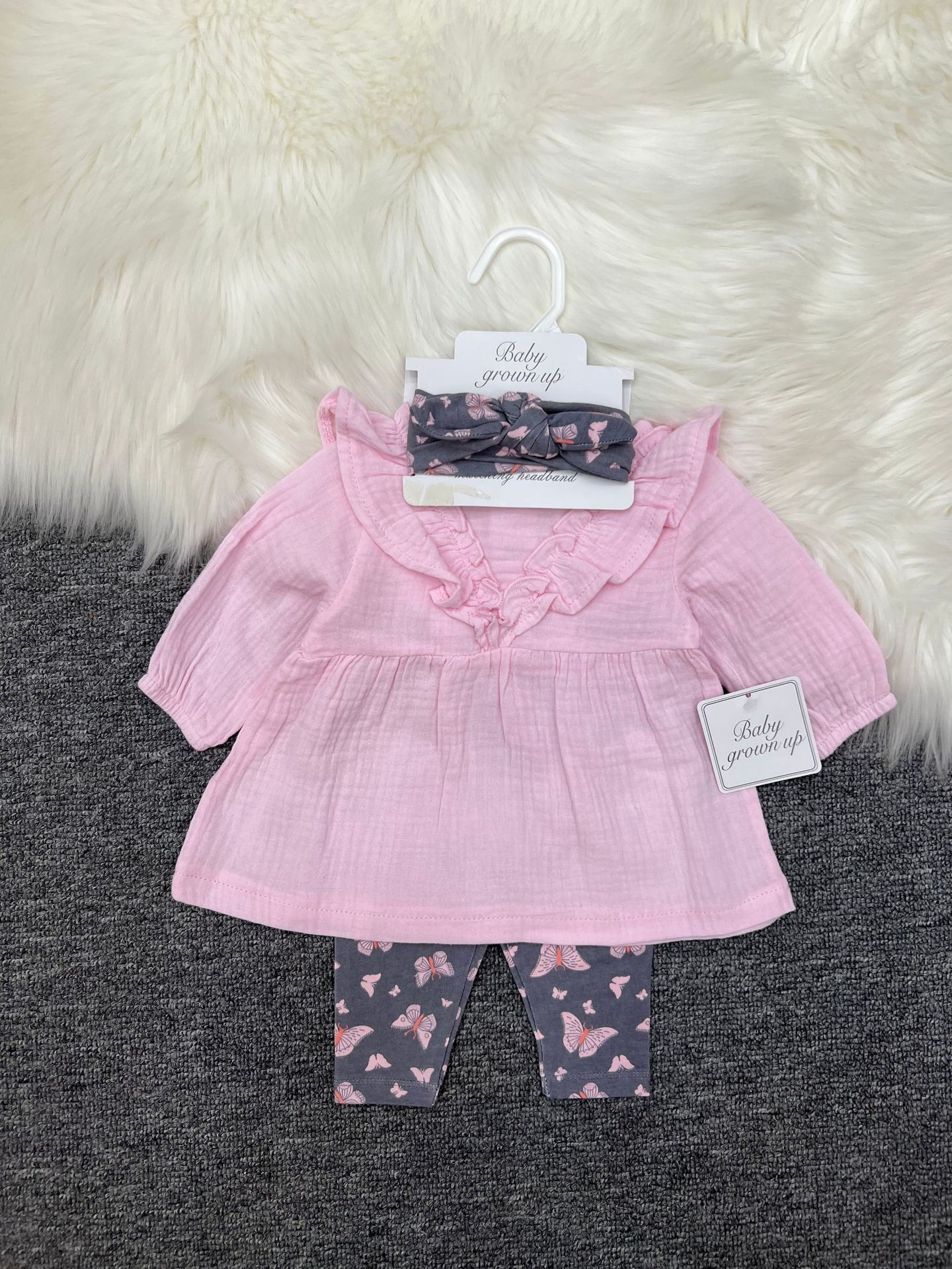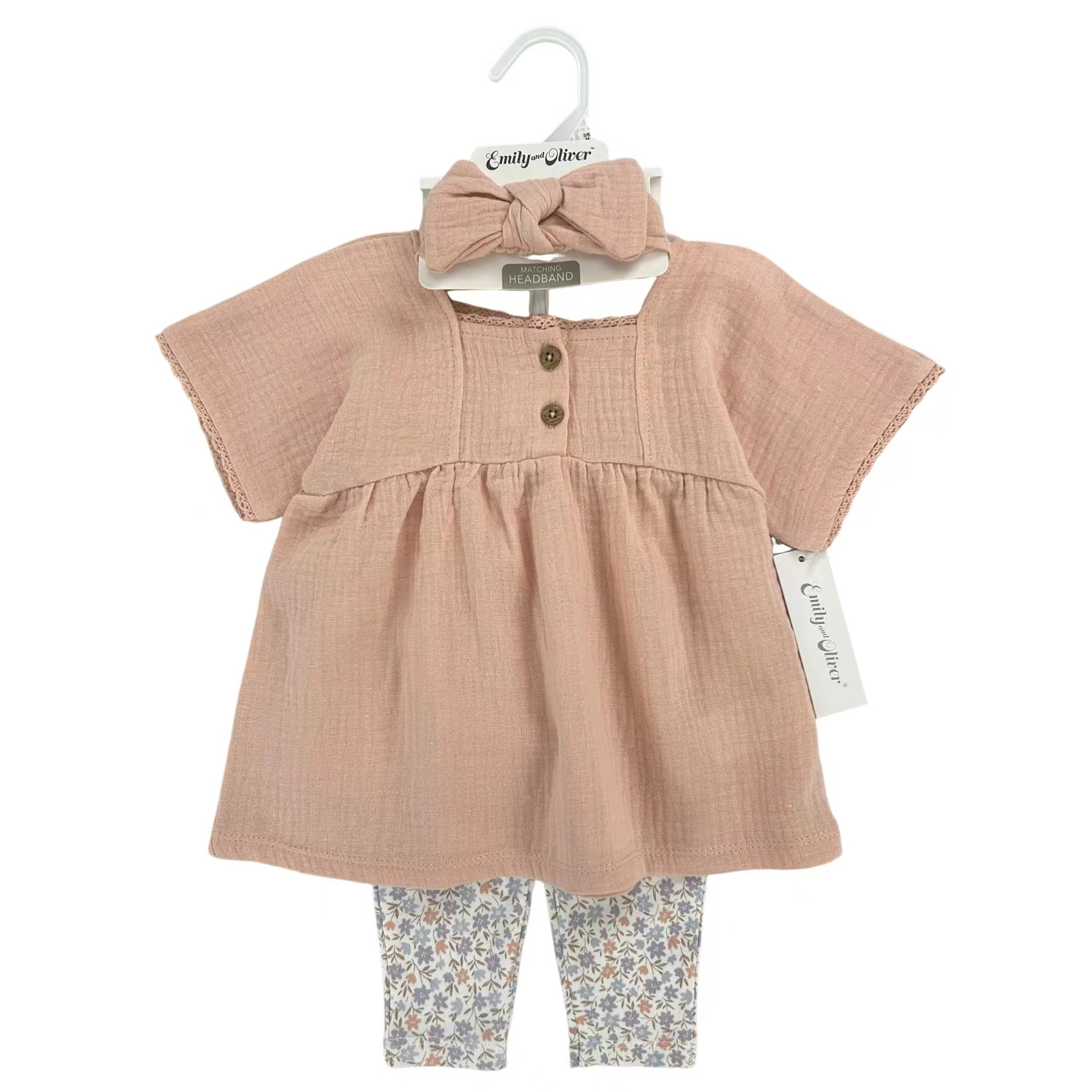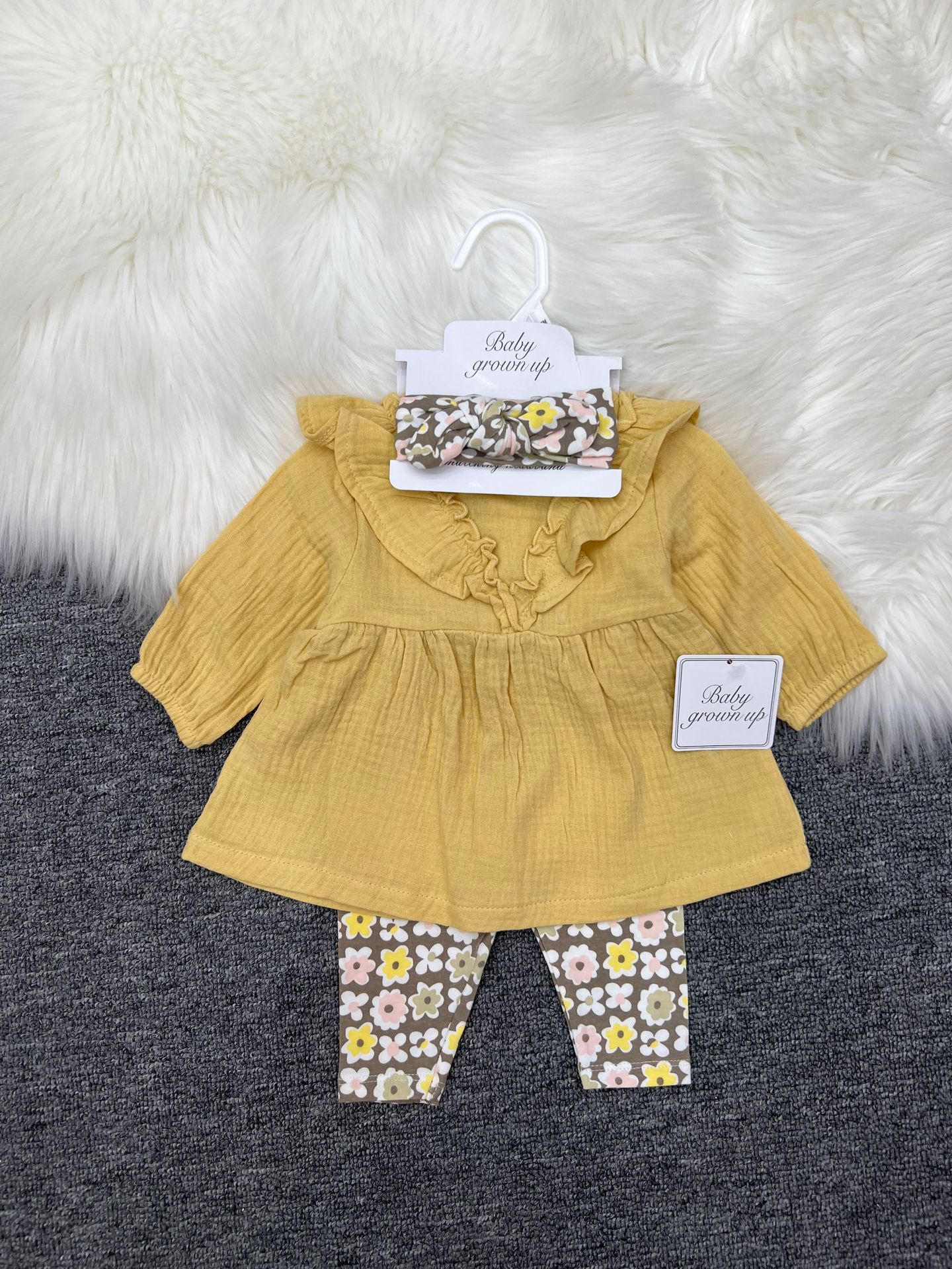 유럽풍 여아 꽃무늬 원피스 상의, 긴 바지, 헤어밴드 3종 세트, 라운드넥 긴팔 옷, 인형 스타일 풀오버