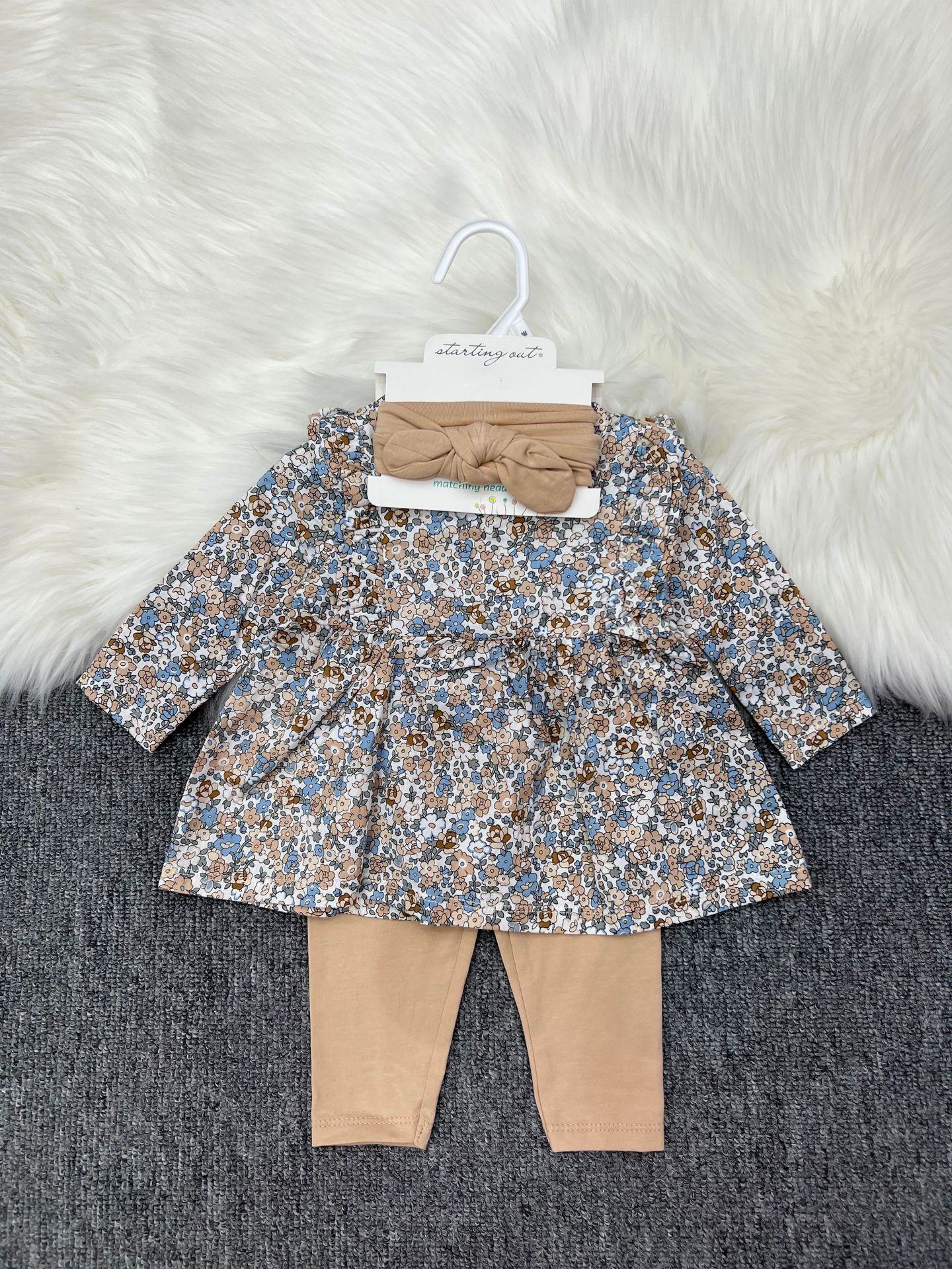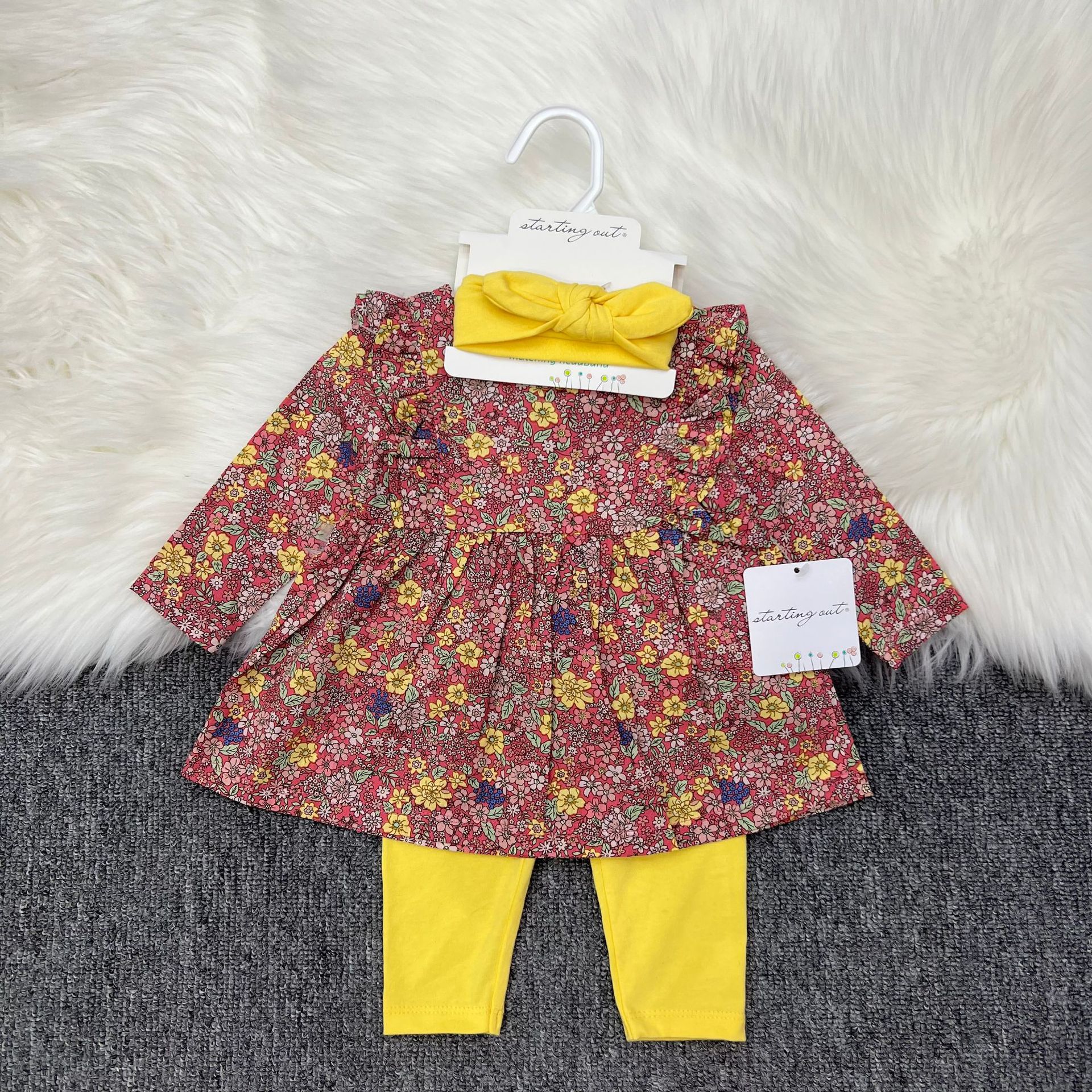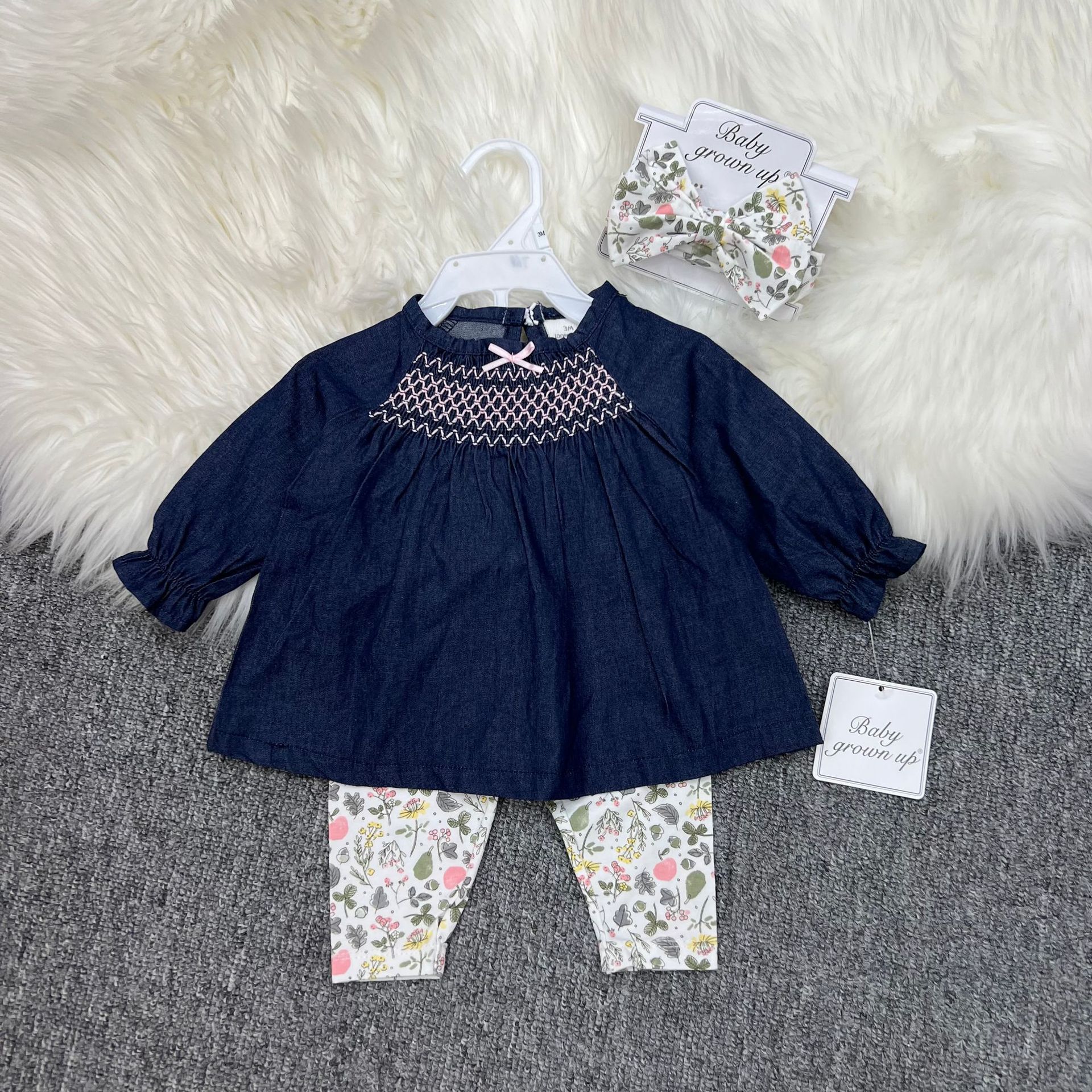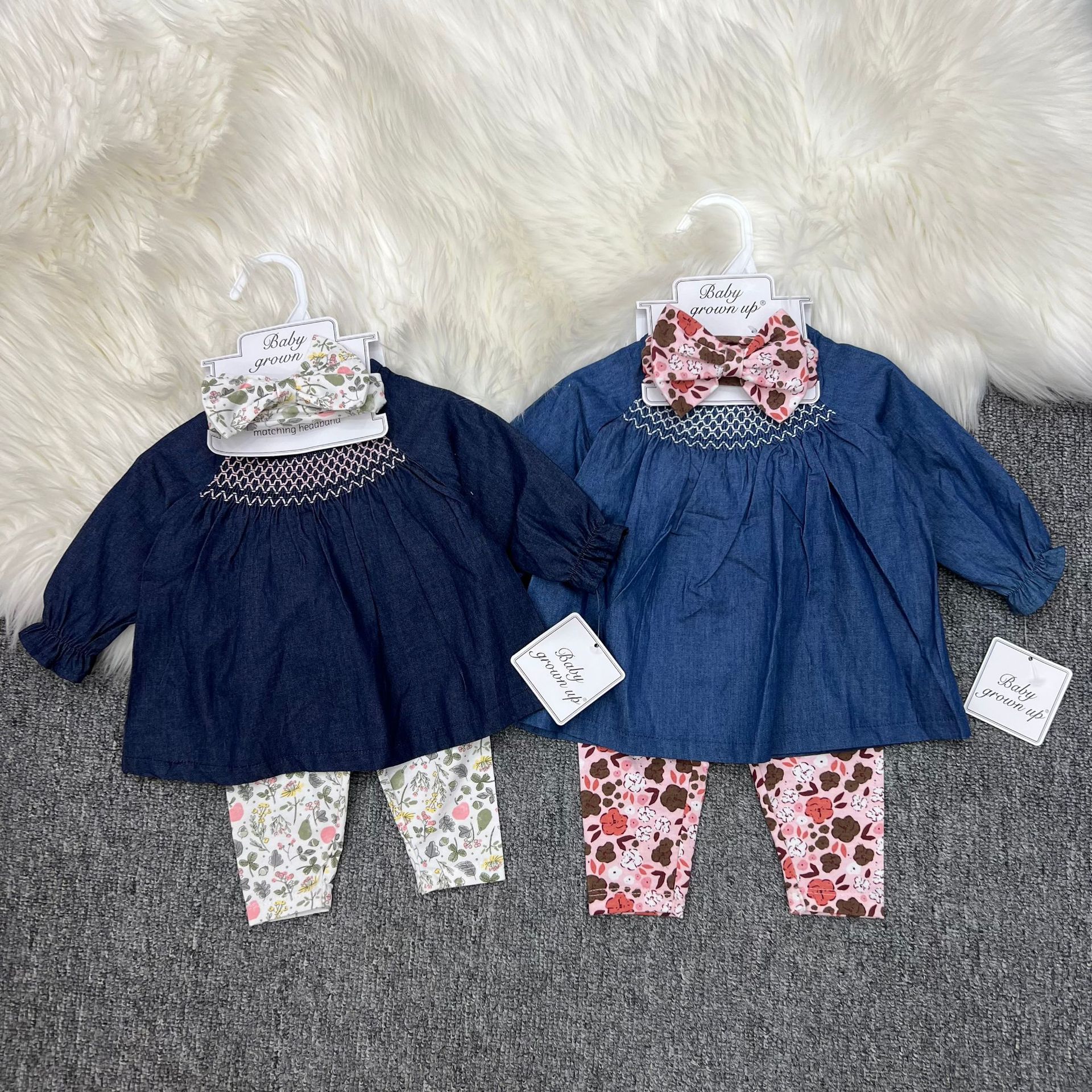 유럽풍 여아 꽃무늬 원피스 상의, 긴 바지, 헤어밴드 3종 세트, 라운드넥 긴팔 옷, 인형 스타일 풀오버스토어 가기
