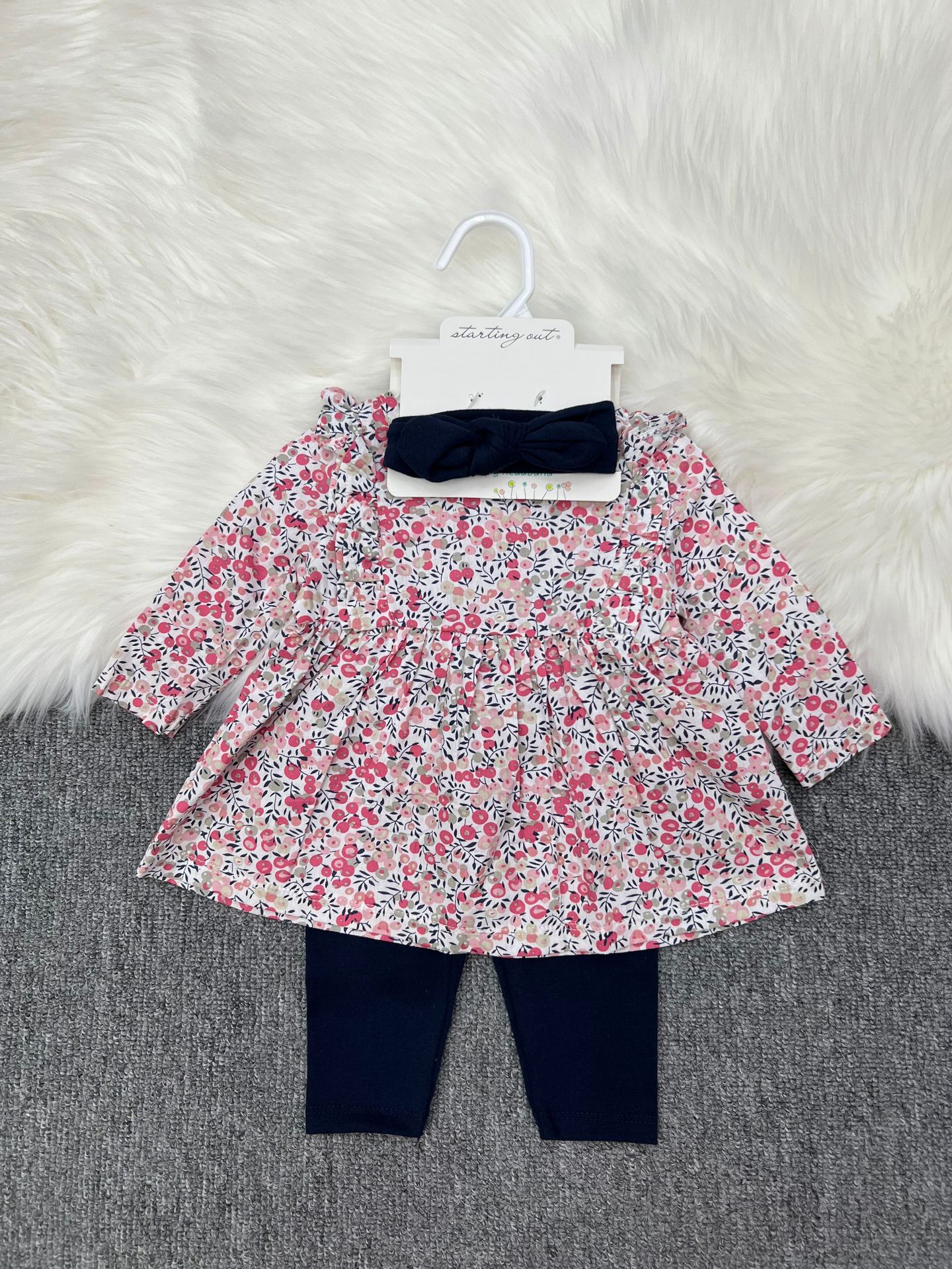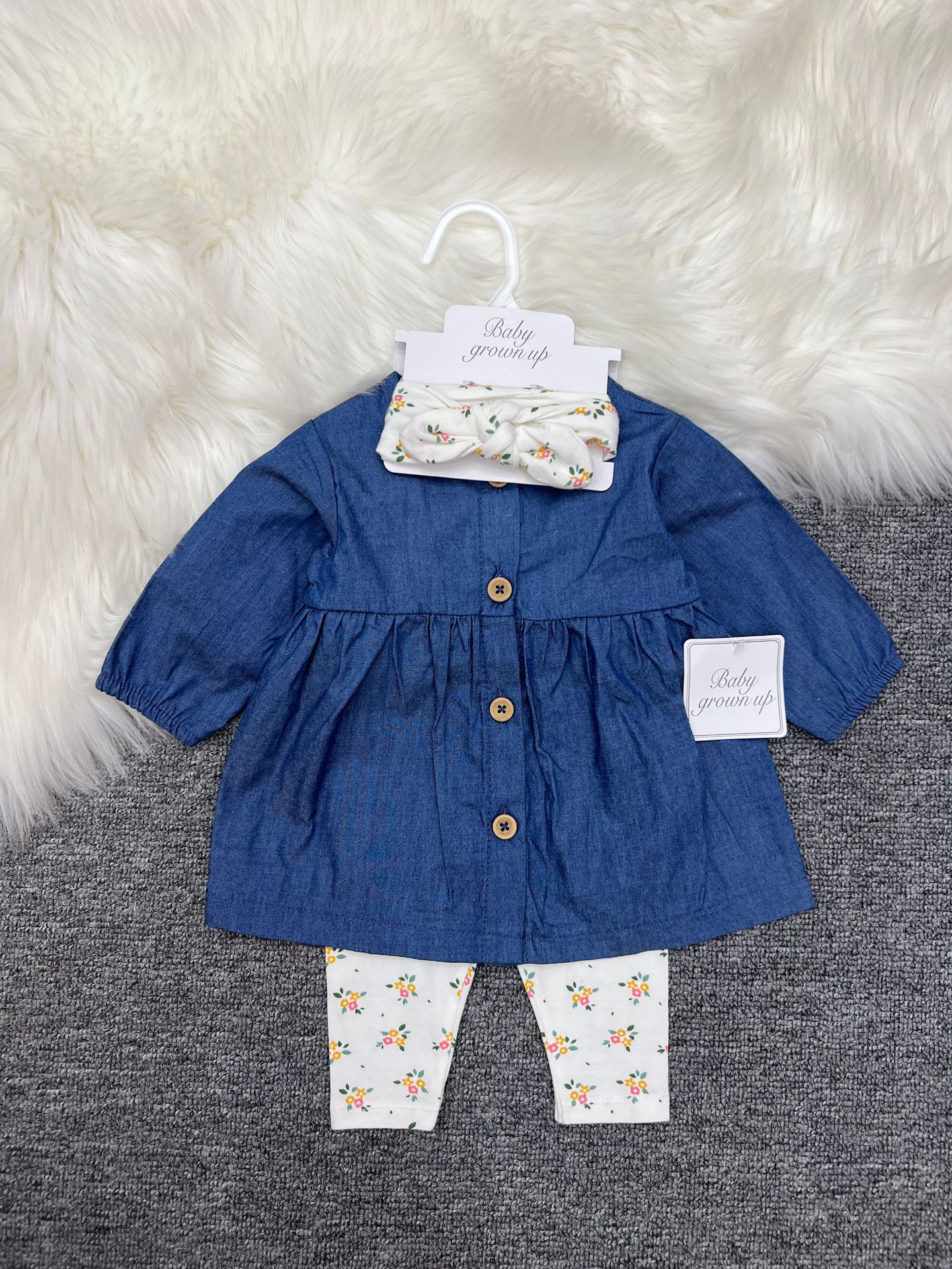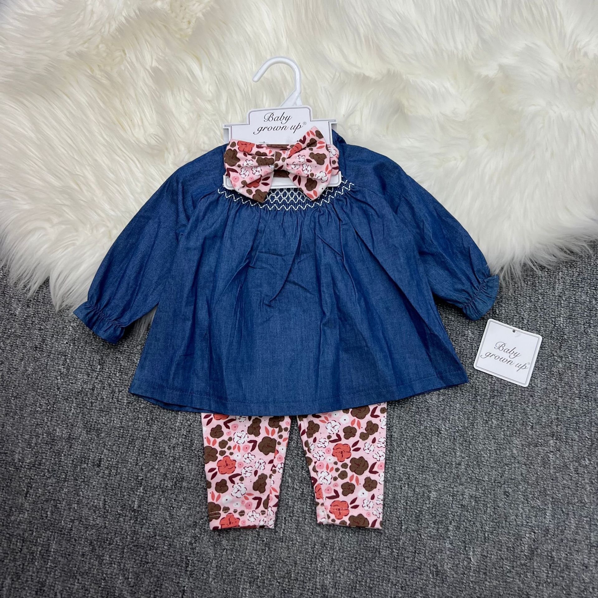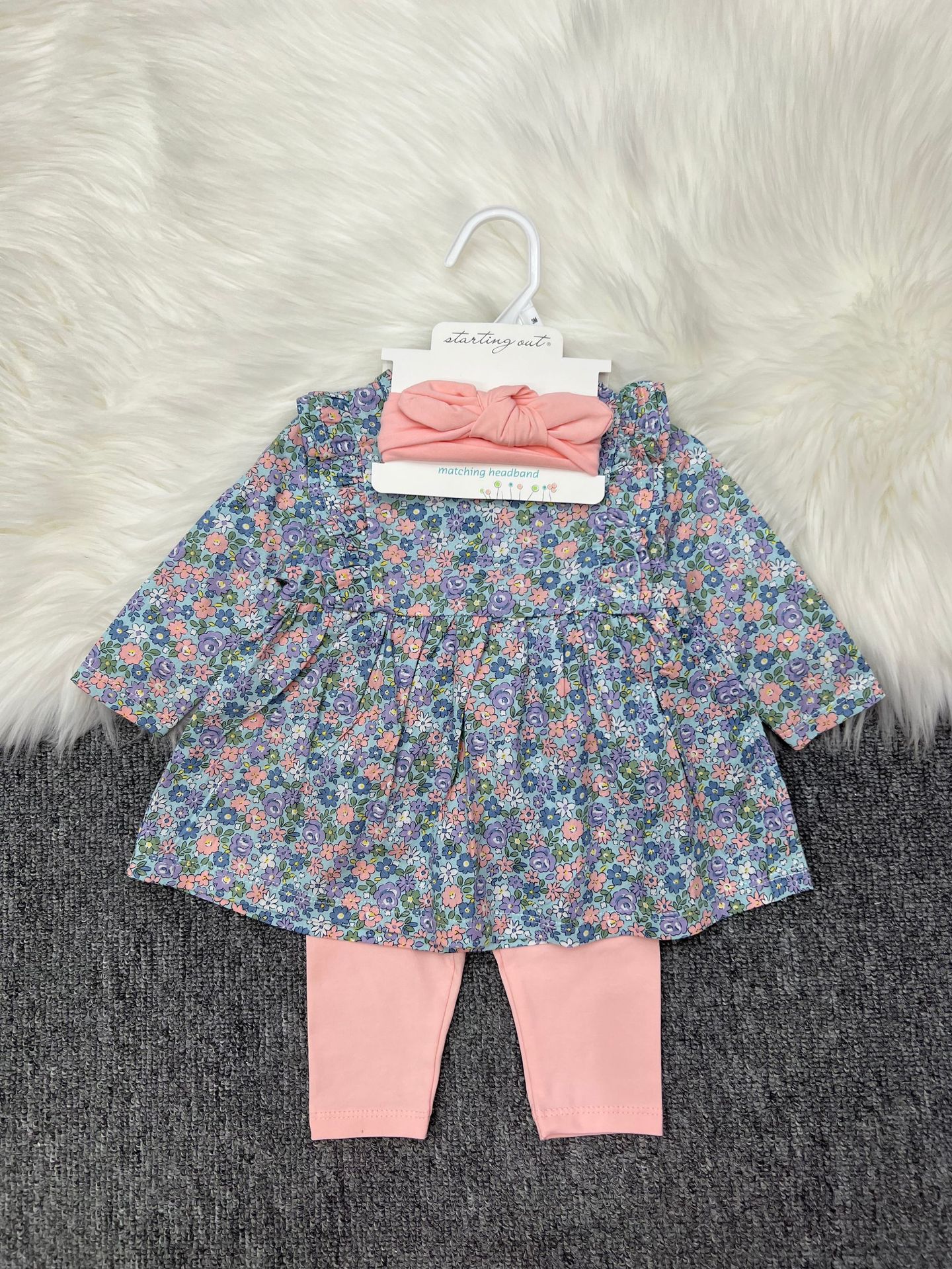 유럽풍 여아 꽃무늬 원피스 상의, 긴 바지, 헤어밴드 3종 세트, 라운드넥 긴팔 옷, 인형 스타일 풀오버스토어 가기