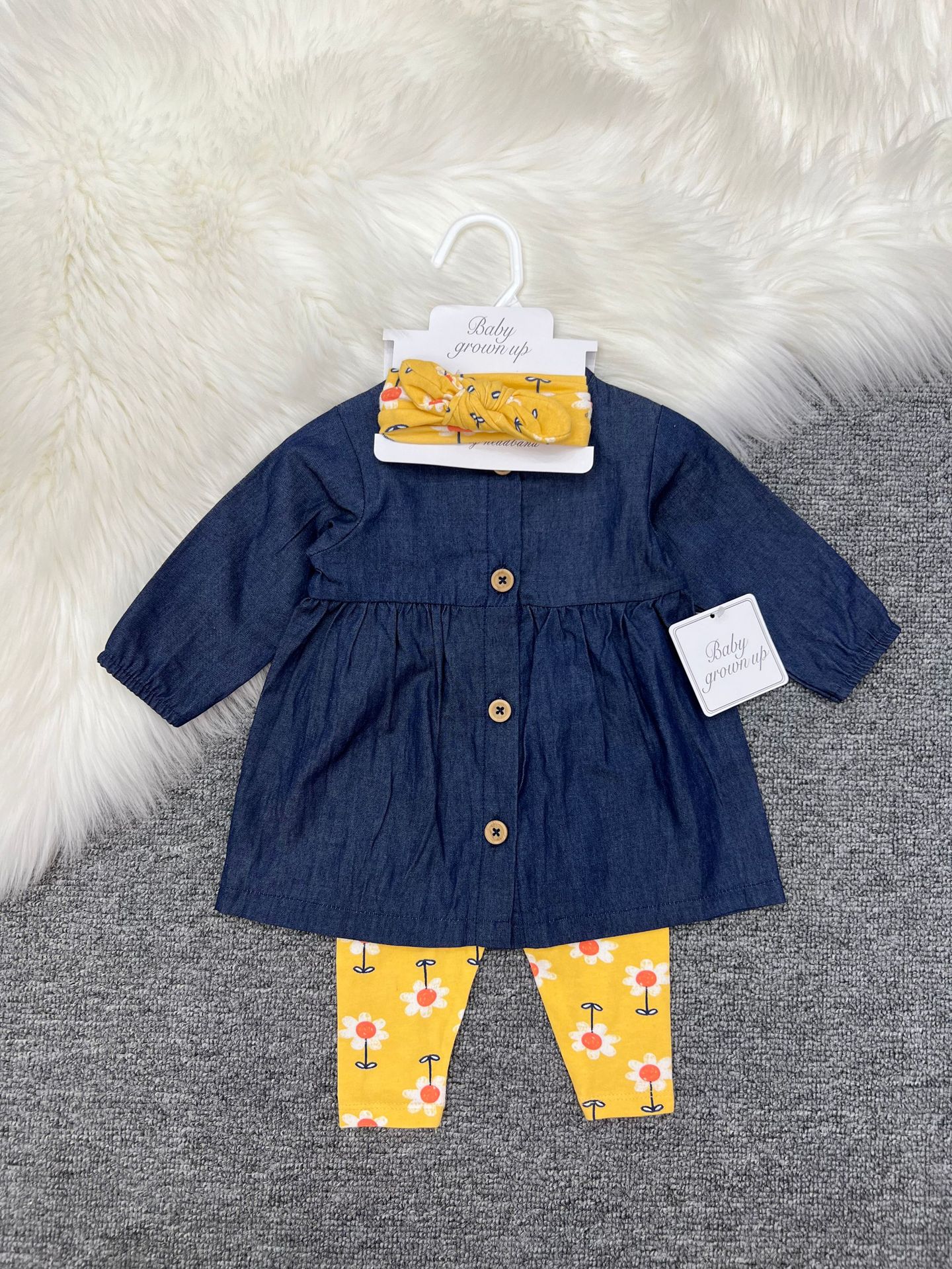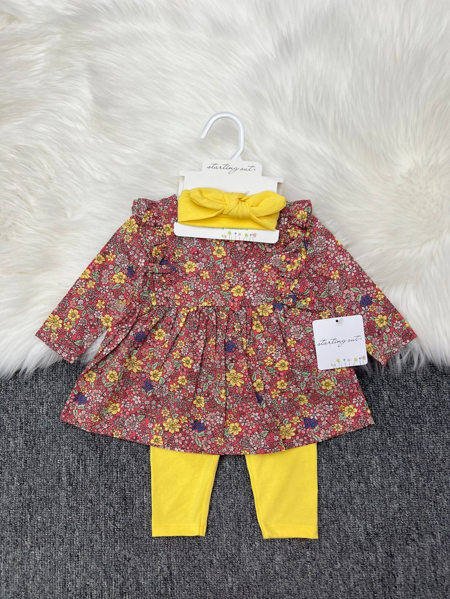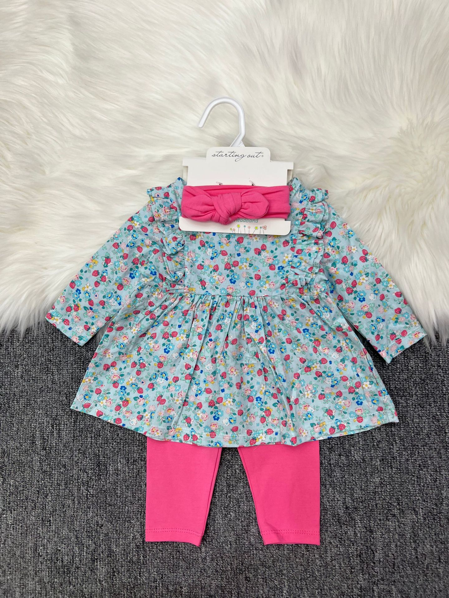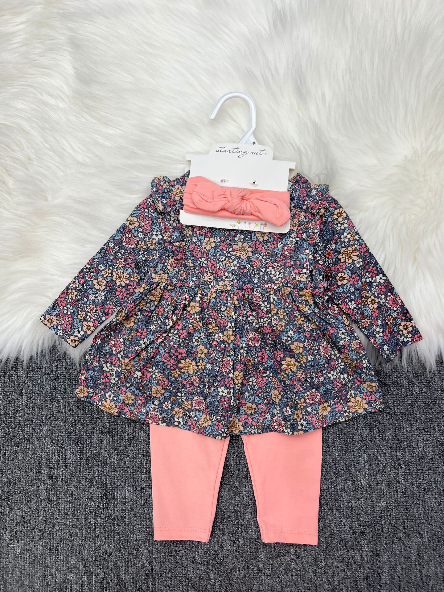 유럽풍 여아 꽃무늬 원피스 상의, 긴 바지, 헤어밴드 3종 세트, 라운드넥 긴팔 옷, 인형 스타일 풀오버스토어 가기